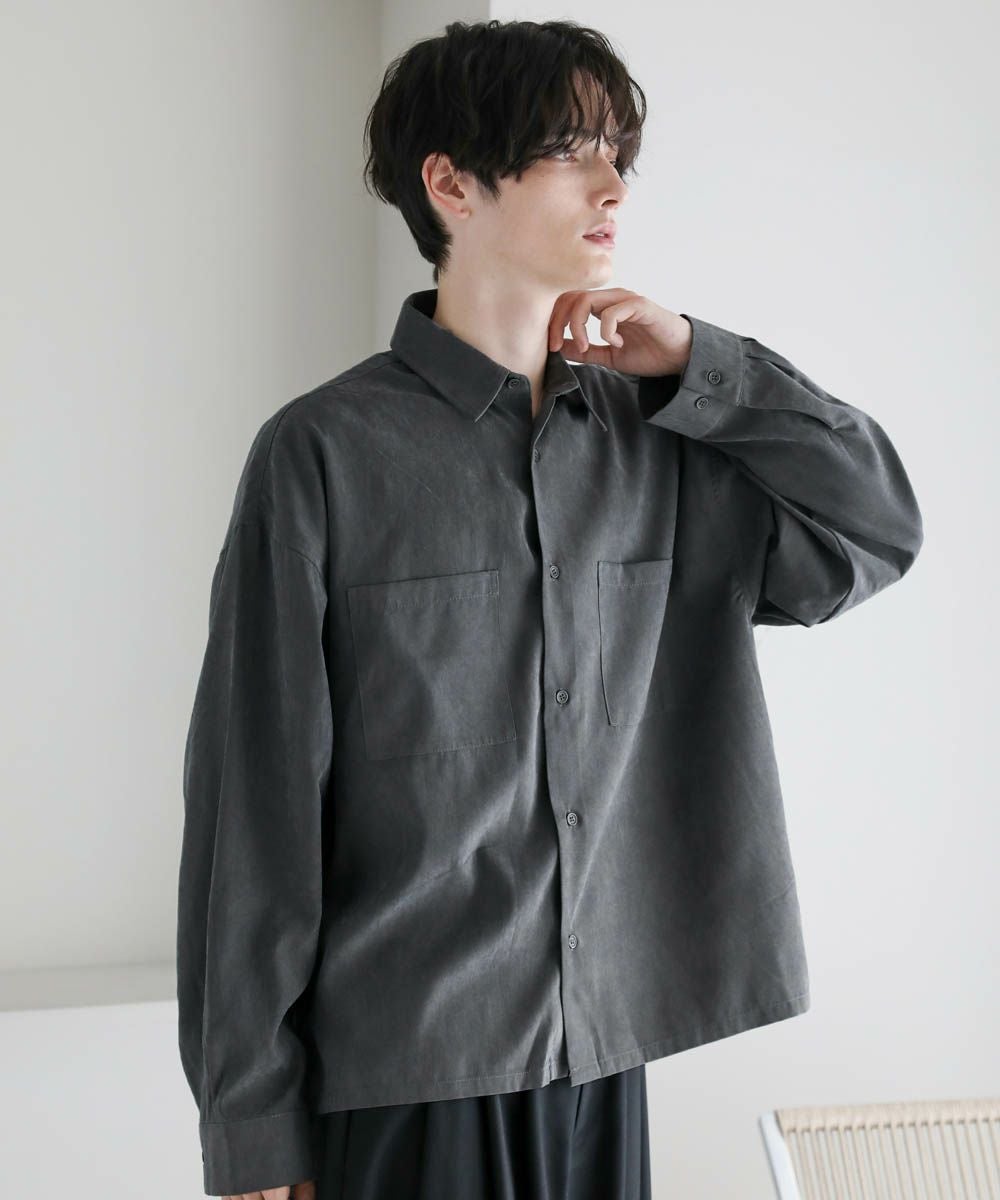 上品な印象を与えるフェイクスエードシャツ。ゆとりのあるサイズ感で1枚着はもちろん、羽織りとしても活躍し、幅広い着こなしを楽しめます。軽くて滑らかな肌触りが特徴で、ストレスフリーな着心地が魅力。大きめの胸ポケットがワンポイントのアクセントに。着丈は、スタイルアップが叶うショート丈デザインを採用しました。1枚で着ても羽織りにしても、バランスの良いシルエットになるように設計。コーディネートに季節感と上品さをプラスしてくれるおすすめのアイテムです。