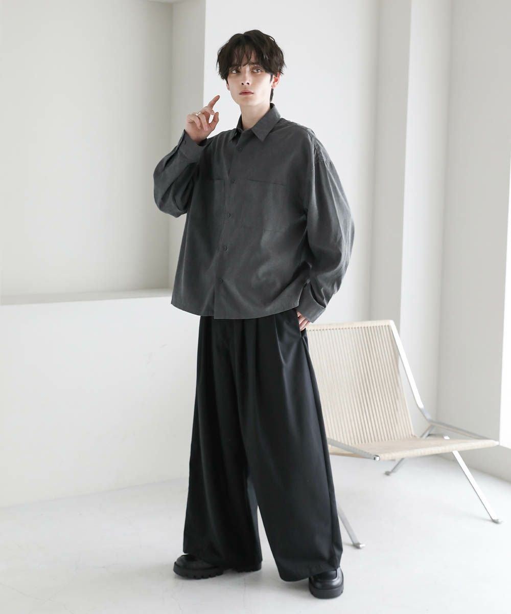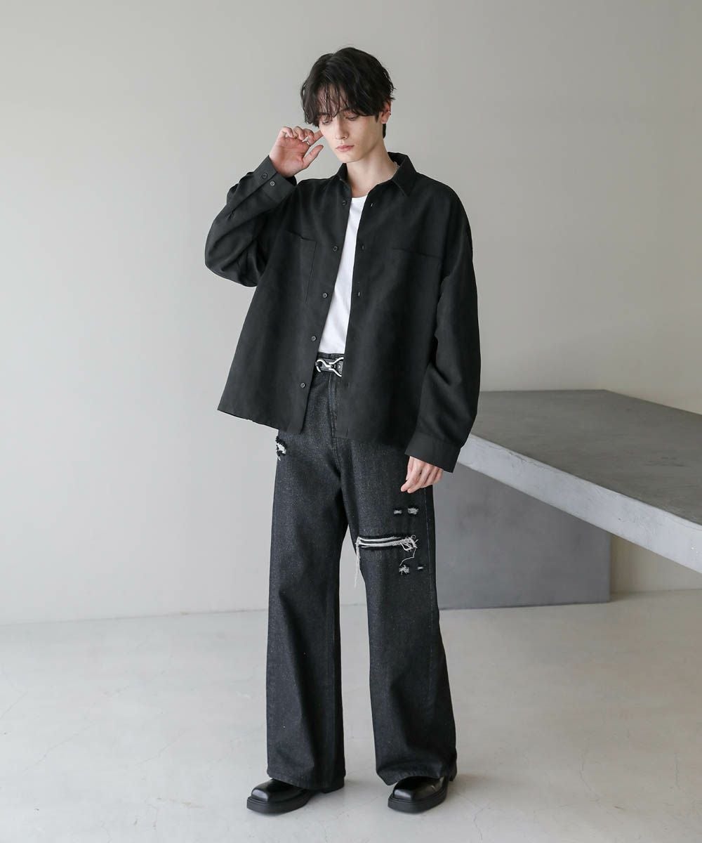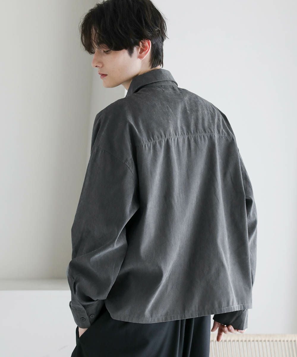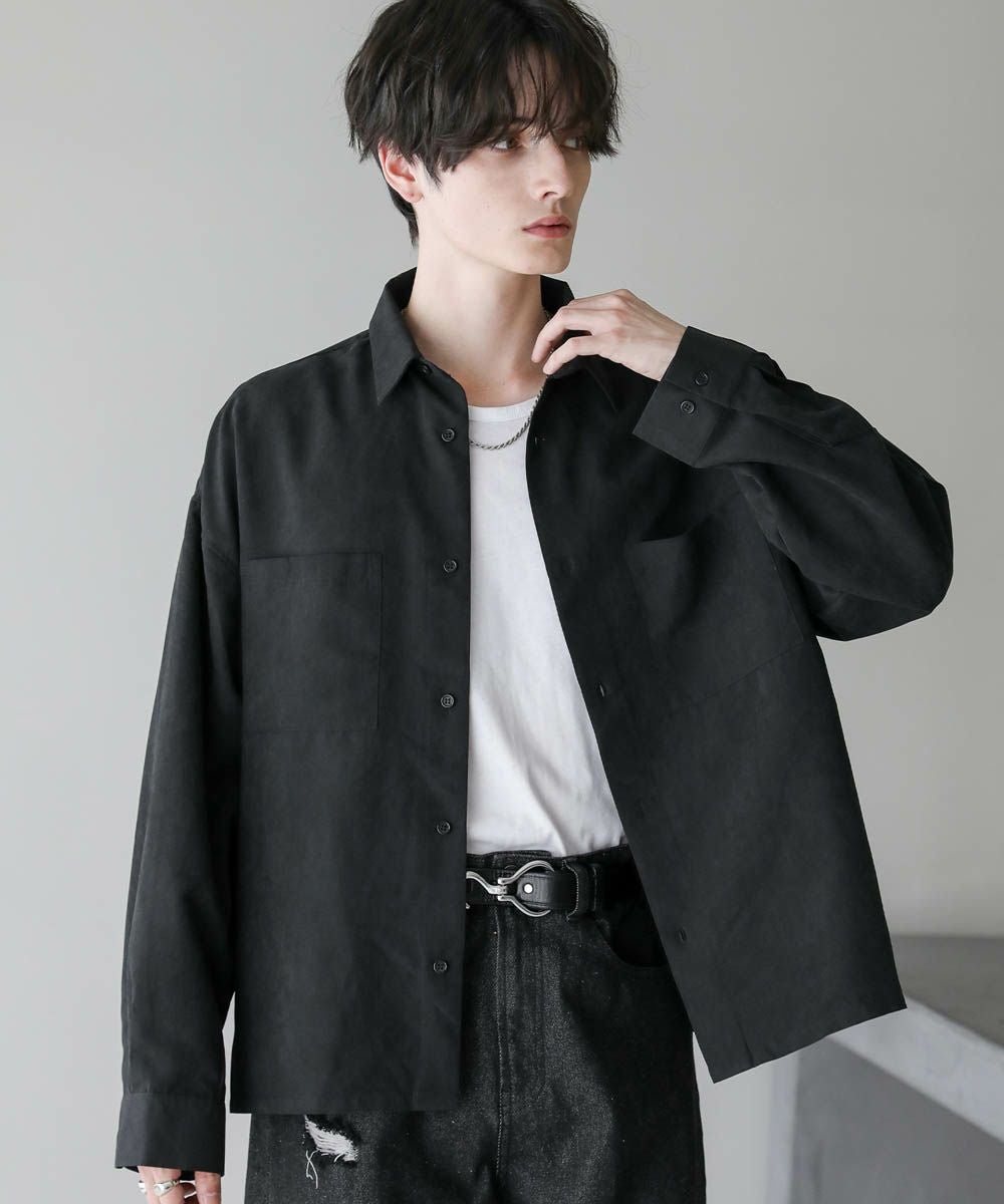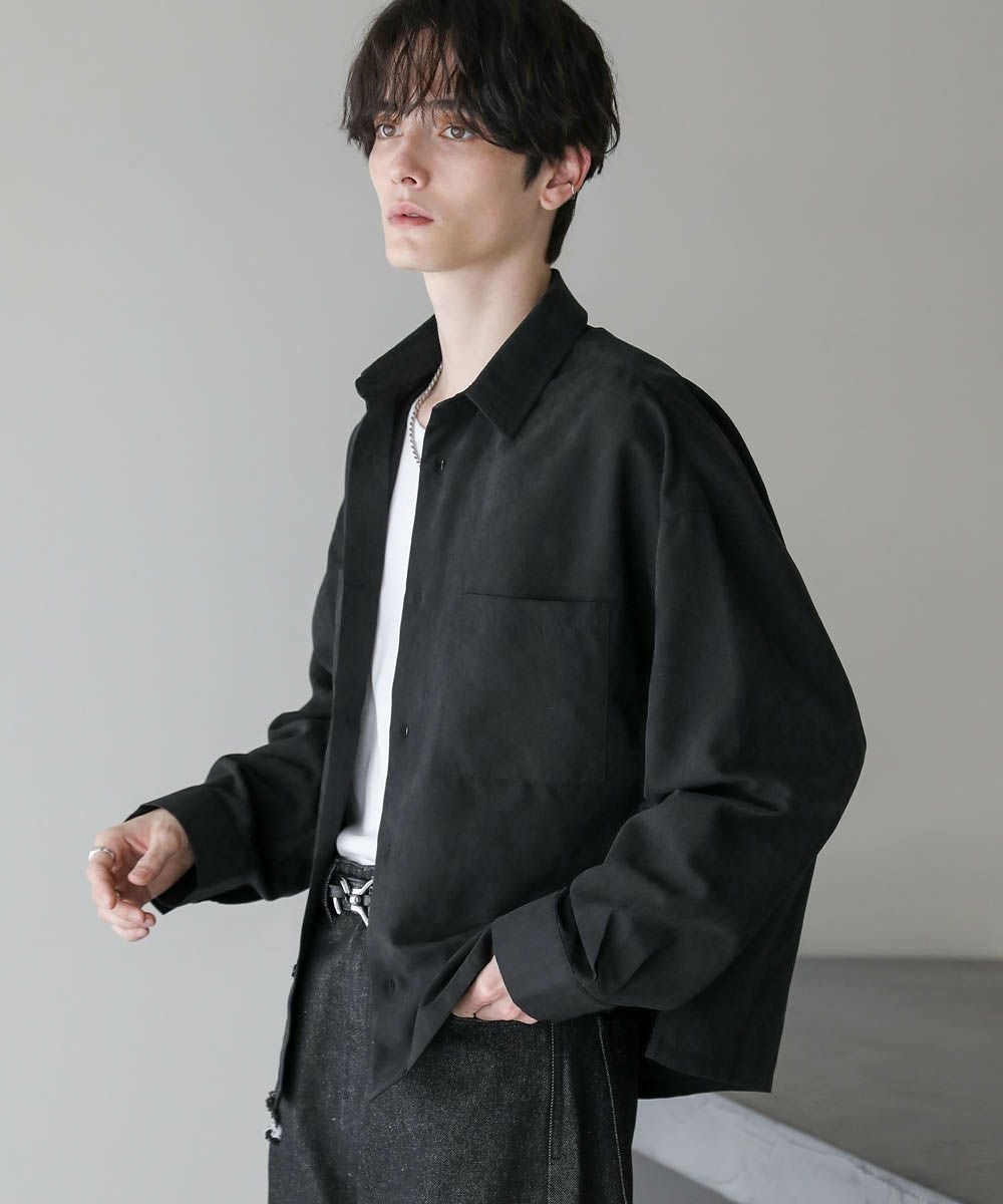 フェイクスエードショート丈長袖シャツ
