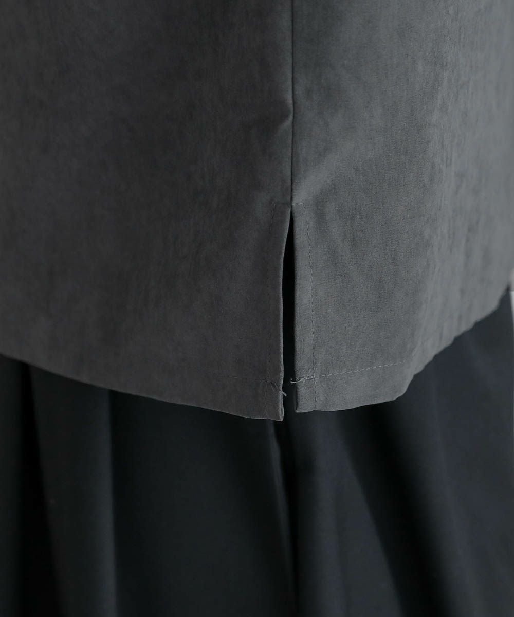 滑らかな質感のフェイクスエード生地を使用しています。軽い着心地で季節の変わり目にさっと羽織りやすい素材感。また、シワになりにくくお手入れしやすいのもポイントです。