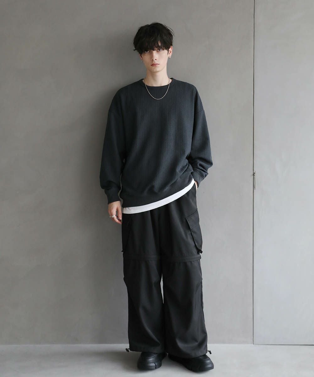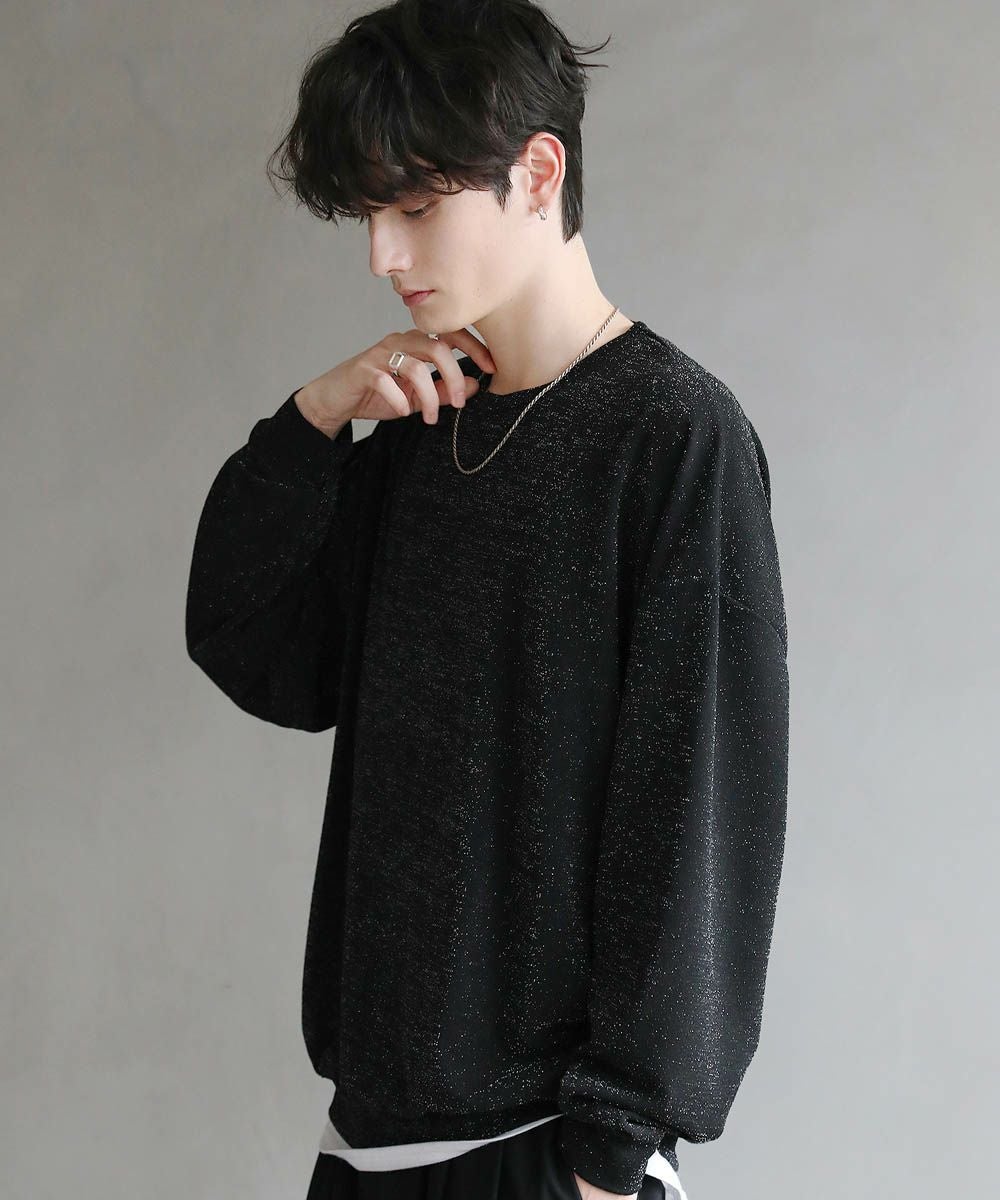 ドルマンスリーブジャガードポンチ/梨地ラメ長袖カットソー