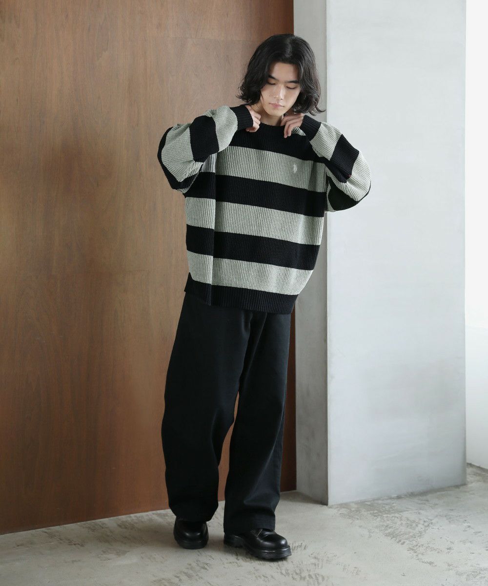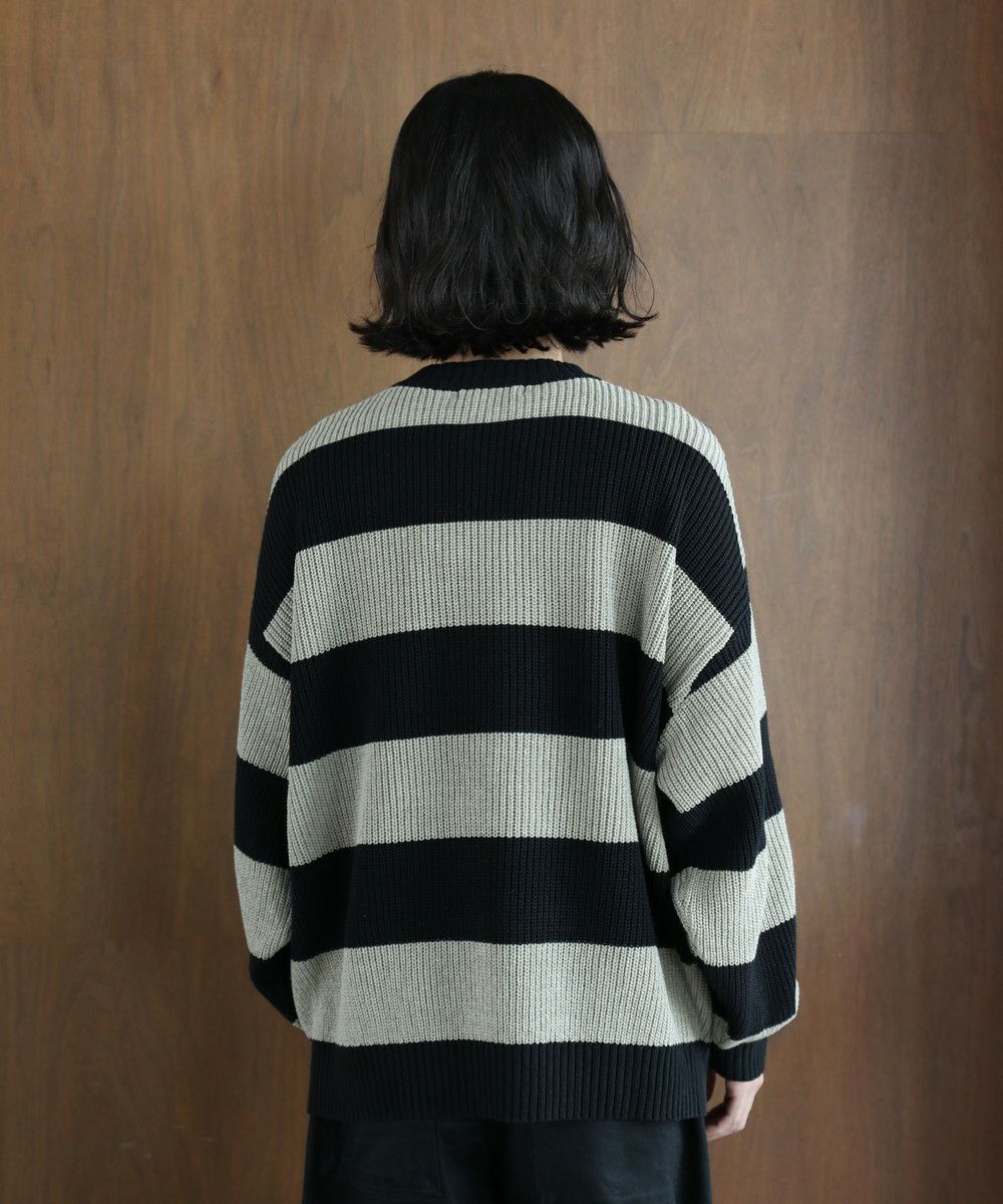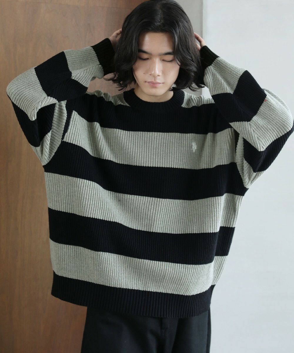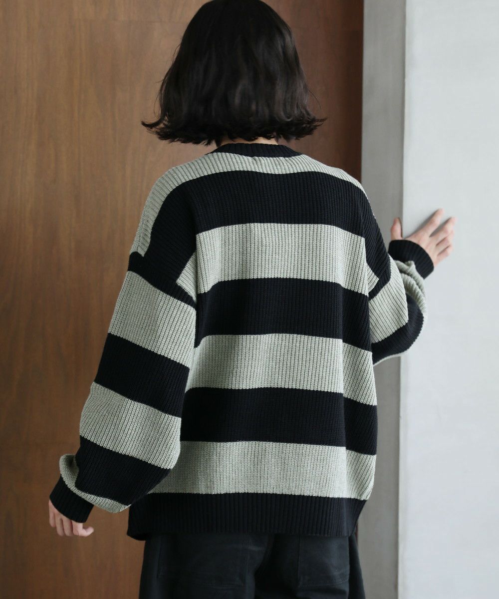 ざっくりとした畦編み素材のボーダーニット。太めのボーダーと、ローゲージの畦編み素材の雰囲気が抜け感のあるスタイルを創ります。ゆとりのあるオーバーサイズシルエットにドロップショルダーがリラックスした雰囲気。フロントのブランドロゴ刺繍がさりげないアクセントになります。落ち着いたトーンのボーダーで、コーディネートにも気軽に取り入れやすい一着。秋冬のスタイリングにラフな抜け感をプラスする、着回し力抜群のアイテムです。