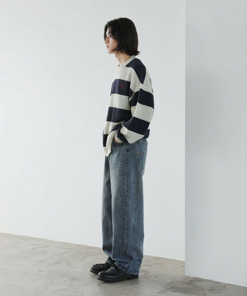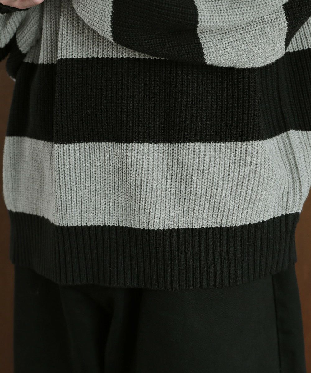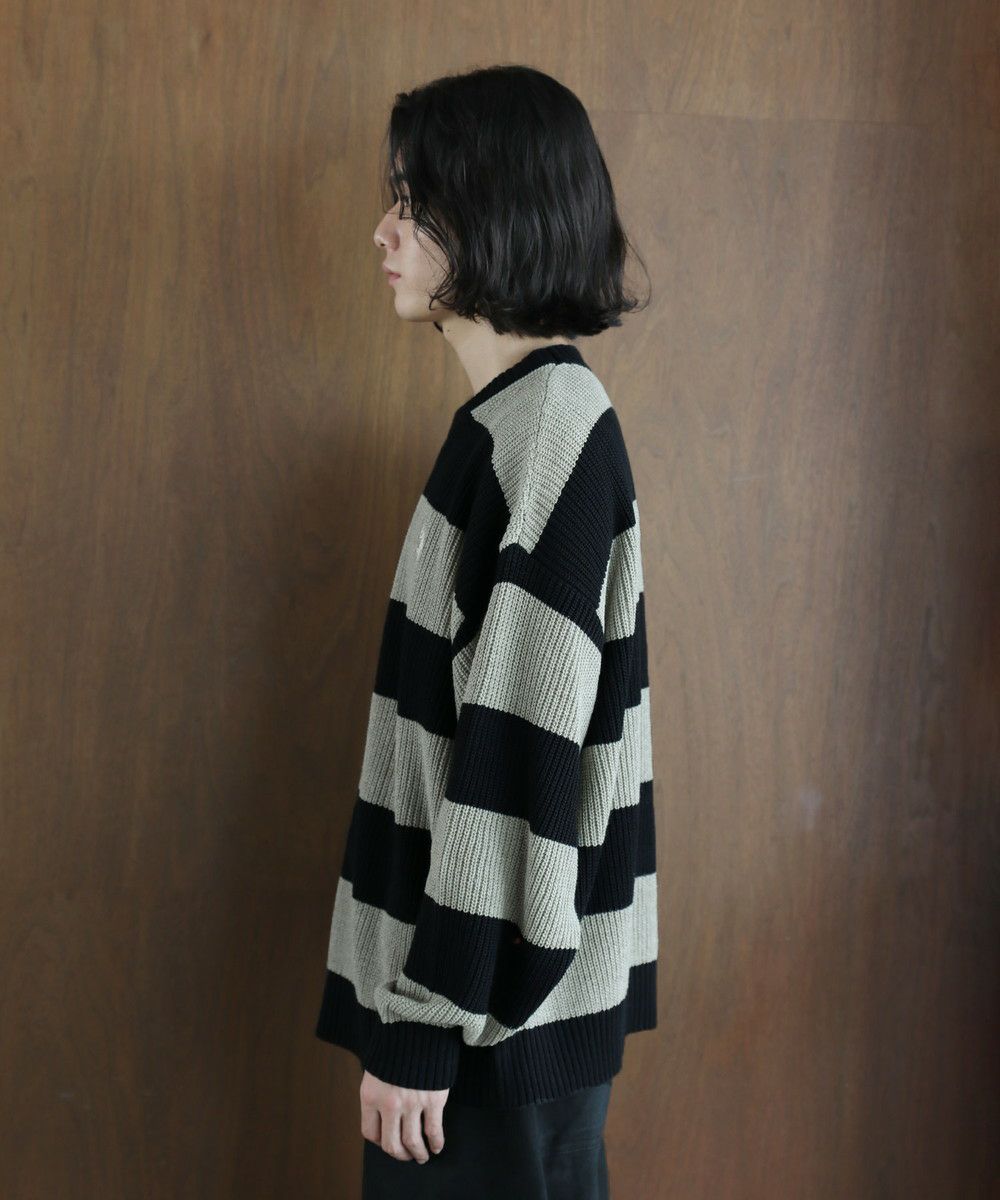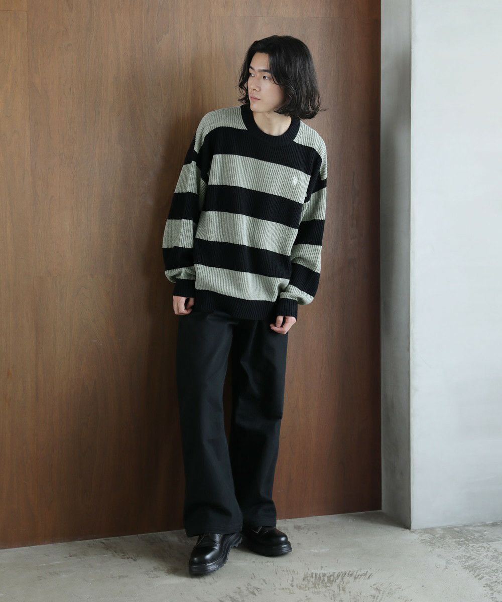 ざっくりとした畦編み素材のボーダーニット。太めのボーダーと、ローゲージの畦編み素材の雰囲気が抜け感のあるスタイルを創ります。ゆとりのあるオーバーサイズシルエットにドロップショルダーがリラックスした雰囲気。フロントのブランドロゴ刺繍がさりげないアクセントになります。落ち着いたトーンのボーダーで、コーディネートにも気軽に取り入れやすい一着。秋冬のスタイリングにラフな抜け感をプラスする、着回し力抜群のアイテムです。