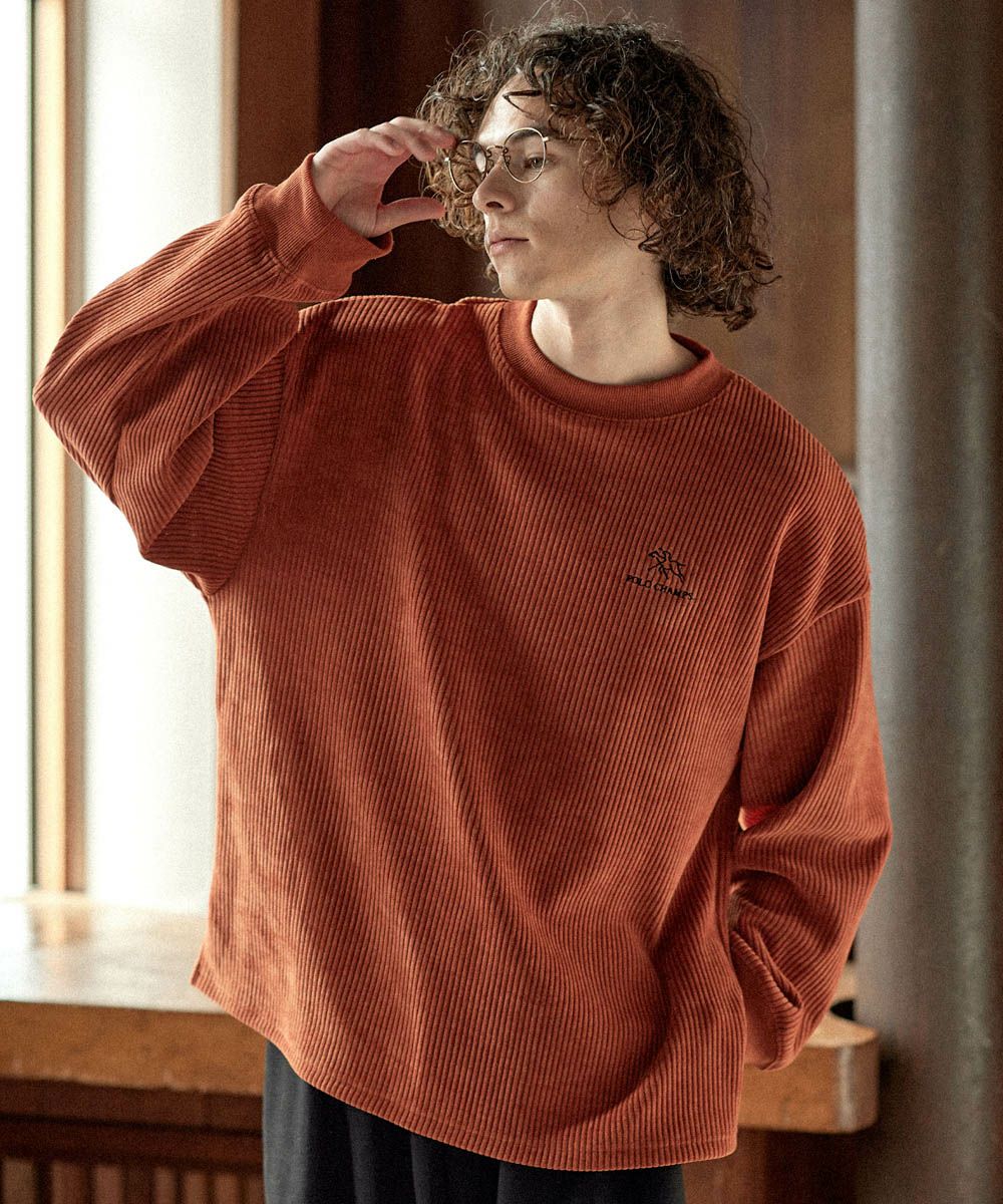 ウォーム感のあるコーデュロイ生地を使用したモックネックプルオーバー。胸元のブランド刺繍ロゴがワンポイントになり、1枚でコーディネートが完成するアイテムです。ゆったりとしたシルエットにドロップショルダー、サイドスリットが抜け感たっぷりのデザイン。