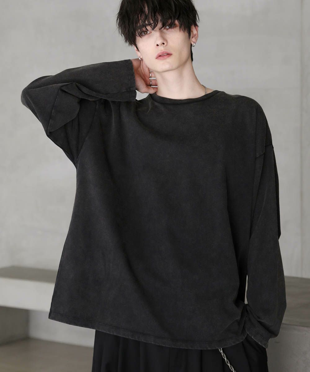 ピグメント加工を施した雰囲気抜群のビッグシルエットロンT。ゆとりのあるベーシックなボックスシルエットで、着回しやすく日々のコーデに活躍します。首元のリブはやや細め、また袖や裾にリブがなくストンとしたシルエットで、抜け感のある1着。綿100%のしっかりとした生地感で、1枚でメインのトップスとして使用できます。ピグメント加工を施したブラック系、グレー系、ブラウン系と、ソリッドな無地のホワイト、ブラックの5色展開です。