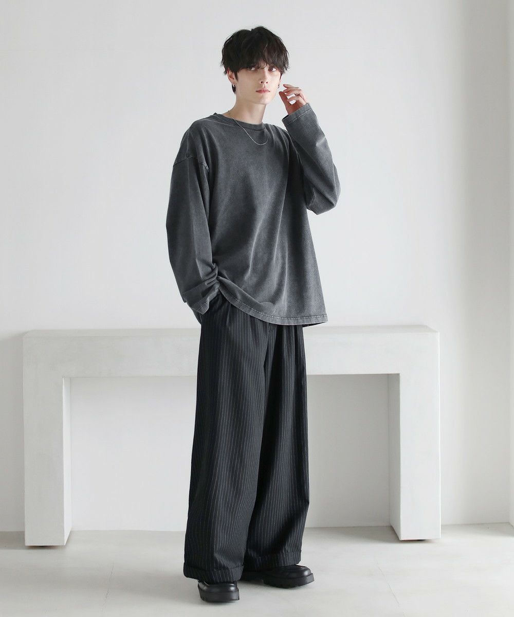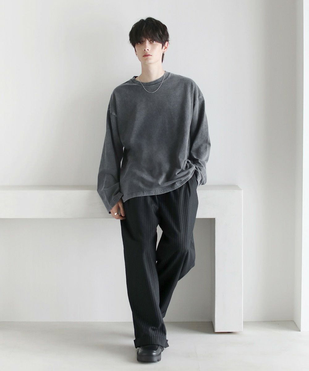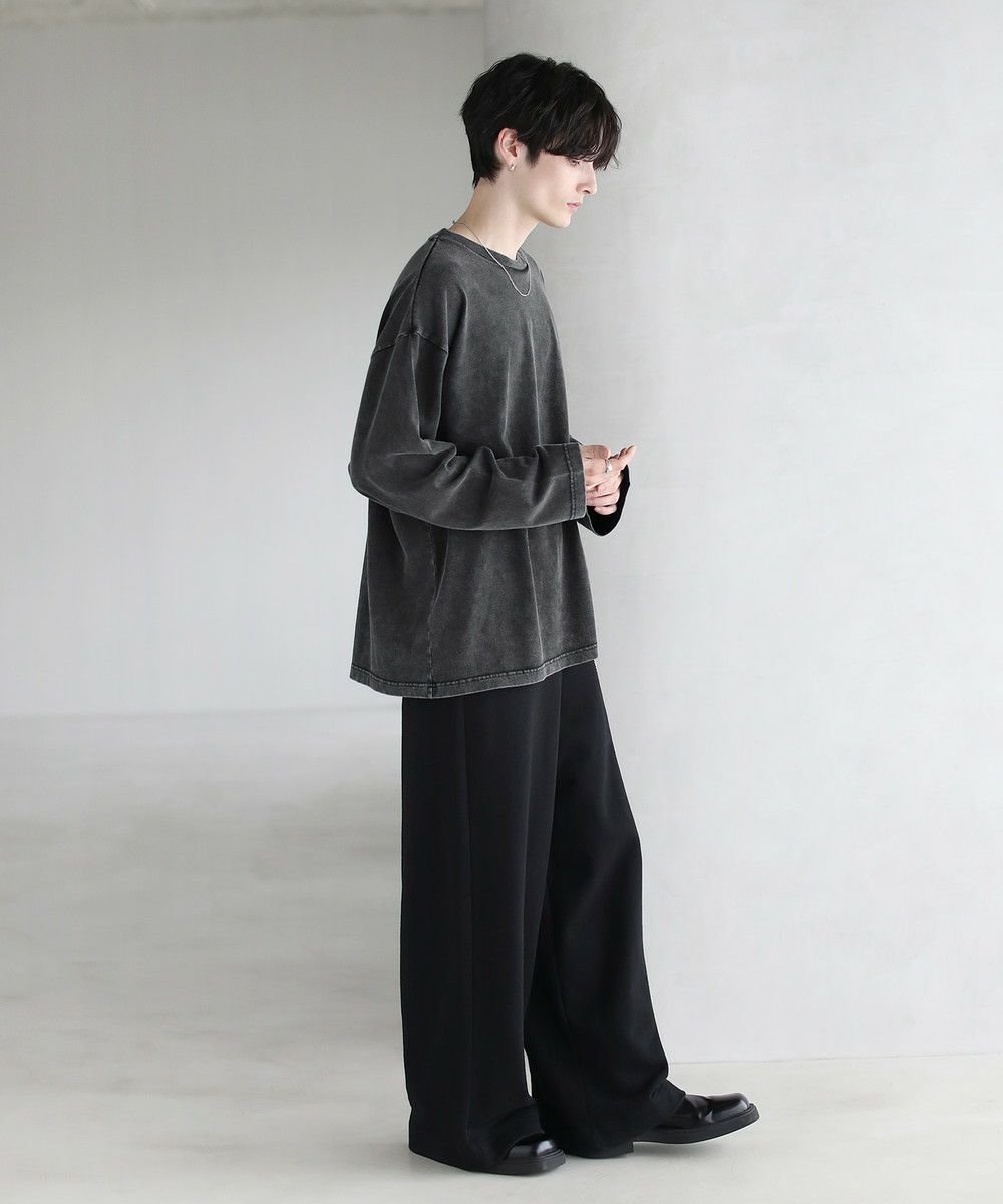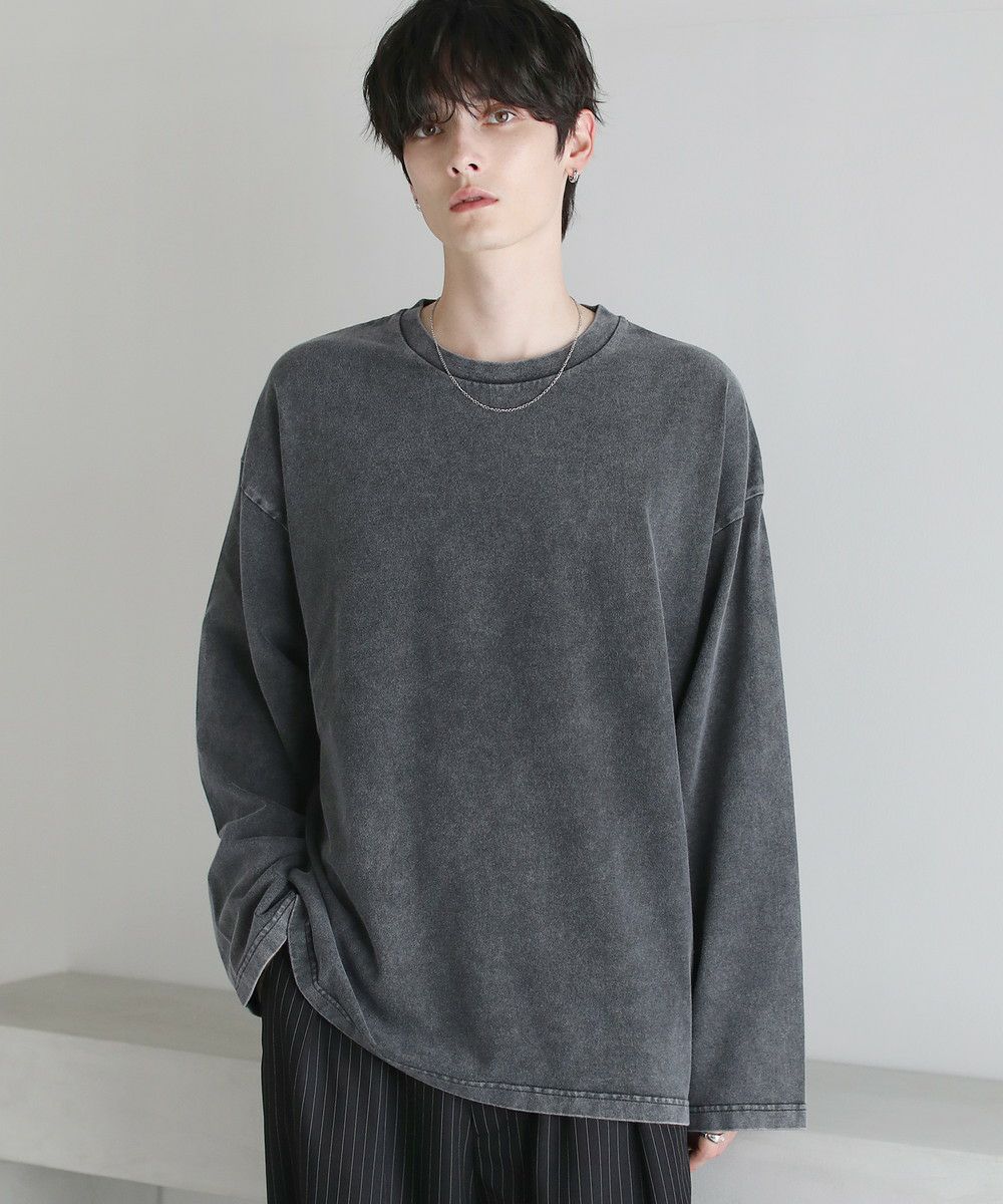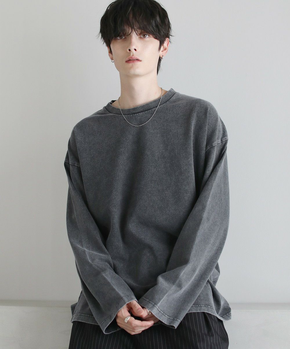 雰囲気のあるピグメント加工が主役感のあるビッグロンT。シンプルで着回しがしやすく、タックインの着こなしもおすすめ。春や秋は1枚で、冬はインナーとしてロングシーズン着用可能です。