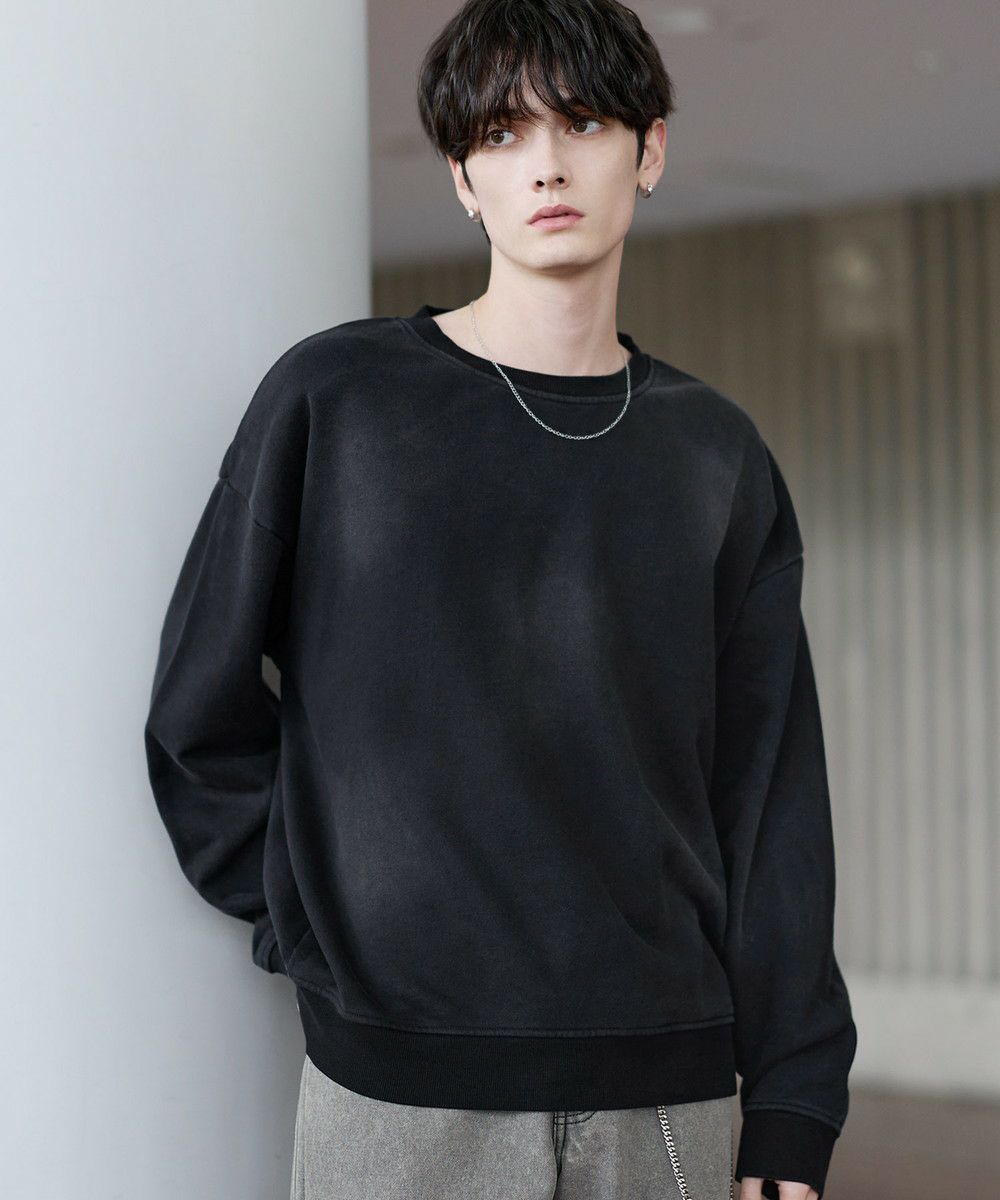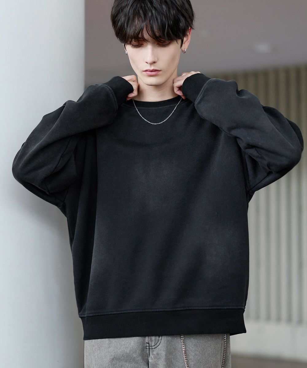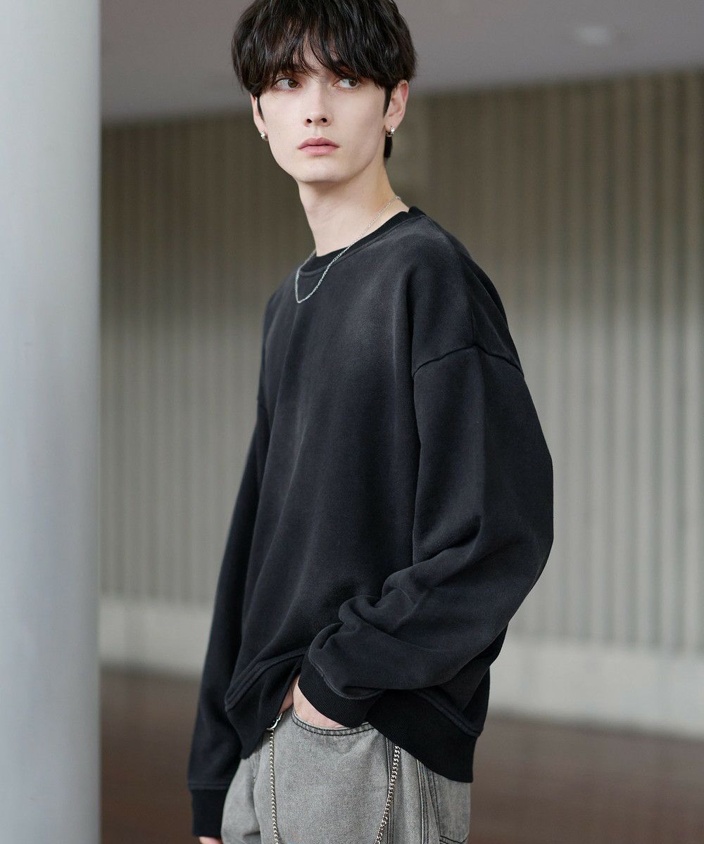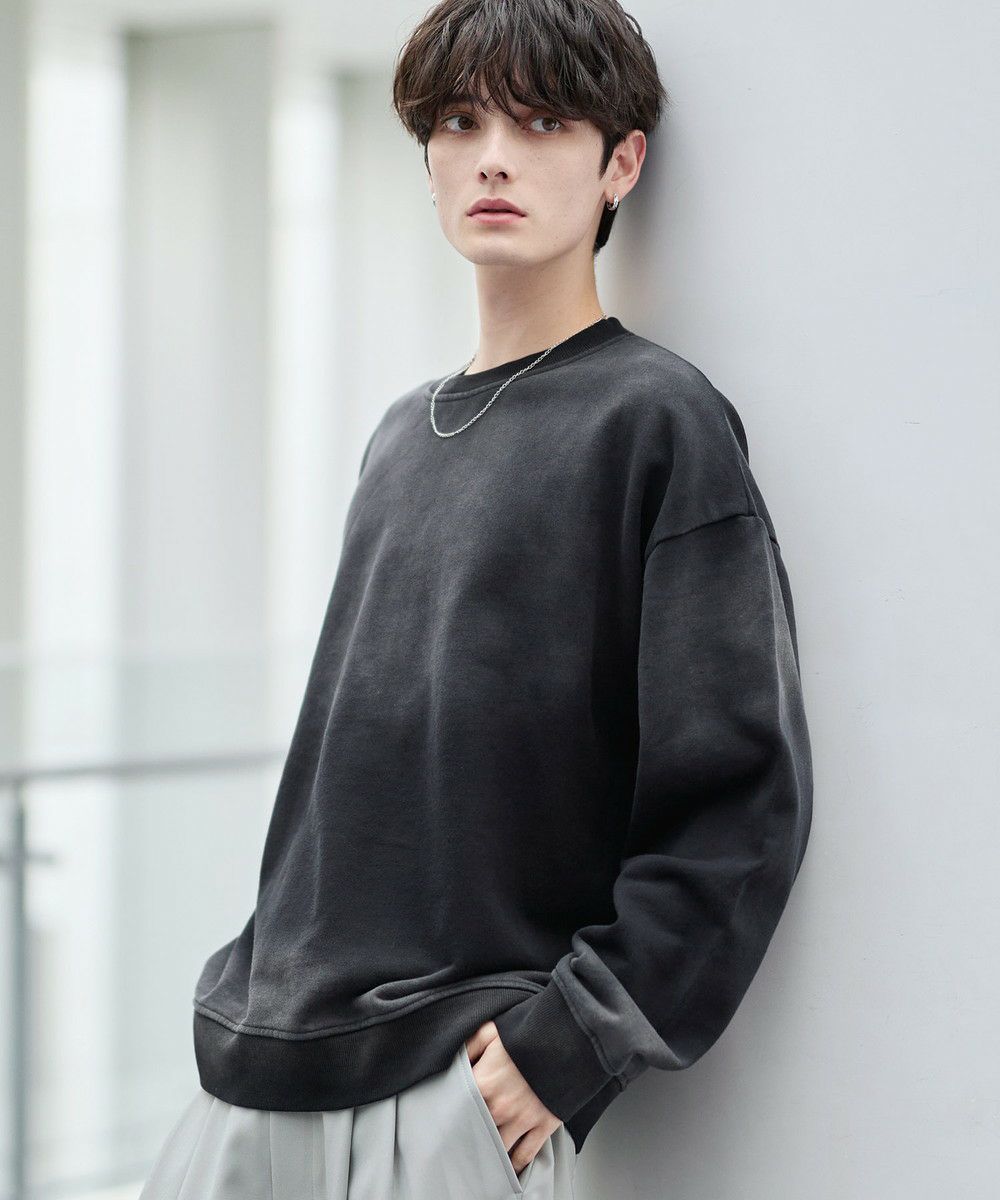 雰囲気のあるピグメント加工が主役感のあるクルースウェット。ワイド、バギーパンツなどボリュームのあるボトムやデニムパンツなどと合わせたスタイリングがおすすめです。