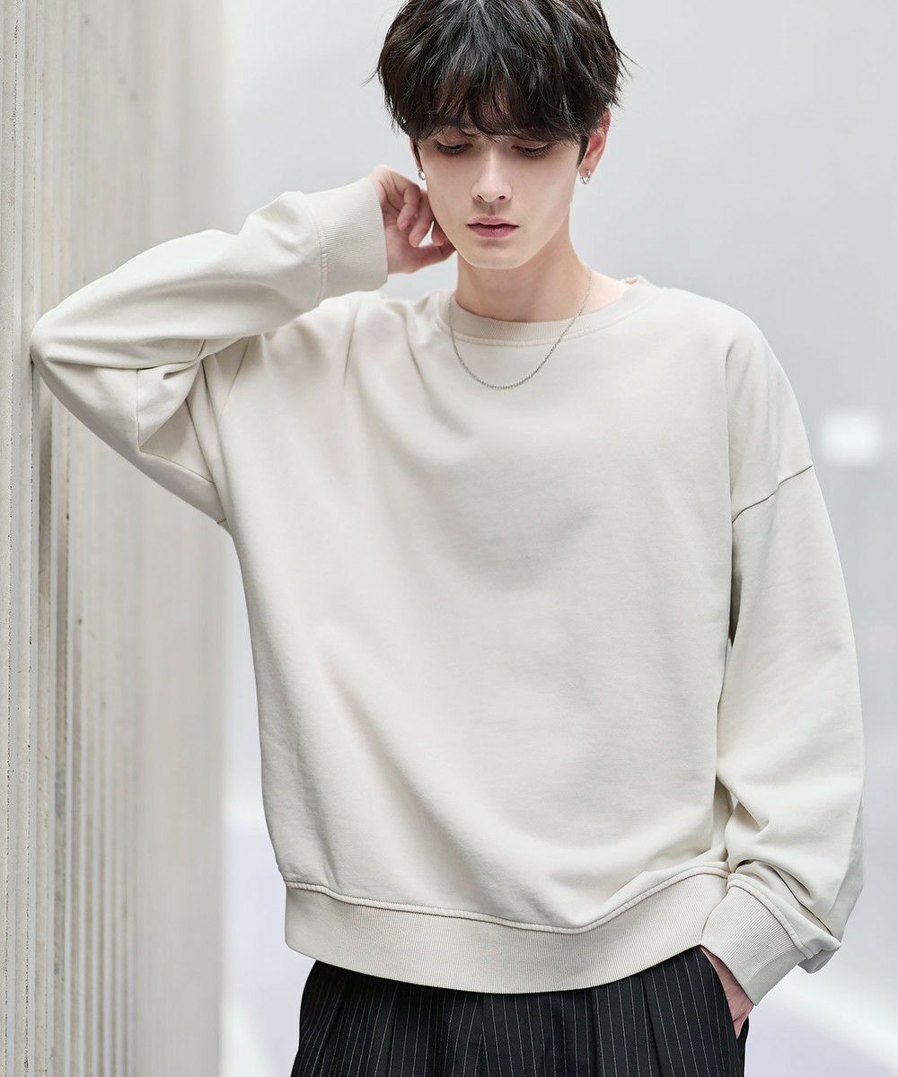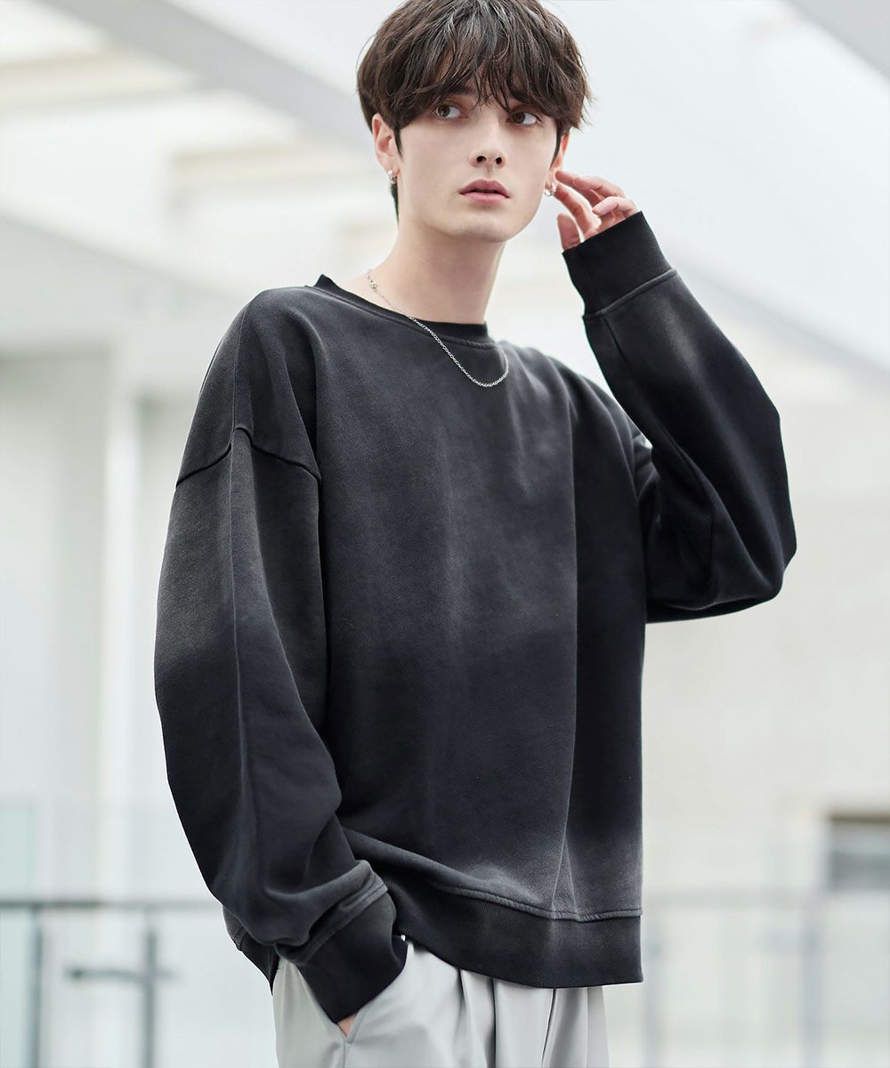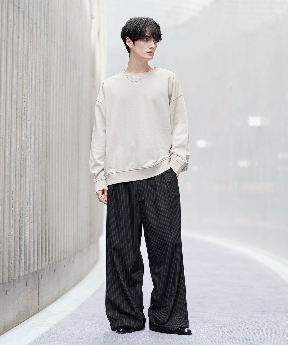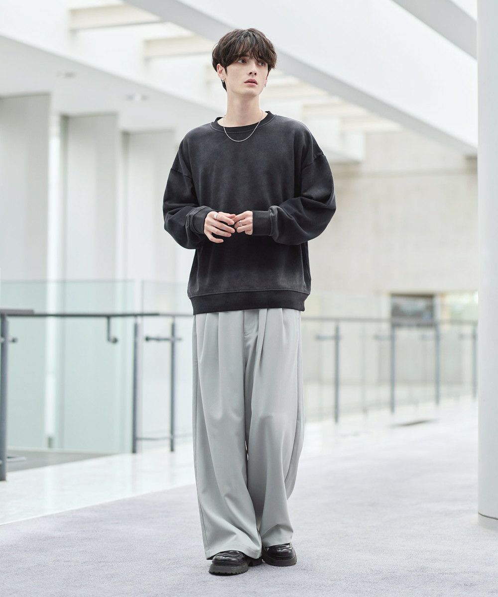 雰囲気のあるピグメント加工が主役感のあるクルースウェット。ワイド、バギーパンツなどボリュームのあるボトムやデニムパンツなどと合わせたスタイリングがおすすめです。