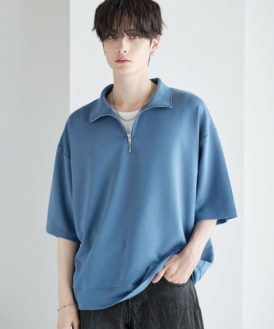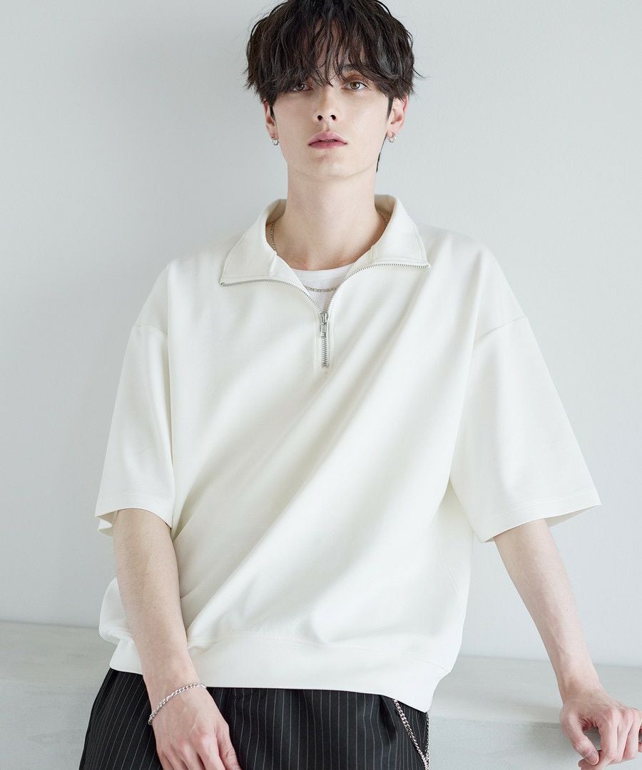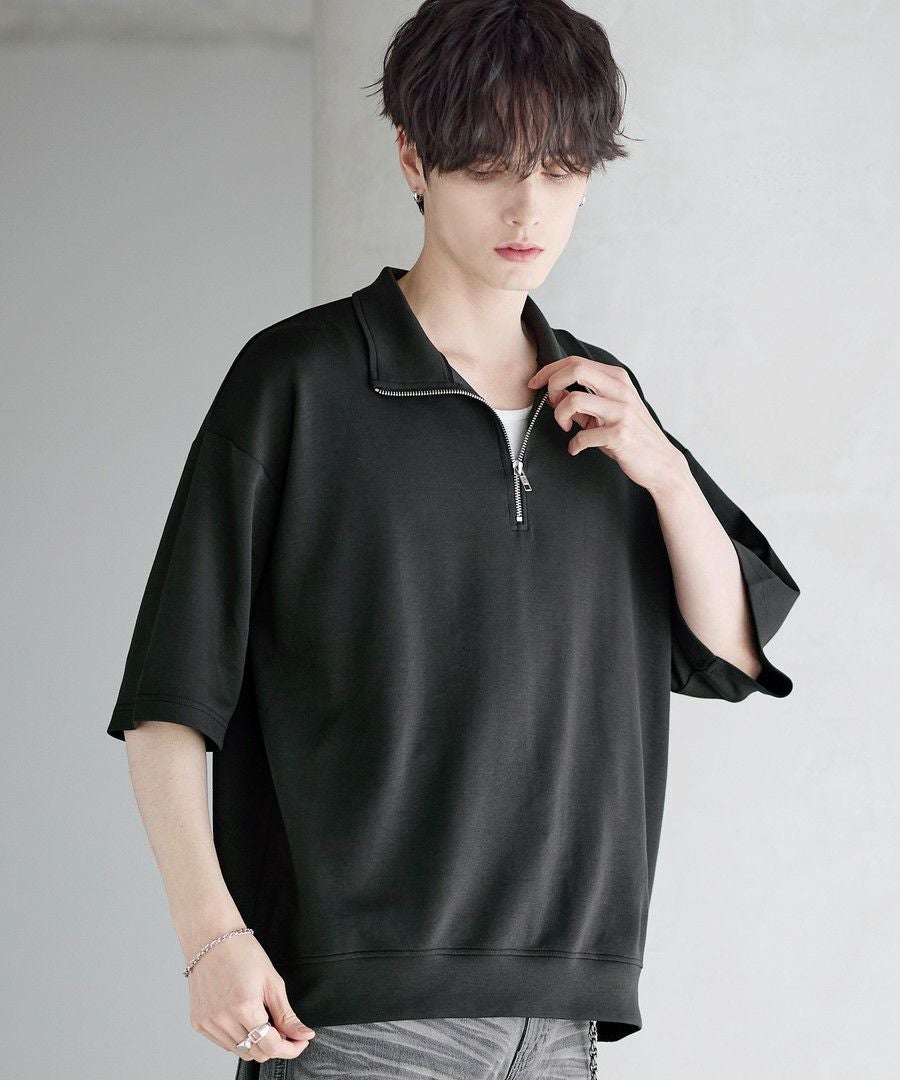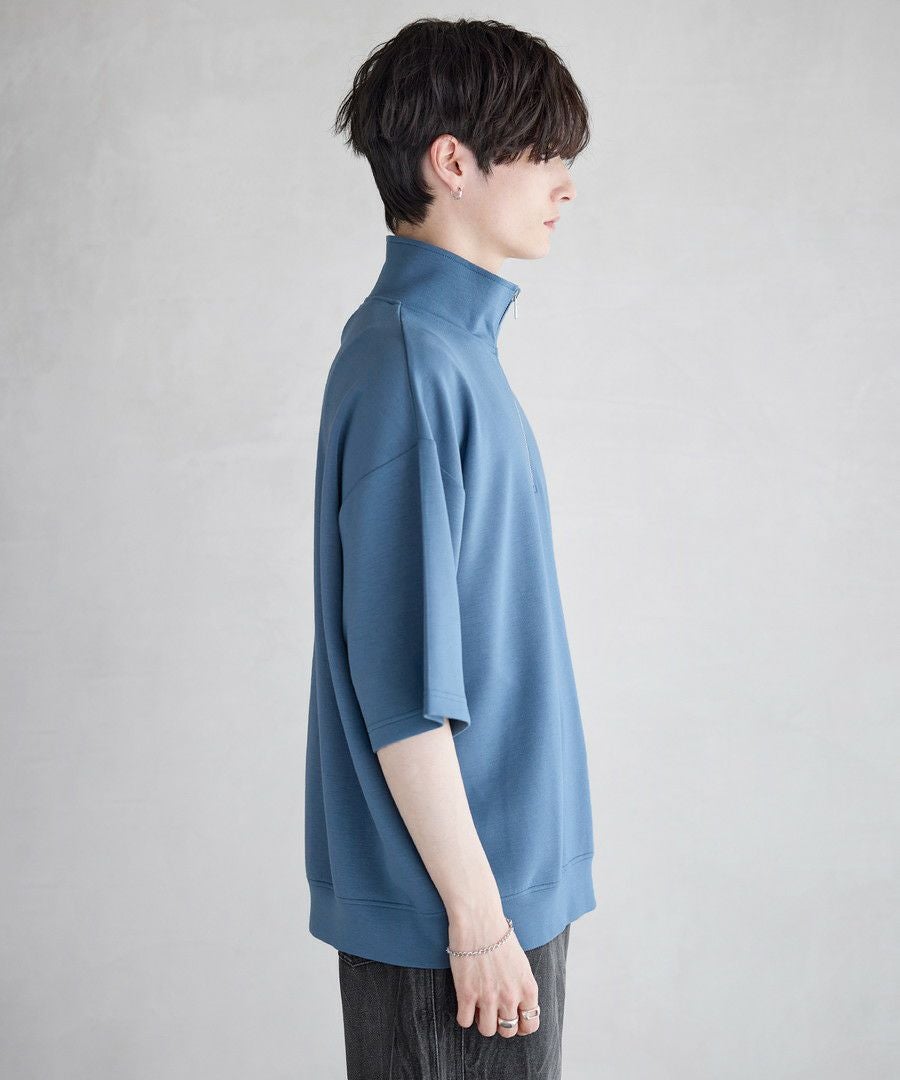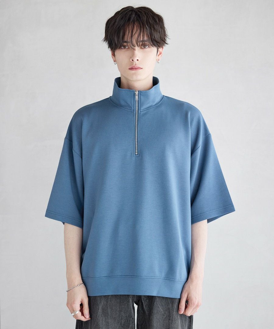 接触冷感ポンチハーフジップ半袖プルオーバー
