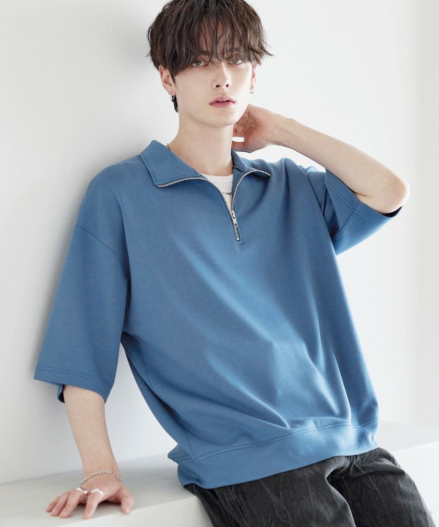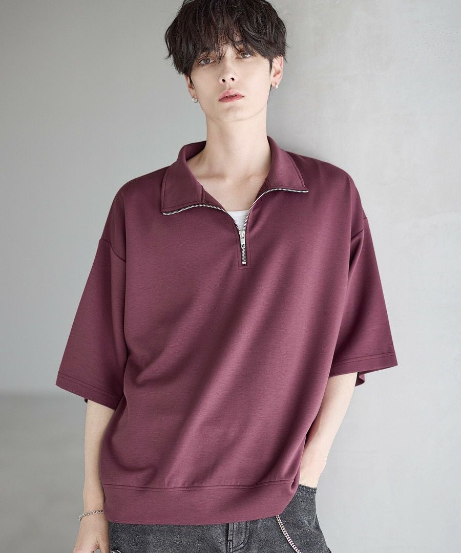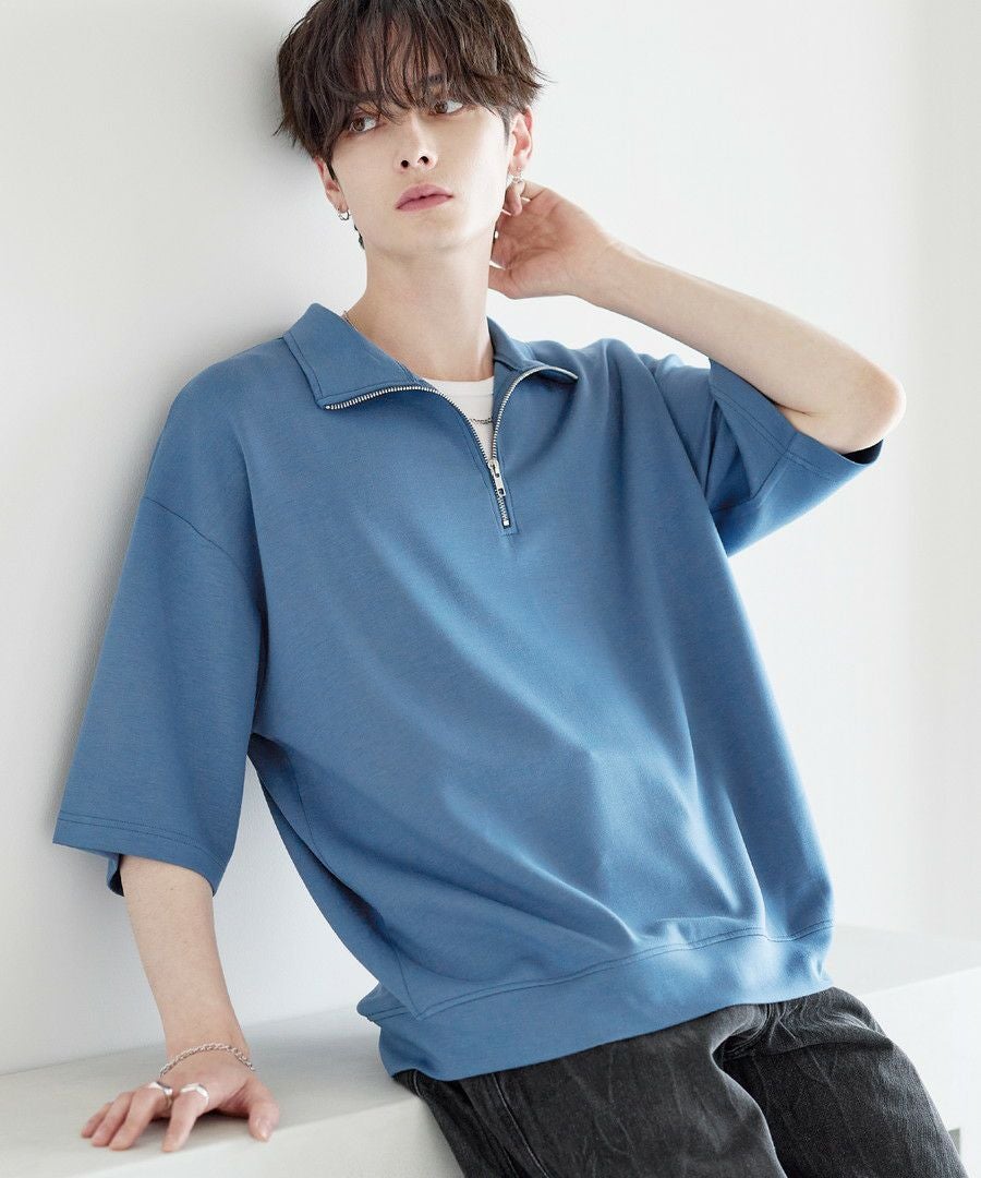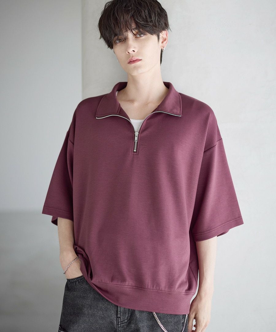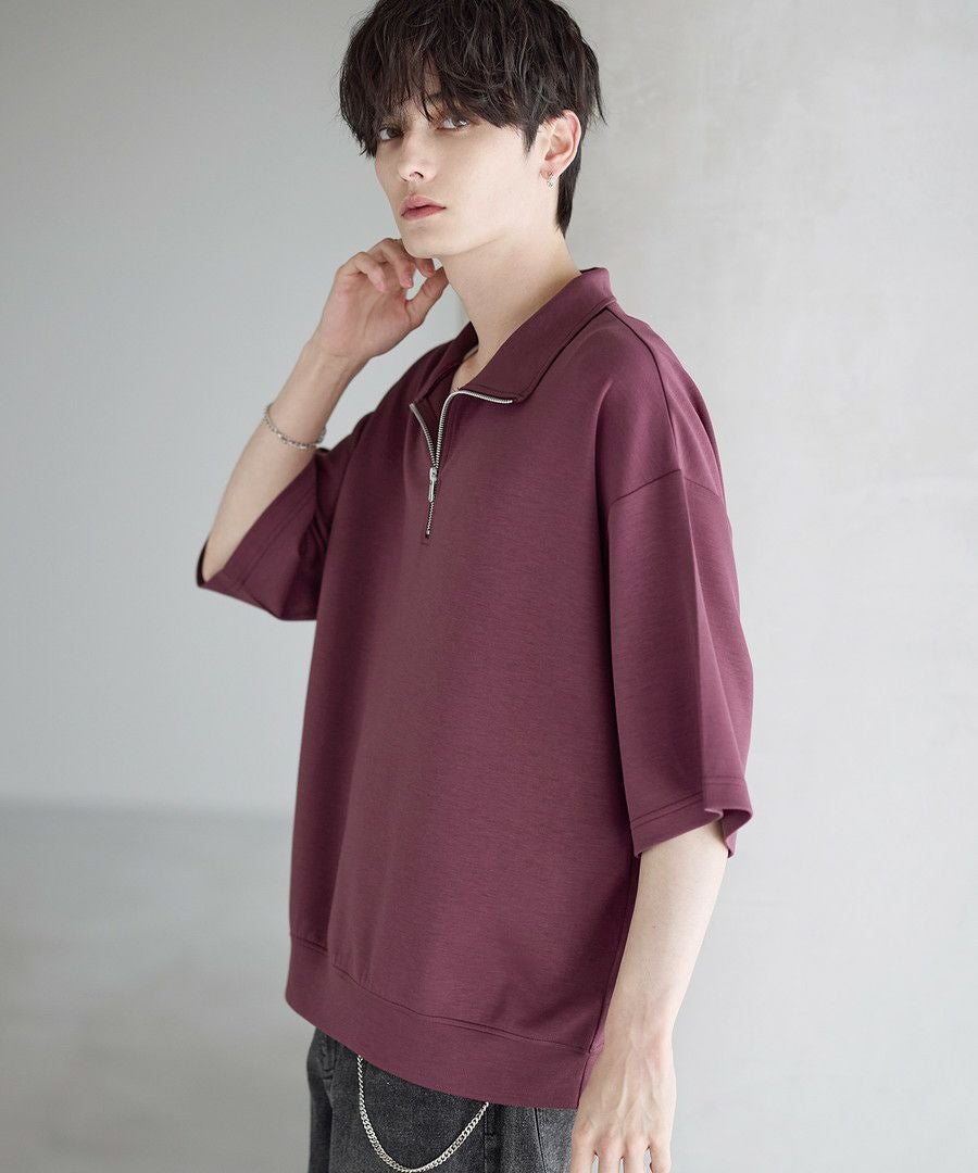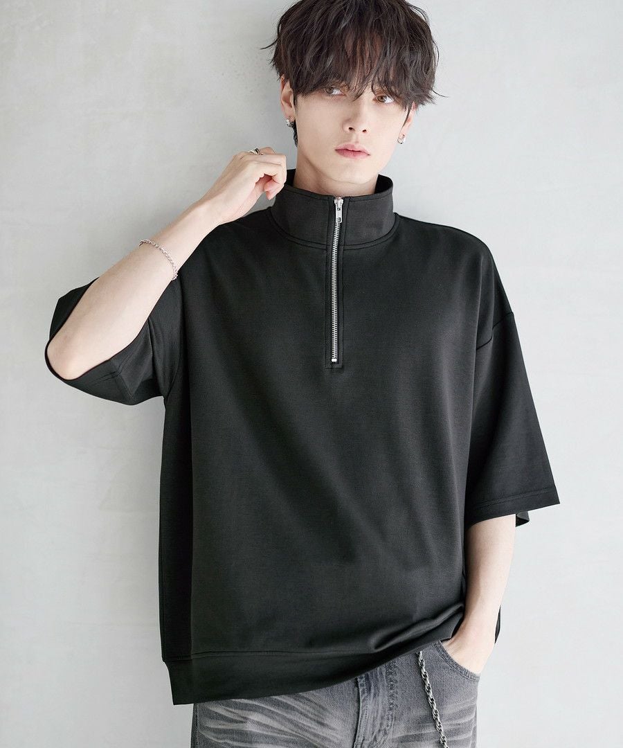接触冷感ポンチハーフジップ半袖プルオーバー