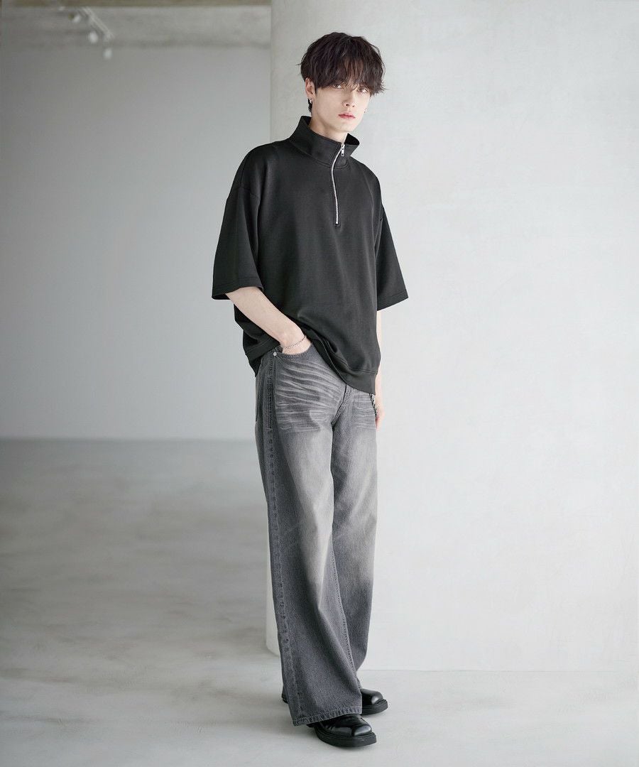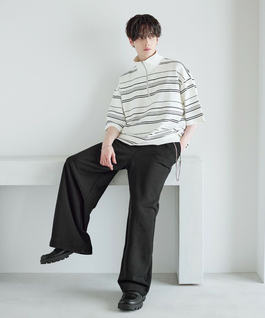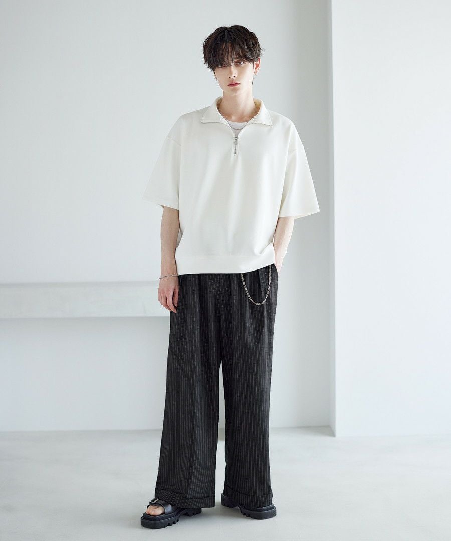 接触冷感機能付きが嬉しいポンチハーフジッププルオーバー。ドロップショルダーやゆとりのある身幅、肘にかかる長めの袖丈など、こなれ感たっぷりに仕上げました。生地表面にほんのりと光沢感があり、シンプルなアイテムながら1枚で上品な印象を与えてくれます。カラーはシンプルなホワイト、ブラック、ブルーグレー、ワインに、ランダムなボーダーがおしゃれな印象のホワイト系、ブラック系の6色展開。暑い時期にぴったりな涼しく快適な着心地で、夏に1枚は欲しいおすすめのアイテムです。