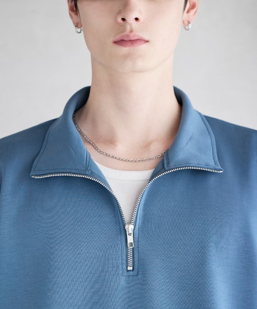 シンプルながら洗練されたデザインで、一枚着でもコーディネートがサマになるアイテム。ジップを閉じてハイネックで着用しても、ジップを開けて首元からインナーを覗かせるレイヤードスタイルでもお洒落に決まります。カジュアルなデニムパンツからキレイめなスラックスまで、どんなボトムスともバランス良く着用いただける一着です。