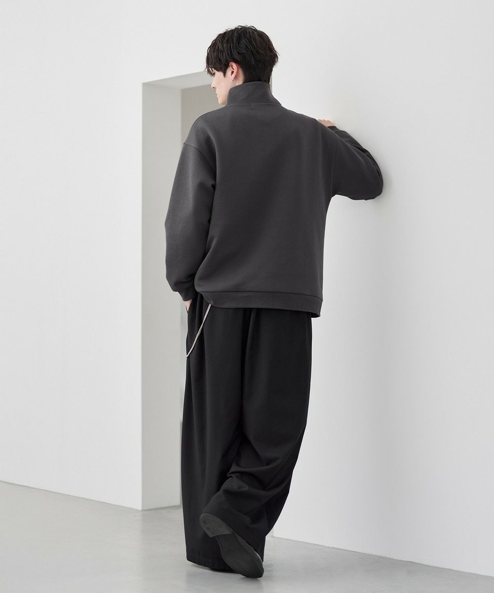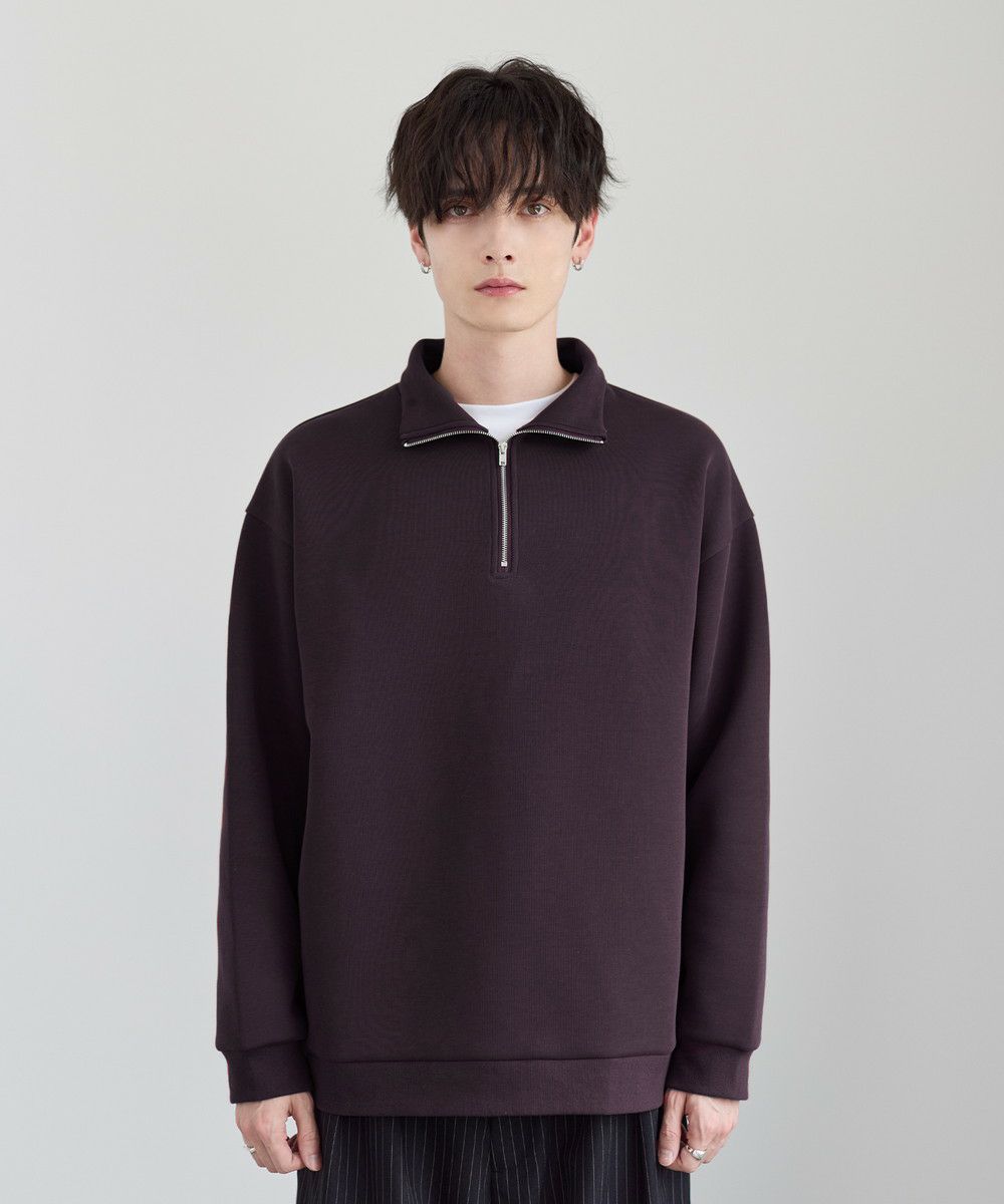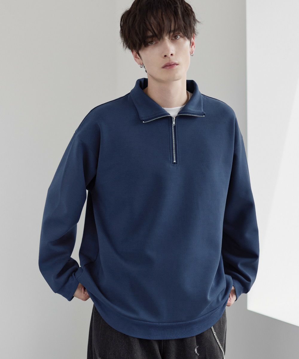 シンプルながらもトレンド感のあるデザインが魅力のハーフジッププルオーバー。ジップの開け閉めで印象の変化を楽しめるハーフジップ仕様で、アレンジが広がる一枚。ゆとりのある身幅とドロップショルダーでリラックス感のある雰囲気に仕上げました。