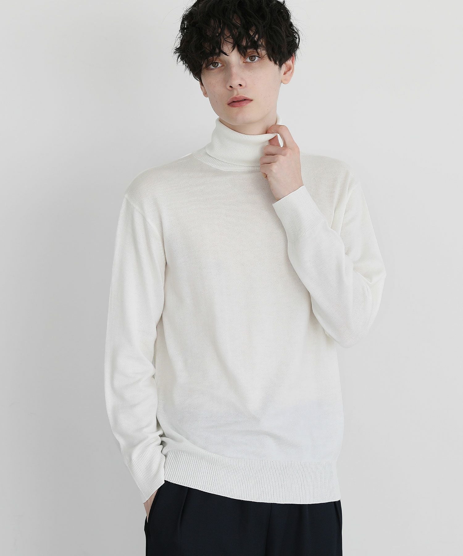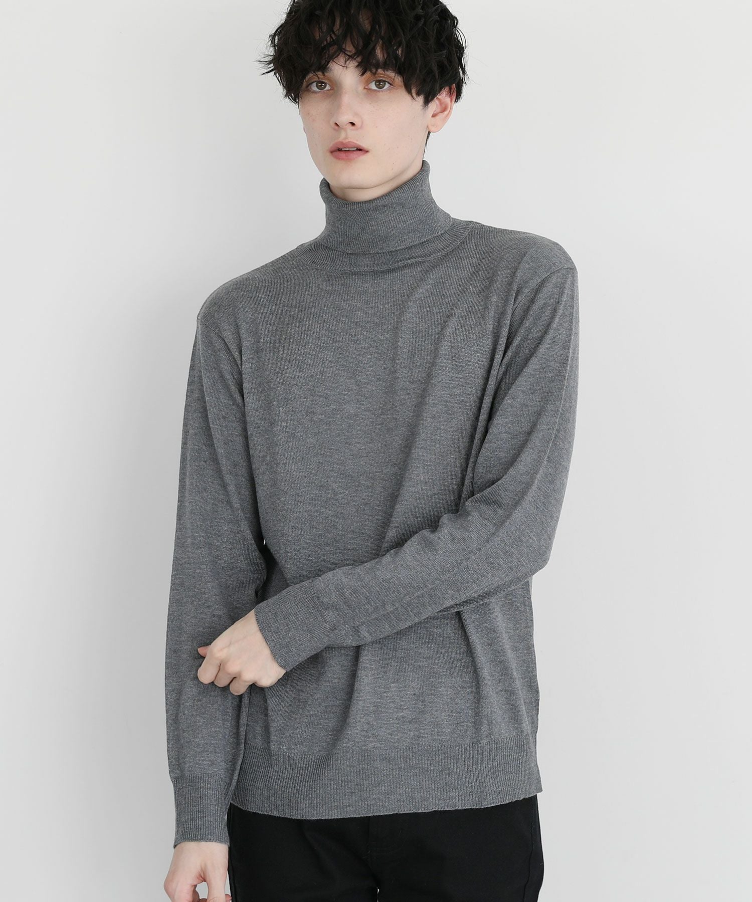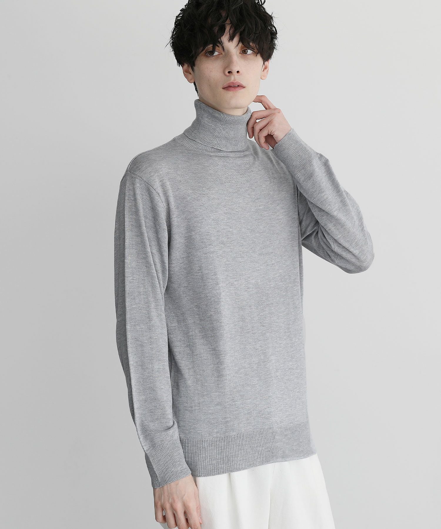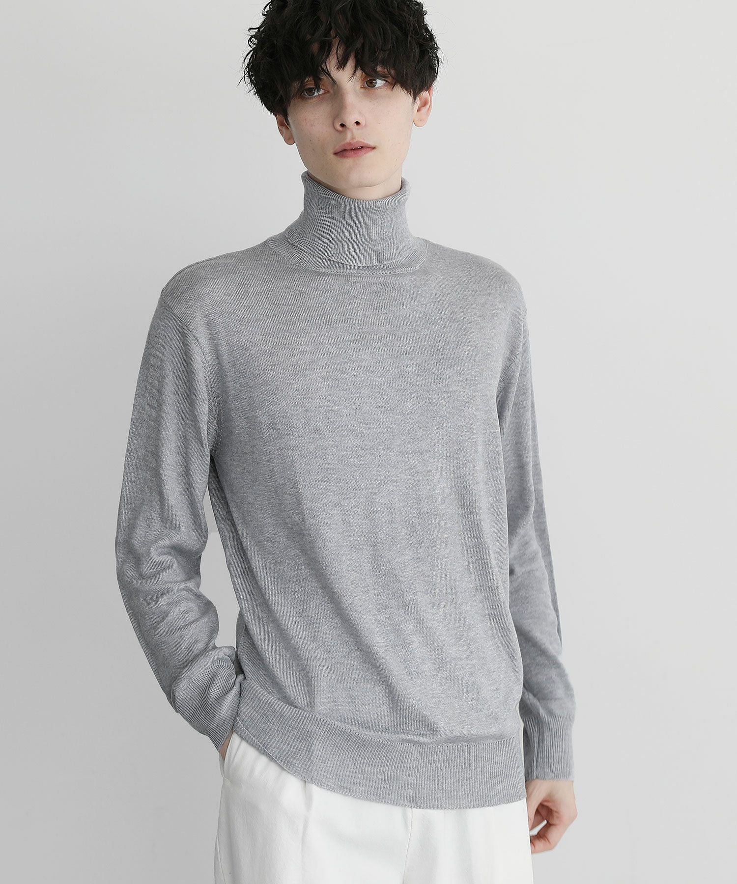 12Gカシミアライク天竺タートルネックニット