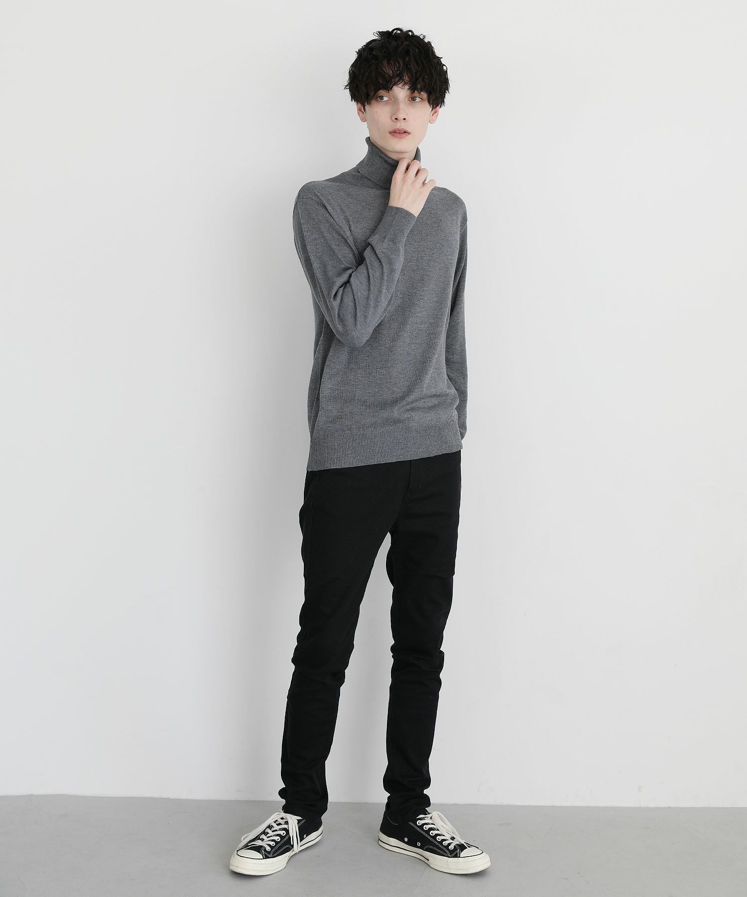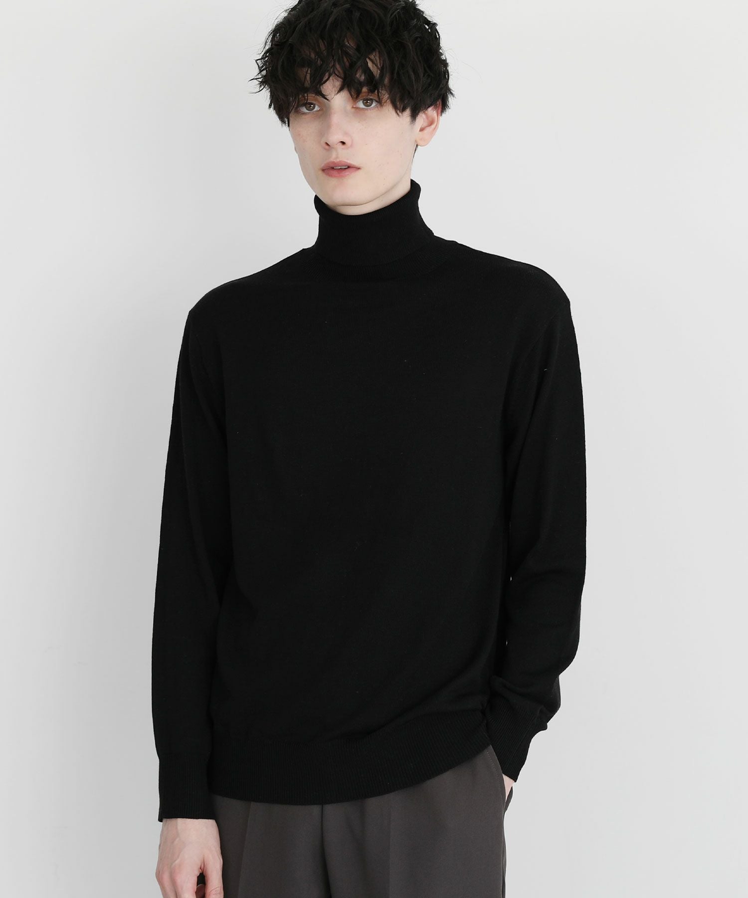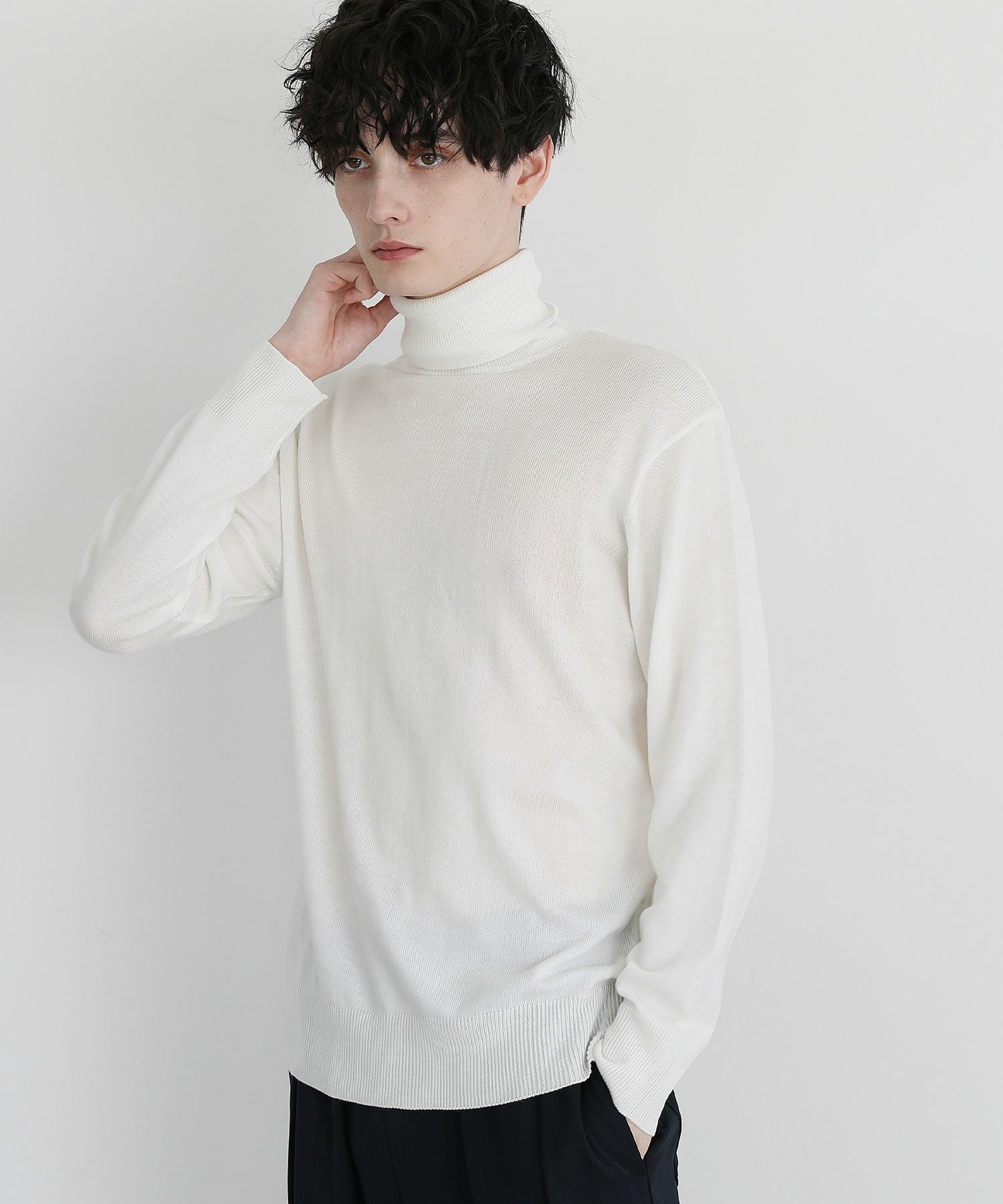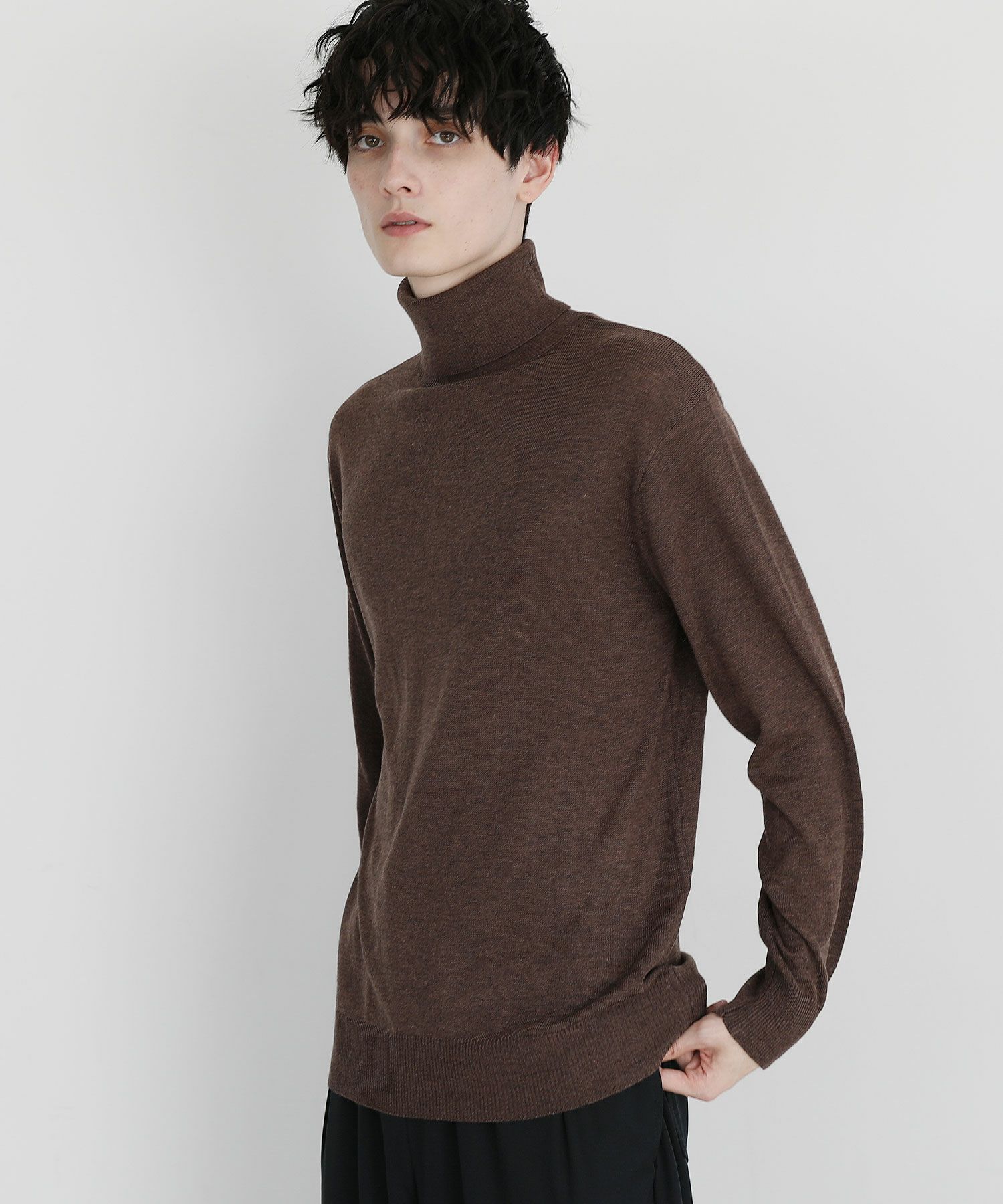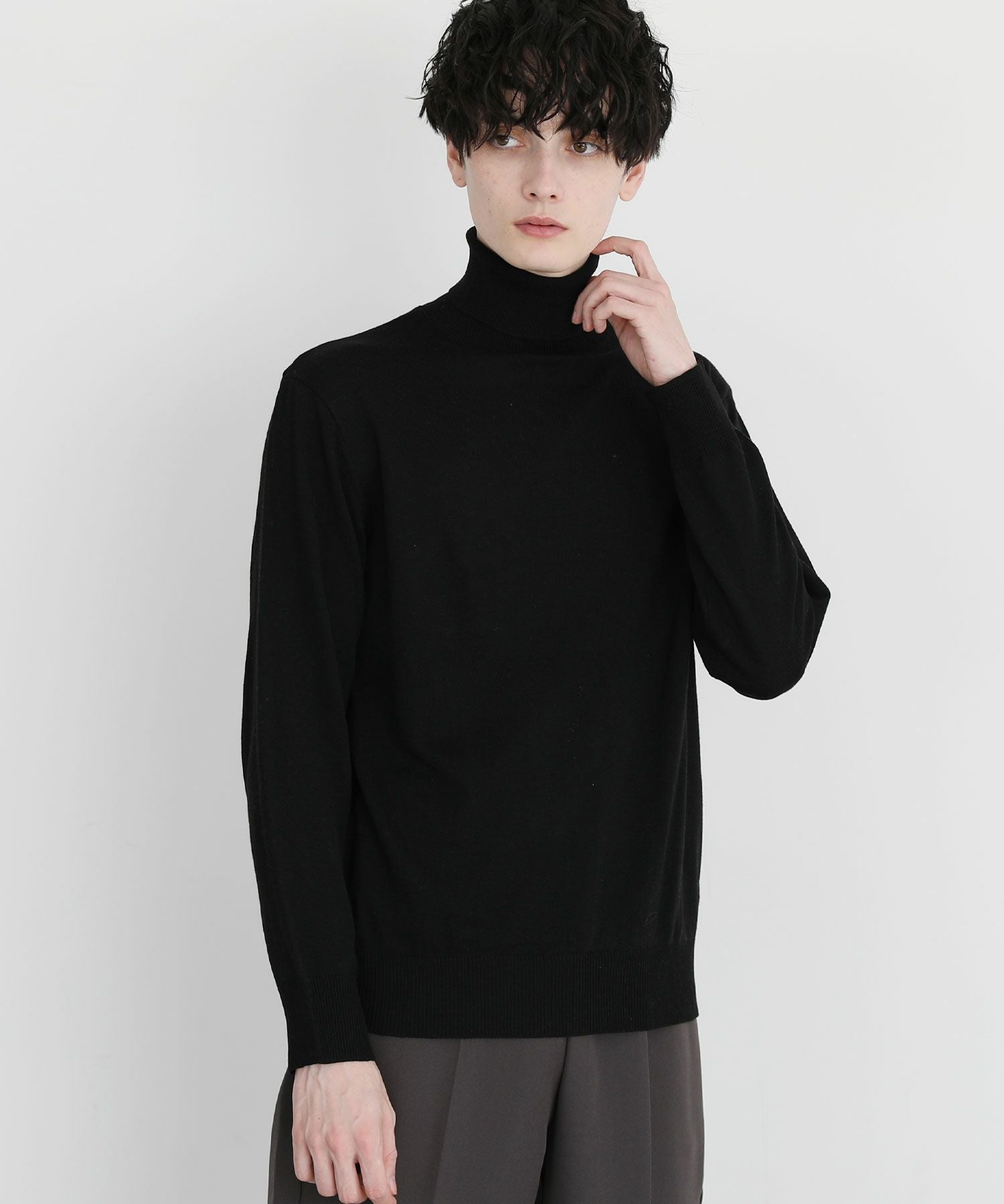 12Gカシミアライク天竺タートルネックニット