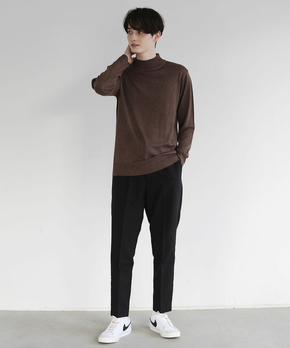 シンプルな無地デザインでカットソー感覚で様々なアイテムと組み合わせしやすいアイテム。カジュアルな印象のMA-1やキレイめなコートなど羽織れば簡単にコーディネートがきまる、着回し力に優れたニットです。