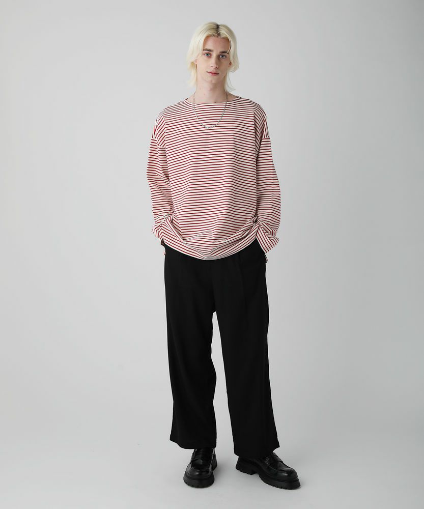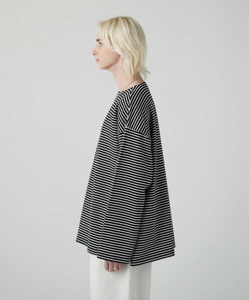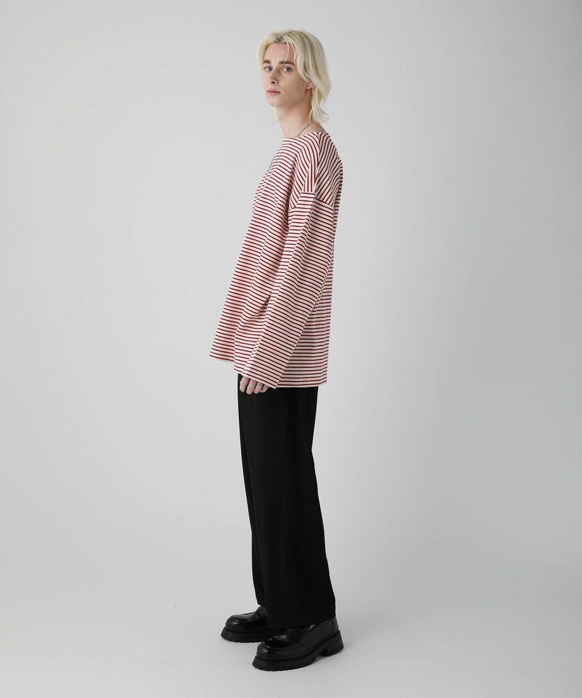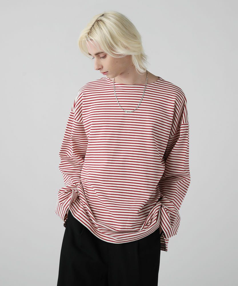 フランスの伝統的なバスクボーダーシャツをモチーフにした長袖カットソーです。首元が見えすぎない上品なボートネック仕様で、清潔感のある印象に。袖をまくって着れるように袖巾などのパターンにもこだわりました。スラックスやデニムパンツまで幅広いボトムスと合わせやすい着回し力の高い一着です。