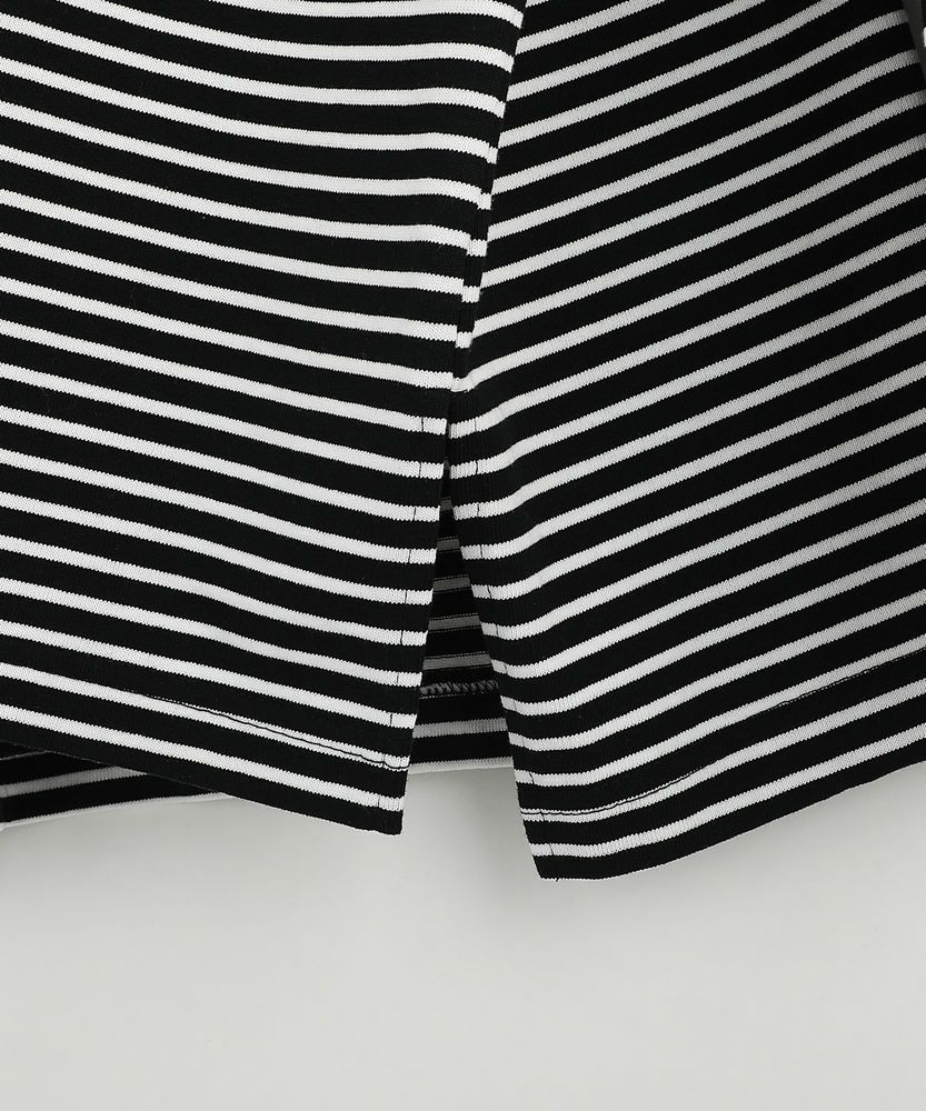 ドロップショルダーデザインや、ゆったりとしたサイズ感がこなれた印象をプラスしてくれるアイテムです。裾のサイド部分にスリットが入っているため、動きやすくレイヤードが綺麗なシルエットでキマるのが特徴。身体のラインを拾わないAラインシルエットもポイントです。