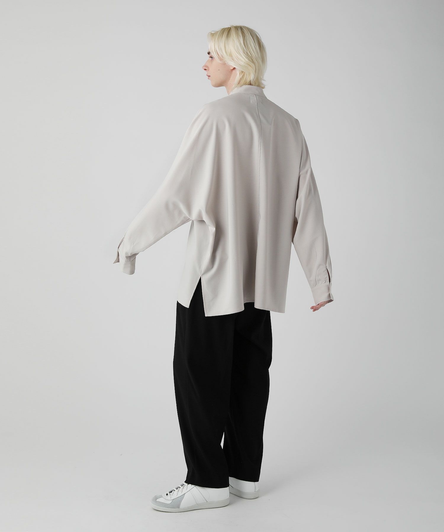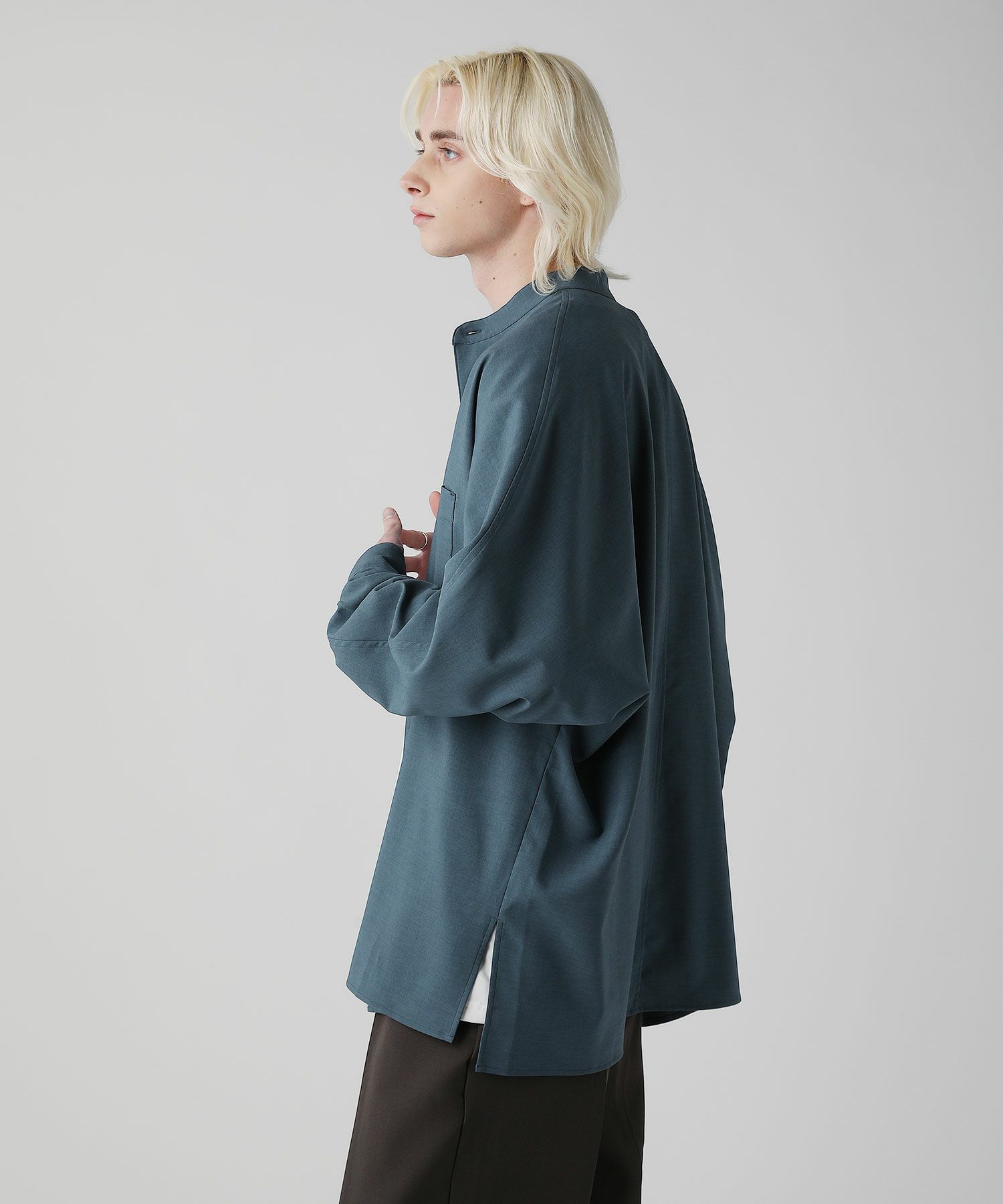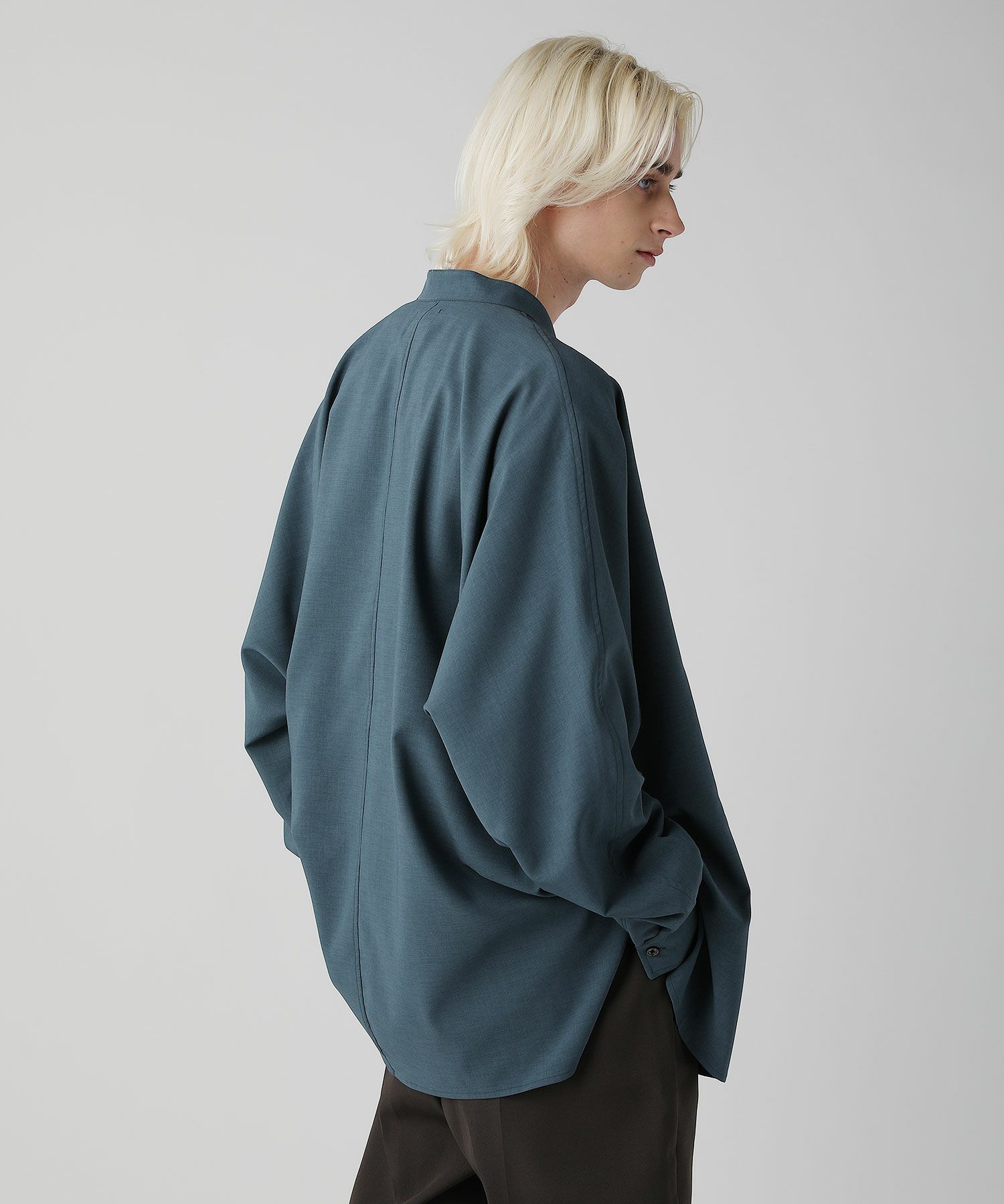 麻のようなナチュラル感とドライな風合いのリネンライクファブリックを使用したドルマンスリーブシャツ。ネック部分はバンドカラーを採用しクラシカルな印象をプラス。リラックス感のある上品なシャツはスラックスなどキレイめなボトムとのスタイリングがおすすめです。
