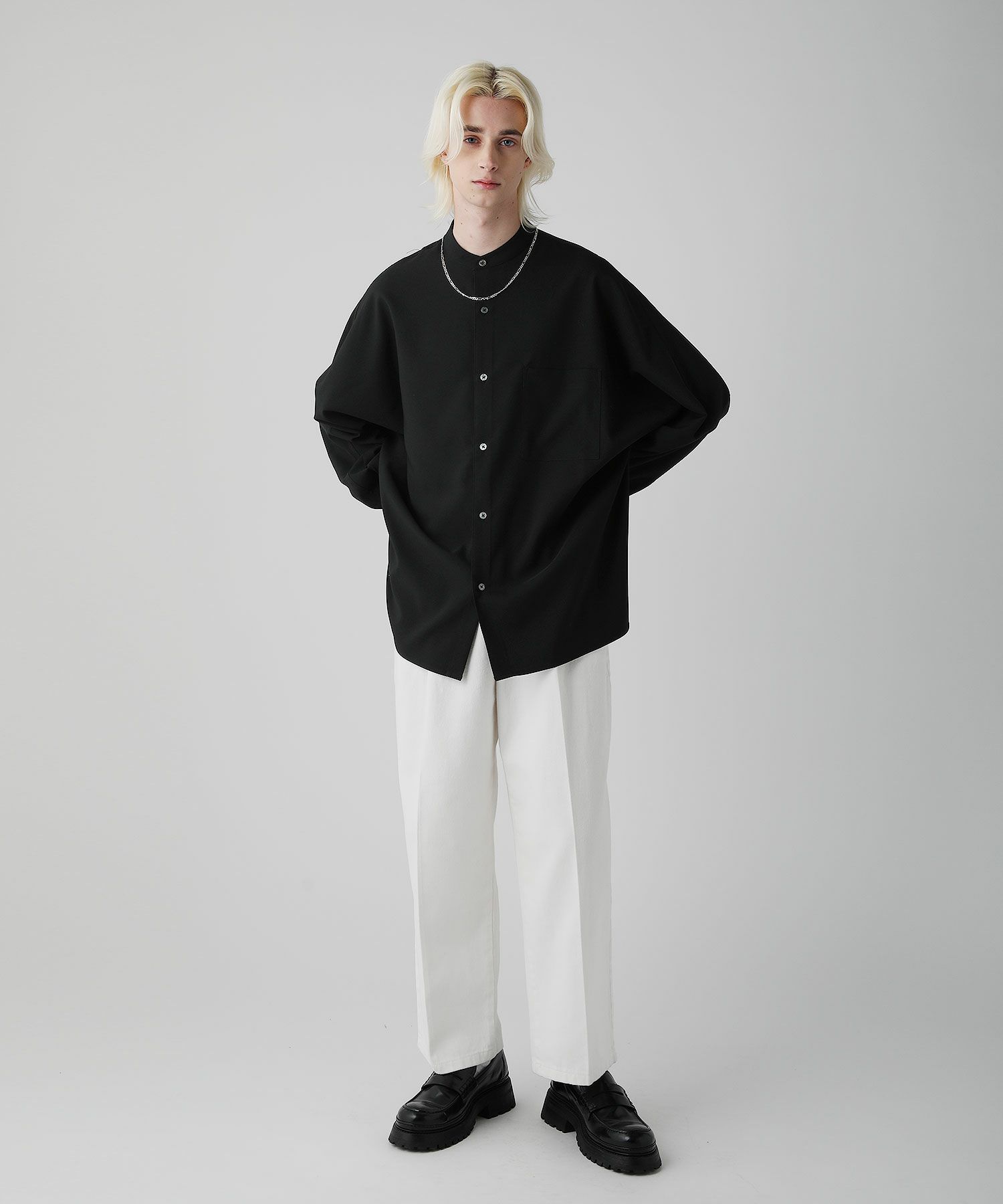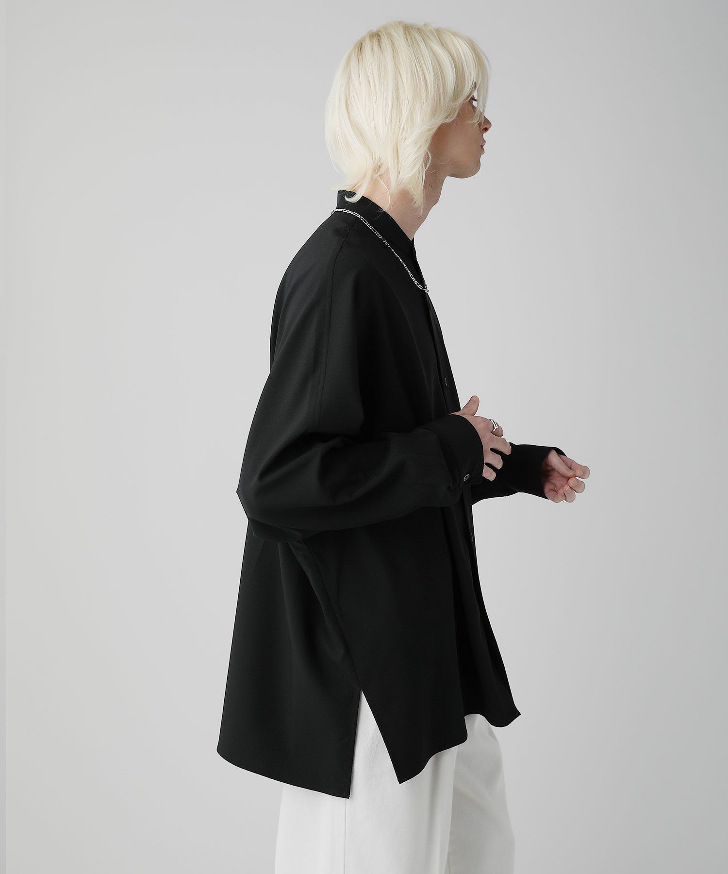 ■上品な雰囲気のバンドカラードルマンスリーブシャツ。
