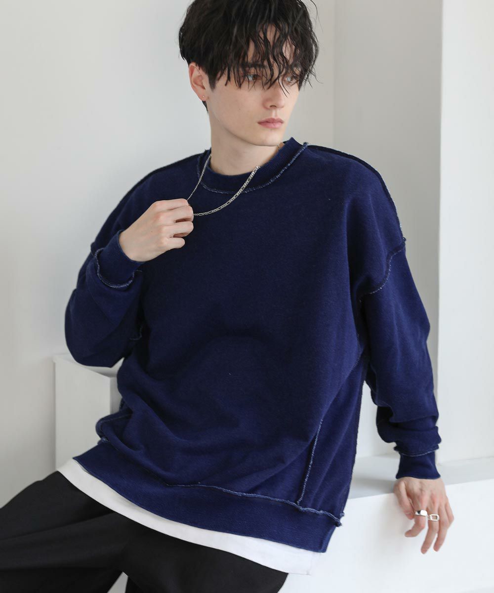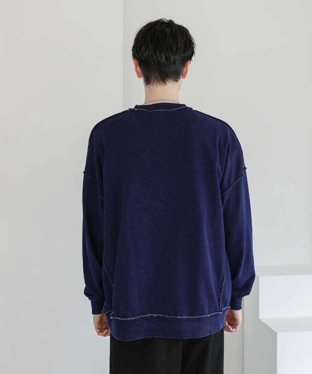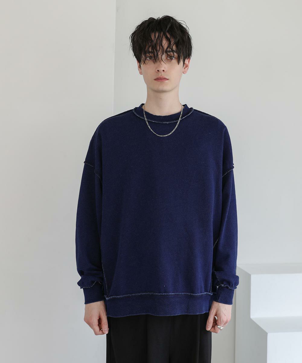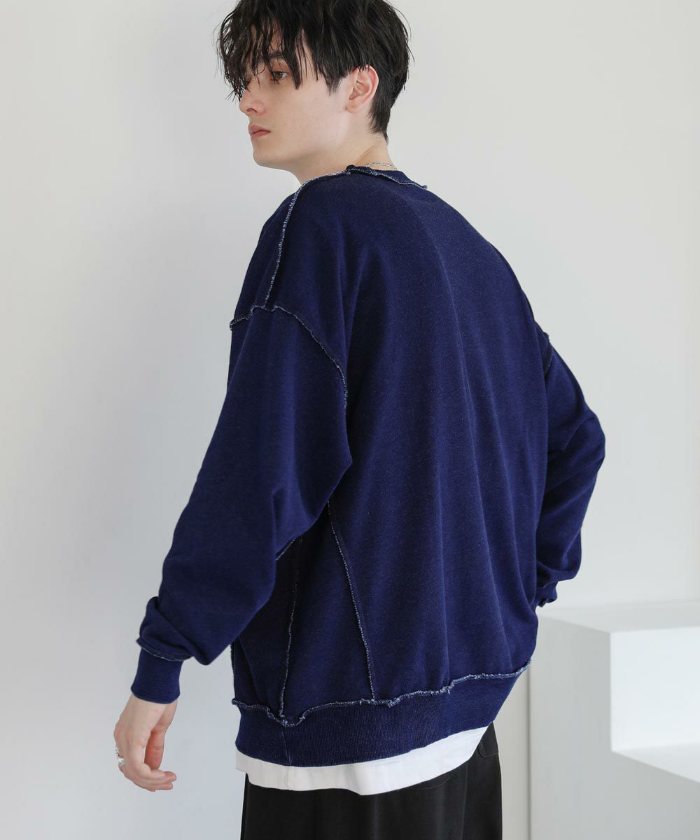 裏毛インディゴ染めアウトステッチトレーナー