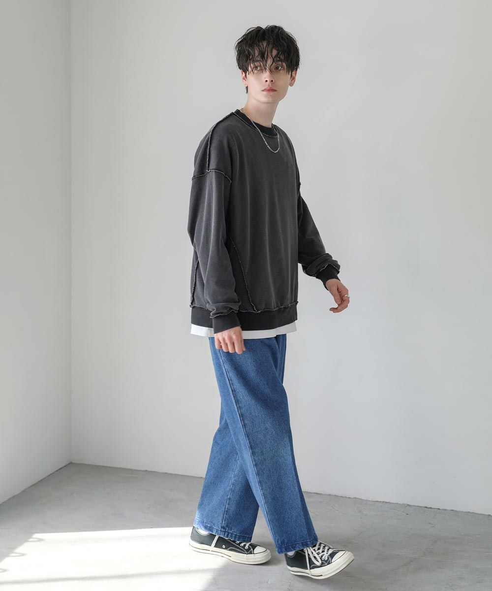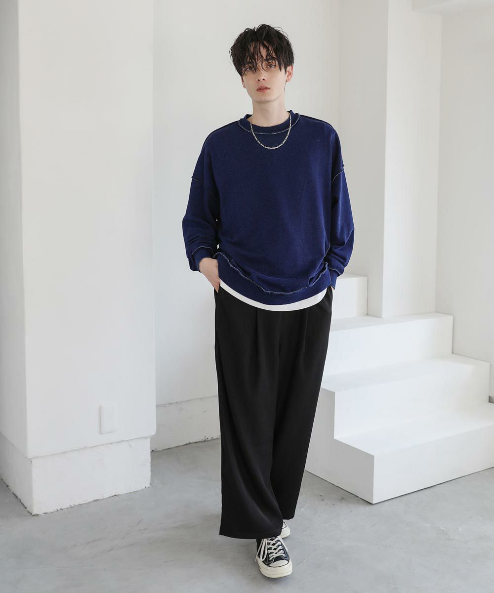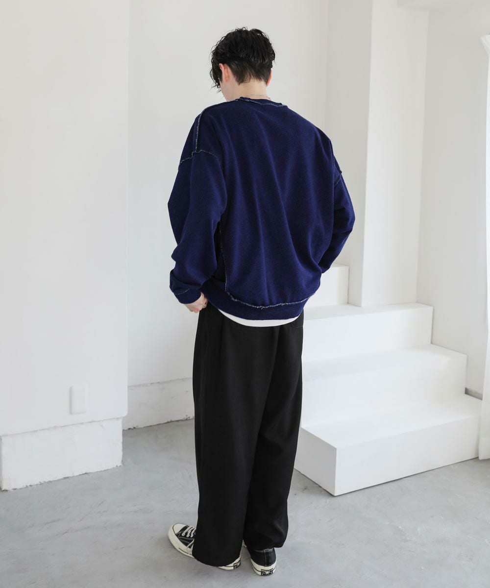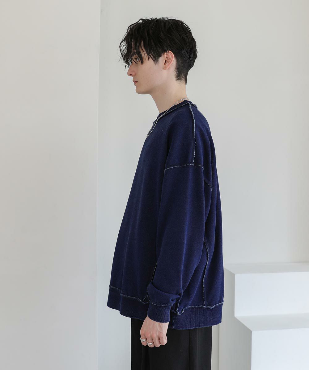 裏毛インディゴ染めアウトステッチトレーナー