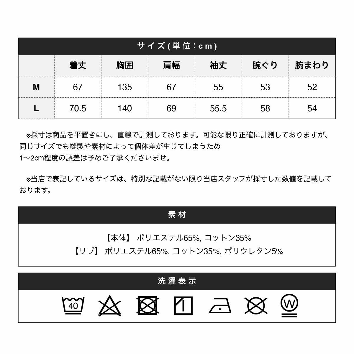 ※商品特性、縫製や素材により同サイズでも、若干の誤差が生じてしまうことを予めご了承ください。