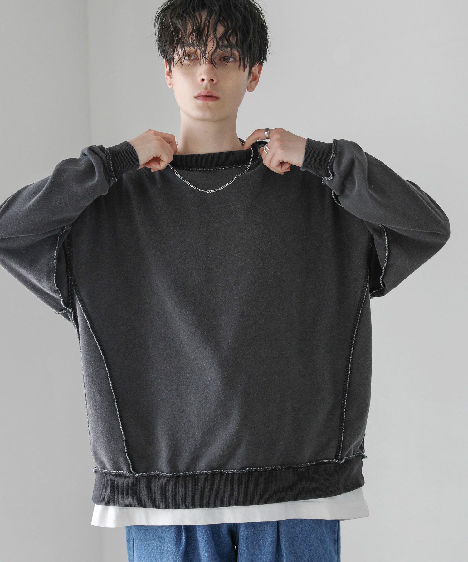3. 裏毛インディゴ染めアウトステッチトレーナー