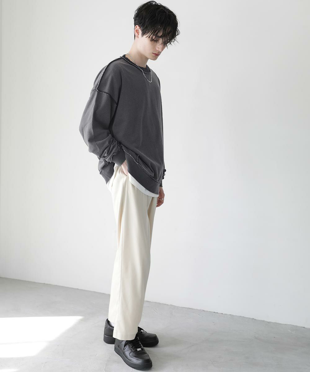 ゆったりとした絶妙なルーズさで、取り入れるだけでトレンド感のあるコーデが完成します。デニムパンツやスラックス、ワイドパンツなど合わせるボトムを選ばず着まわせるアイテムです。