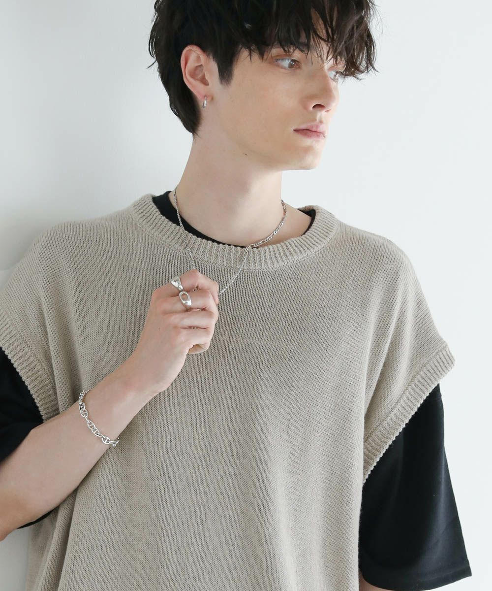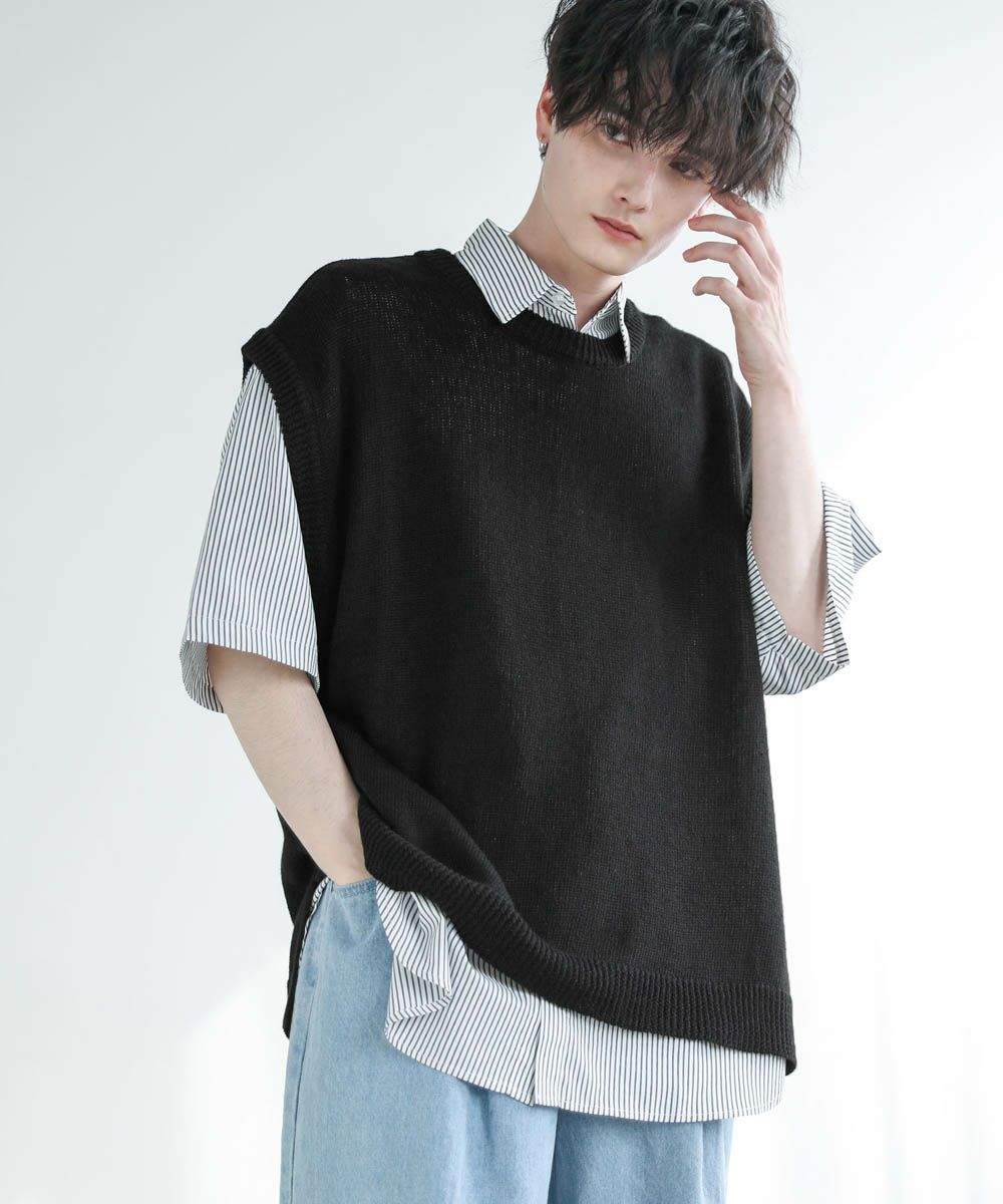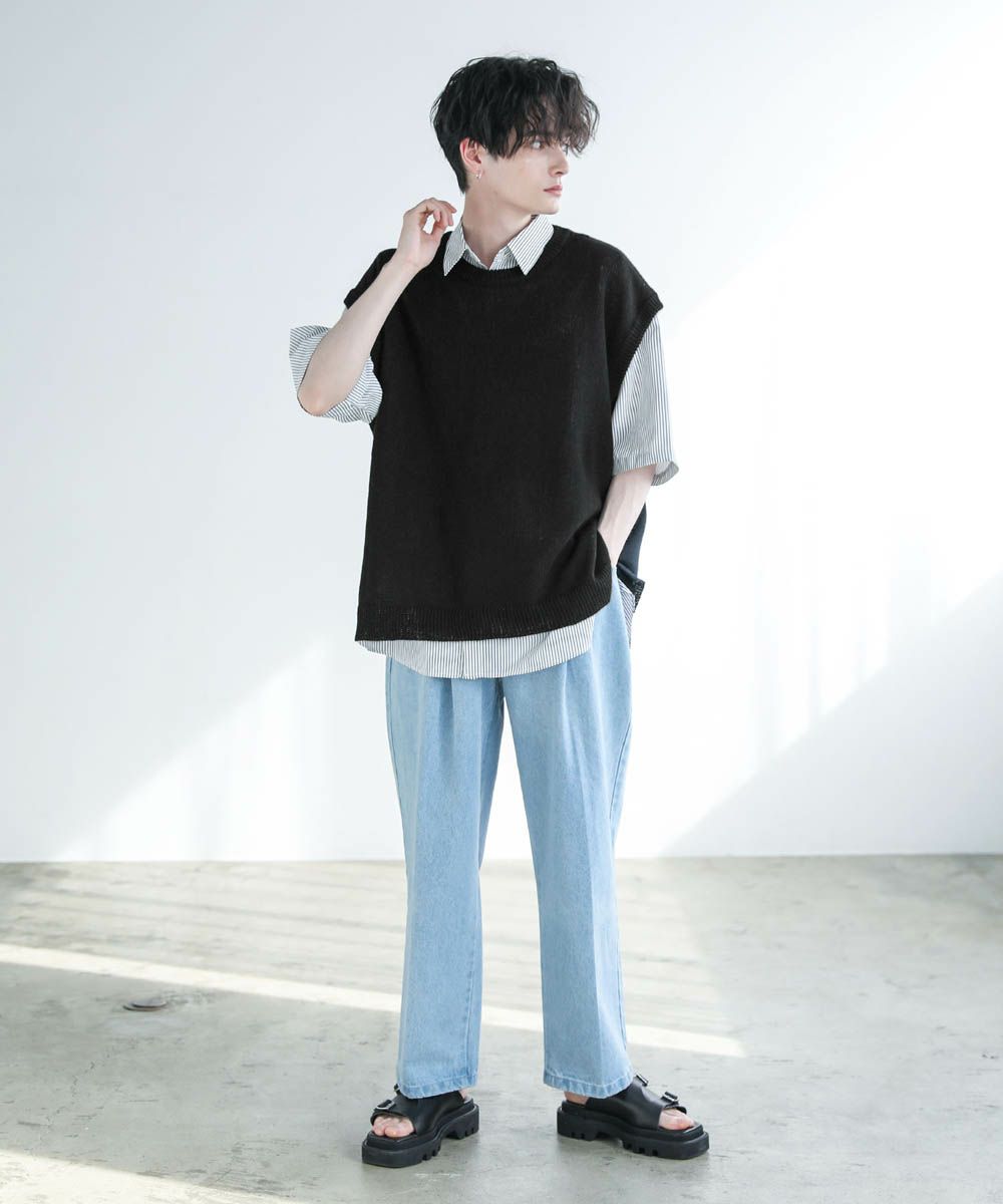 清涼感のある綿麻素材を使用したサマーニットベスト。シンプルになりがちな春夏の着こなしに変化をつけられるアイテムです。