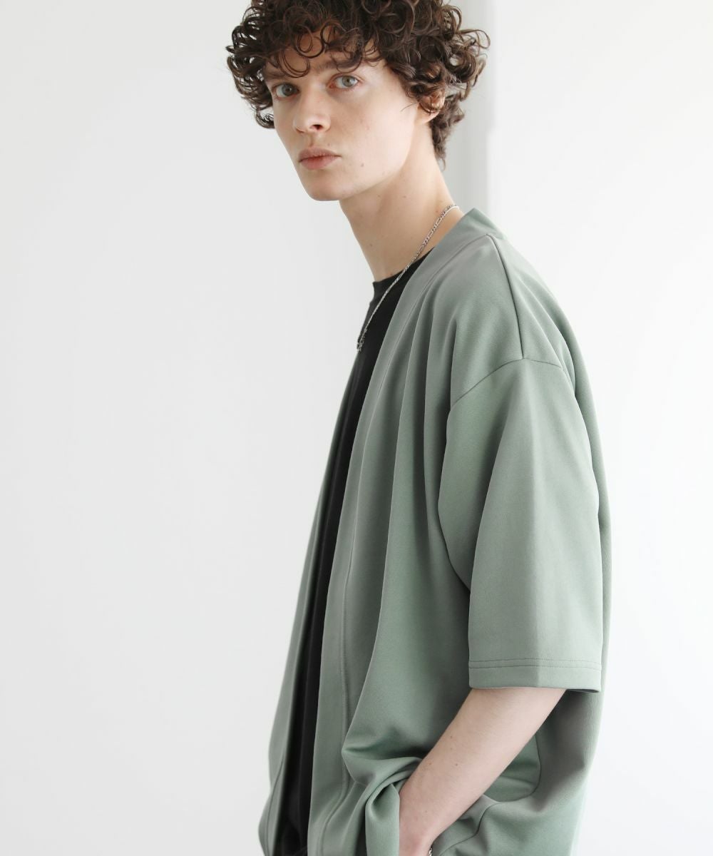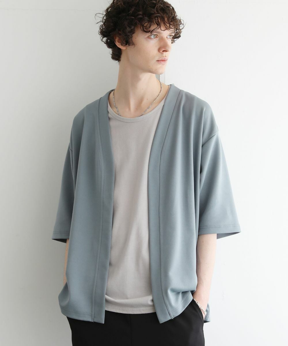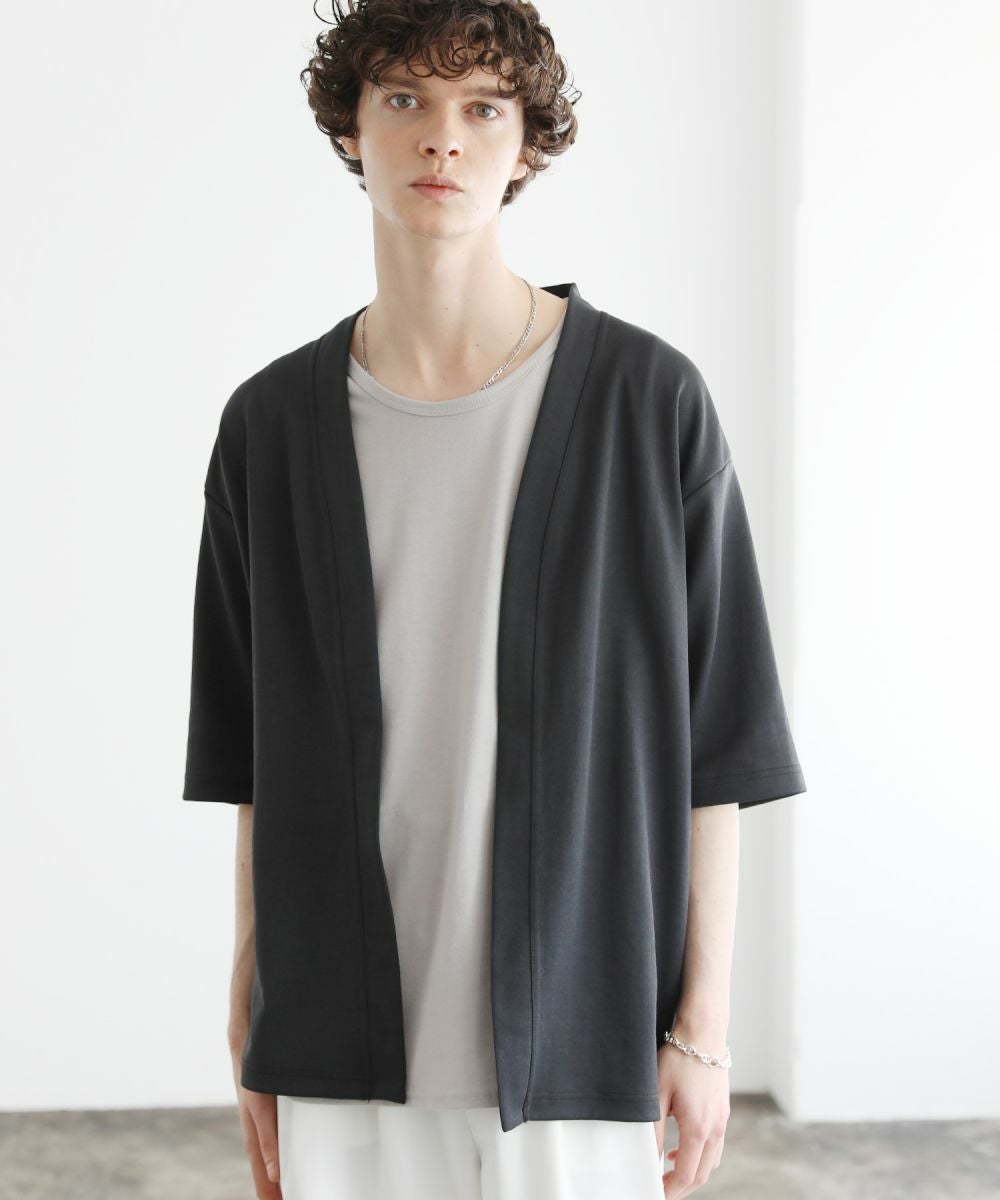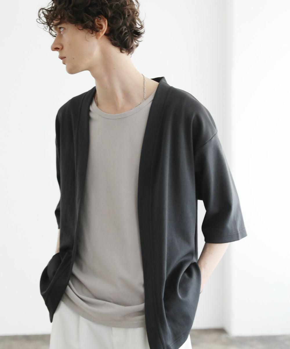 5分袖のボタンレスデザインカーディガン。無駄のないシンプルなデザインで、着回し力の高い一着に仕上げました。ゆったりとしたシルエット、ポンチ素材特有のハリ感と程よい光沢感が上品な印象を与えてくれます。さらっとした肌触りで暑い時期も快適に着用可能。春先から秋口までロングシーズン着用可能なため、一枚持っておくと重宝します。