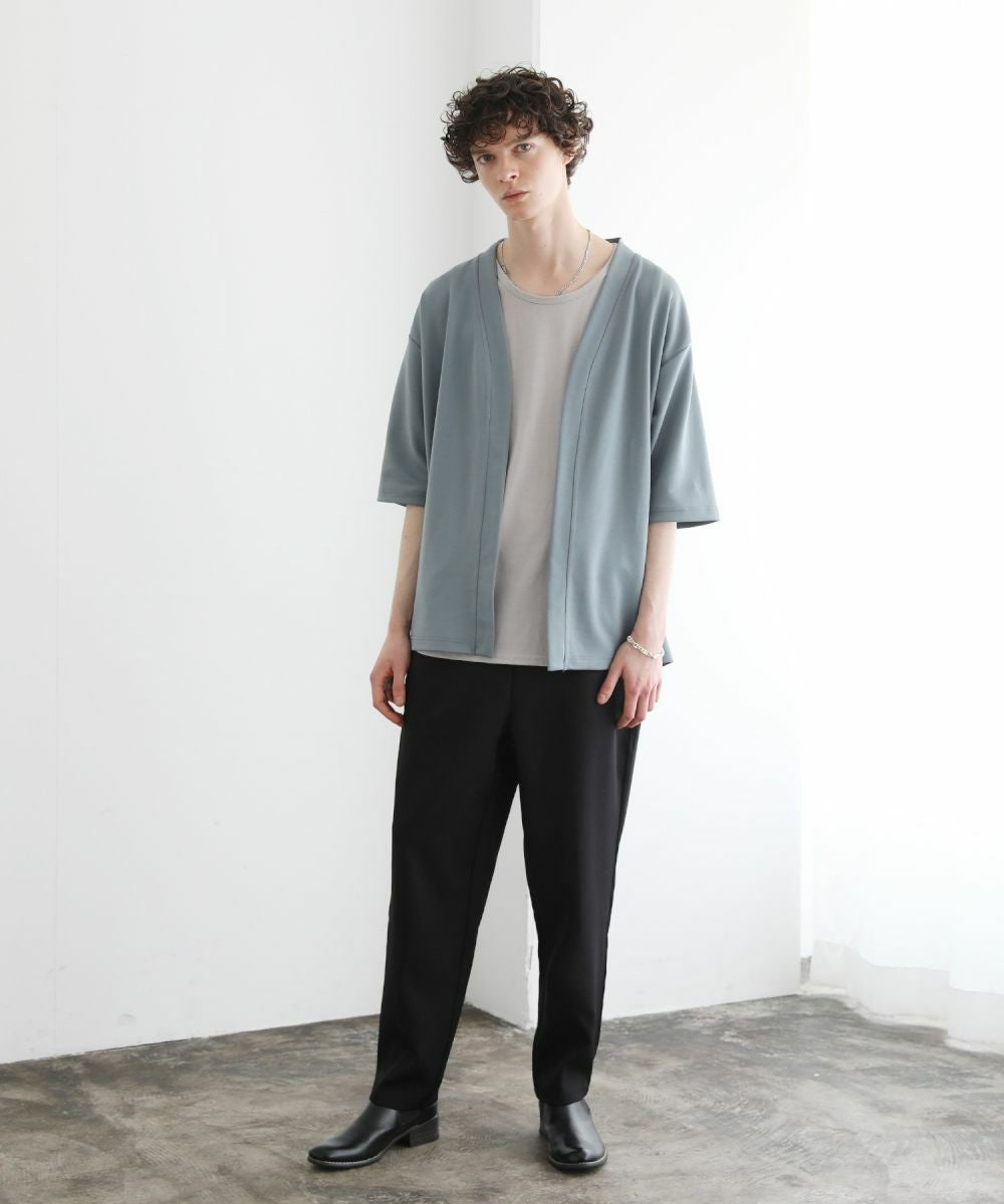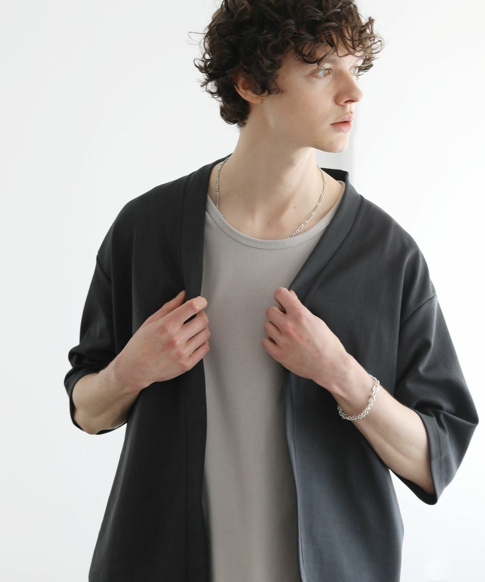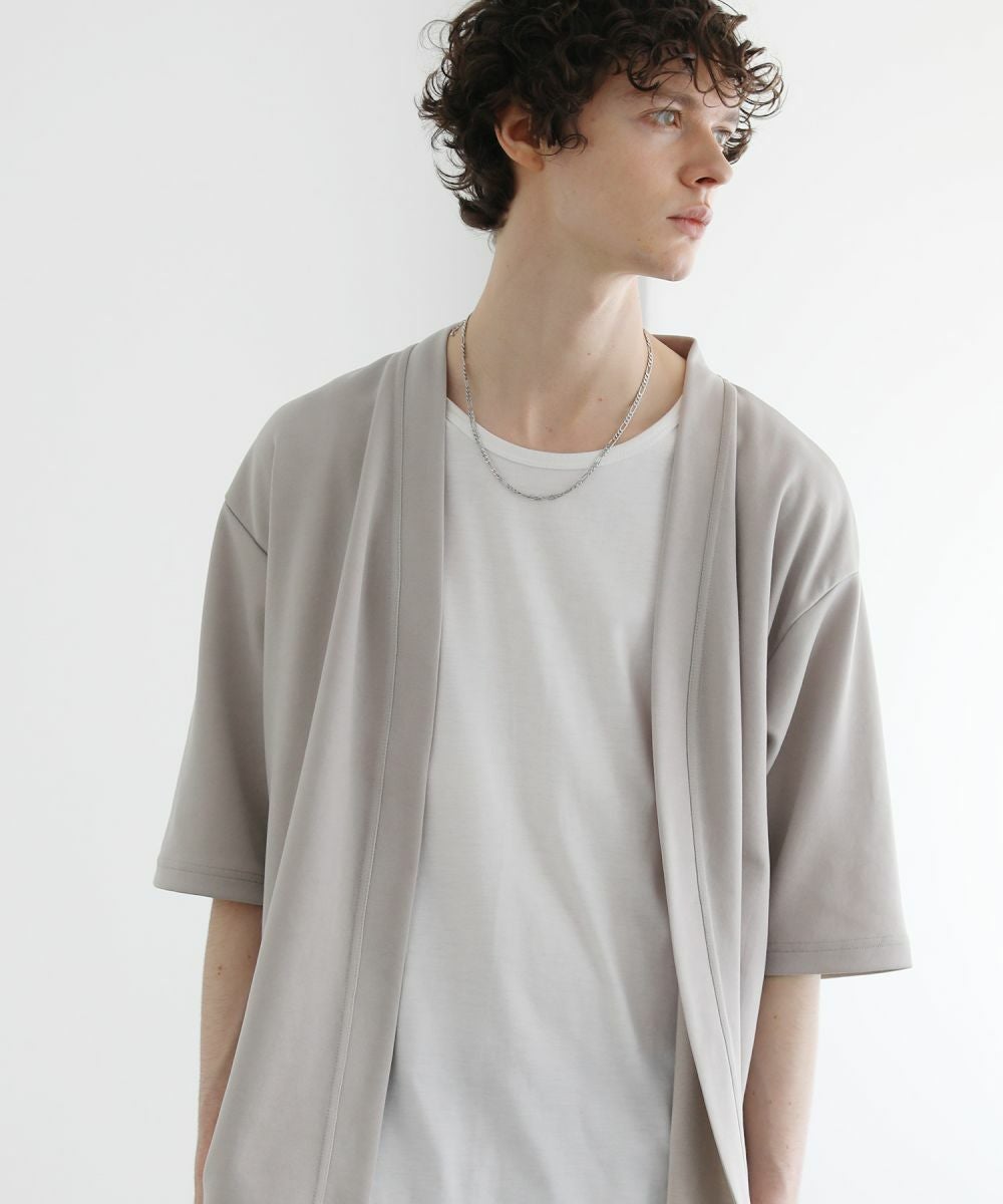 5分袖のボタンレスデザインカーディガン。無駄のないシンプルなデザインで、着回し力の高い一着に仕上げました。ゆったりとしたシルエット、ポンチ素材特有のハリ感と程よい光沢感が上品な印象を与えてくれます。さらっとした肌触りで暑い時期も快適に着用可能。春先から秋口までロングシーズン着用可能なため、一枚持っておくと重宝します。