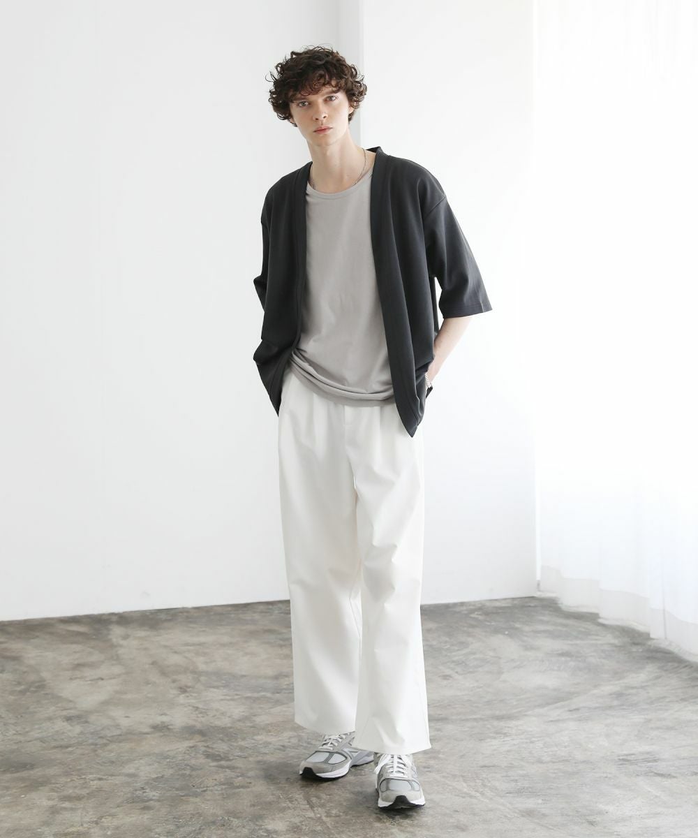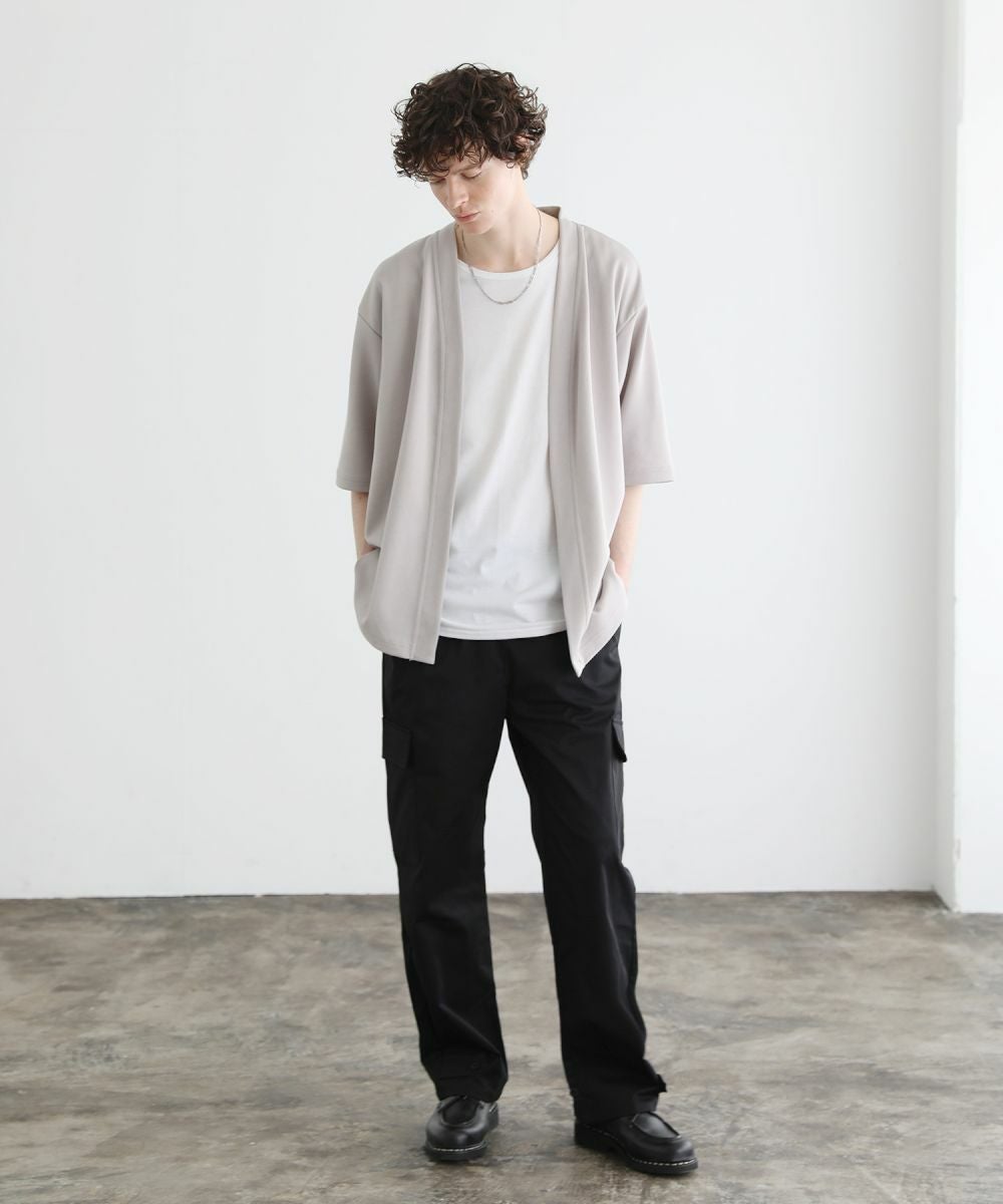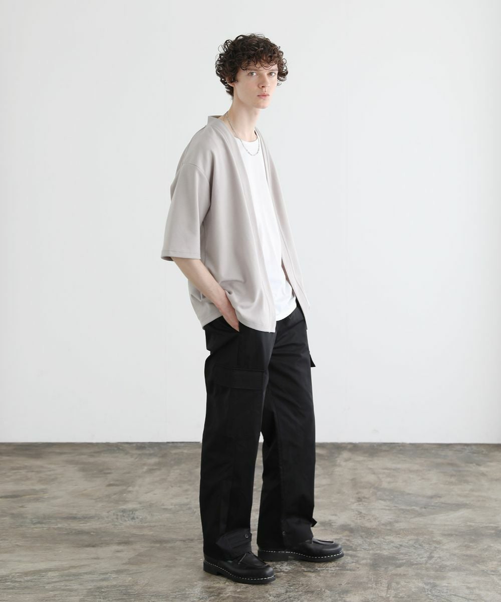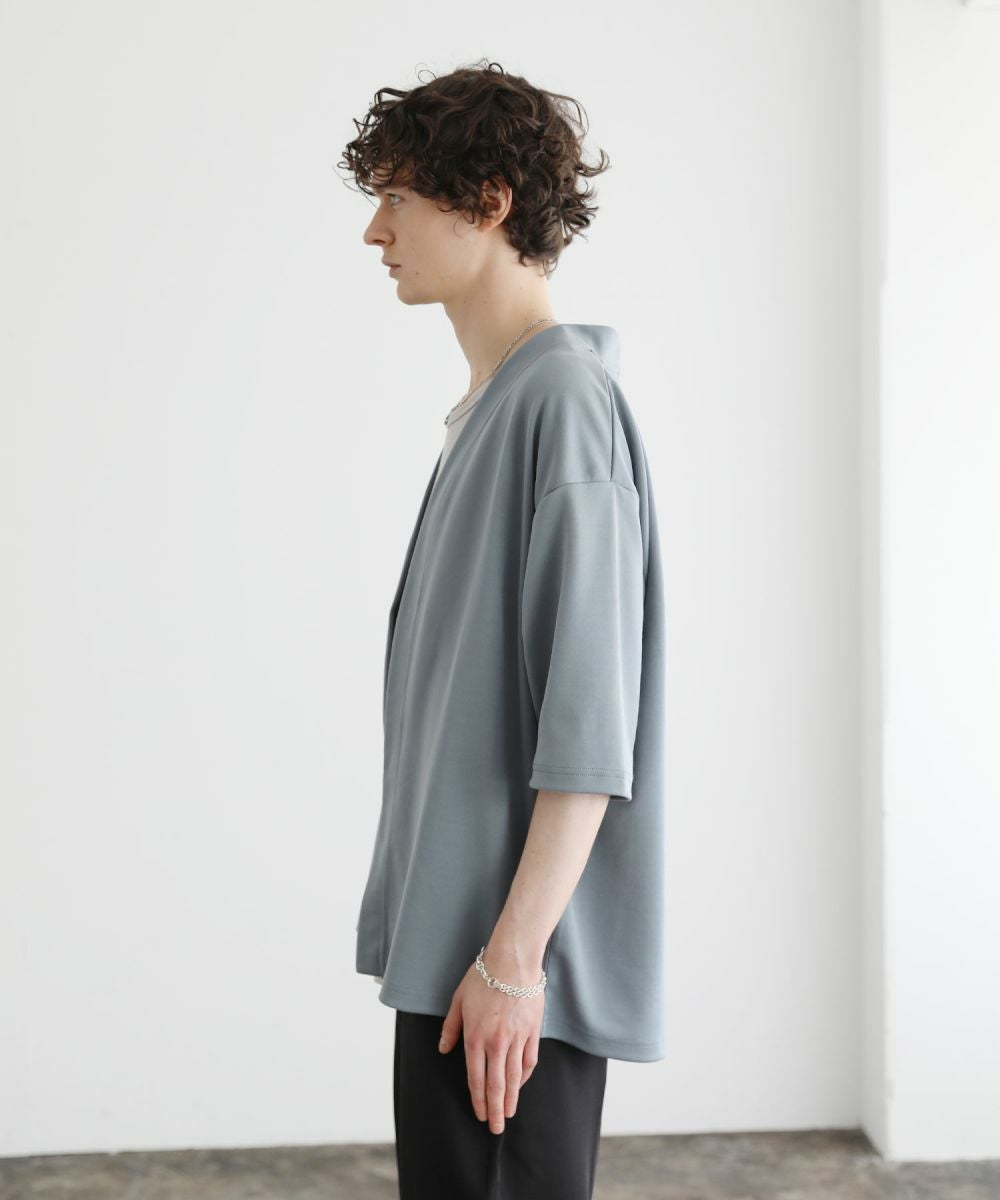 5分袖のボタンレスデザインカーディガン。無駄のないシンプルなデザインで、着回し力の高い一着に仕上げました。ゆったりとしたシルエット、ポンチ素材特有のハリ感と程よい光沢感が上品な印象を与えてくれます。さらっとした肌触りで暑い時期も快適に着用可能。春先から秋口までロングシーズン着用可能なため、一枚持っておくと重宝します。