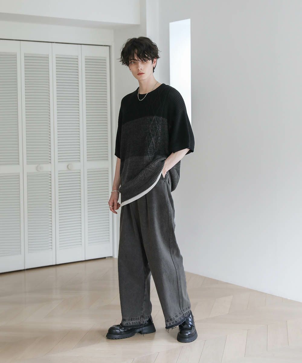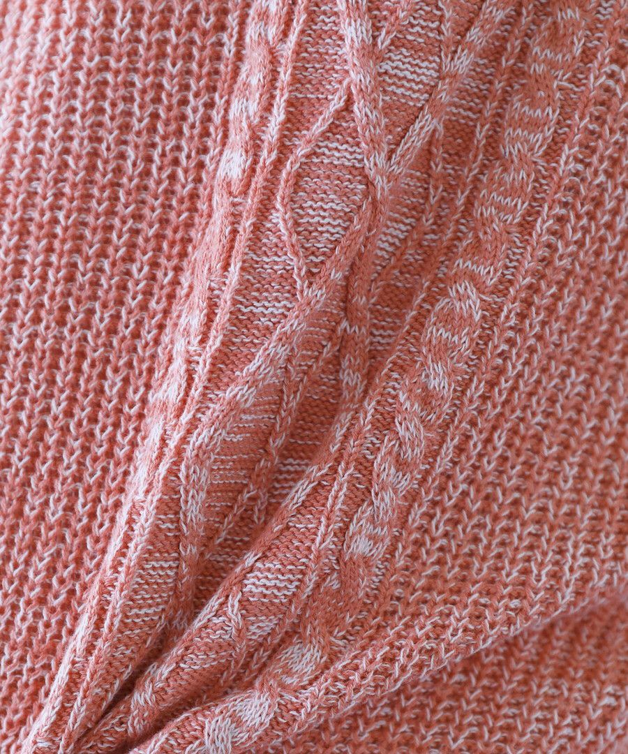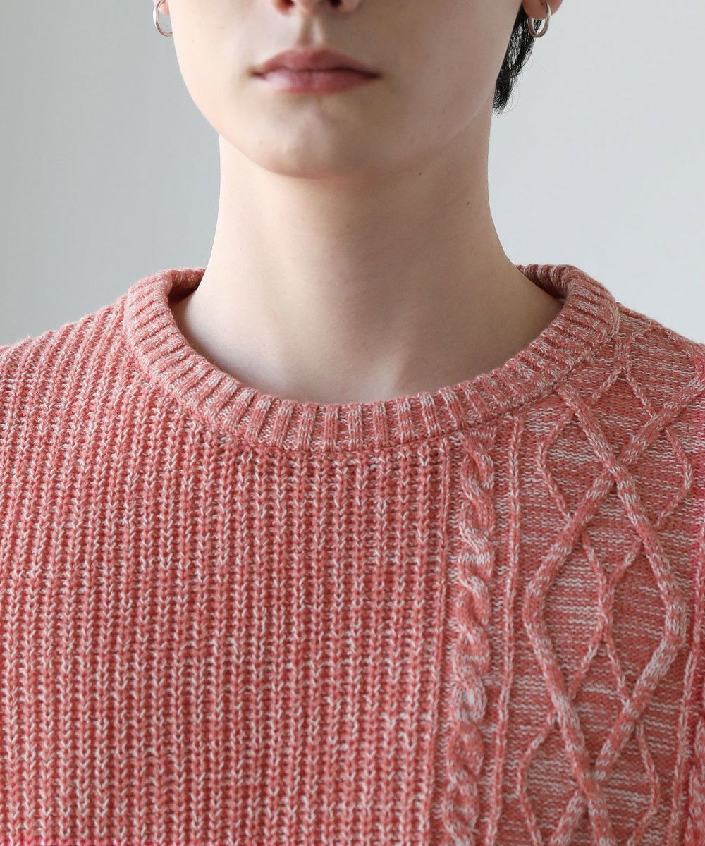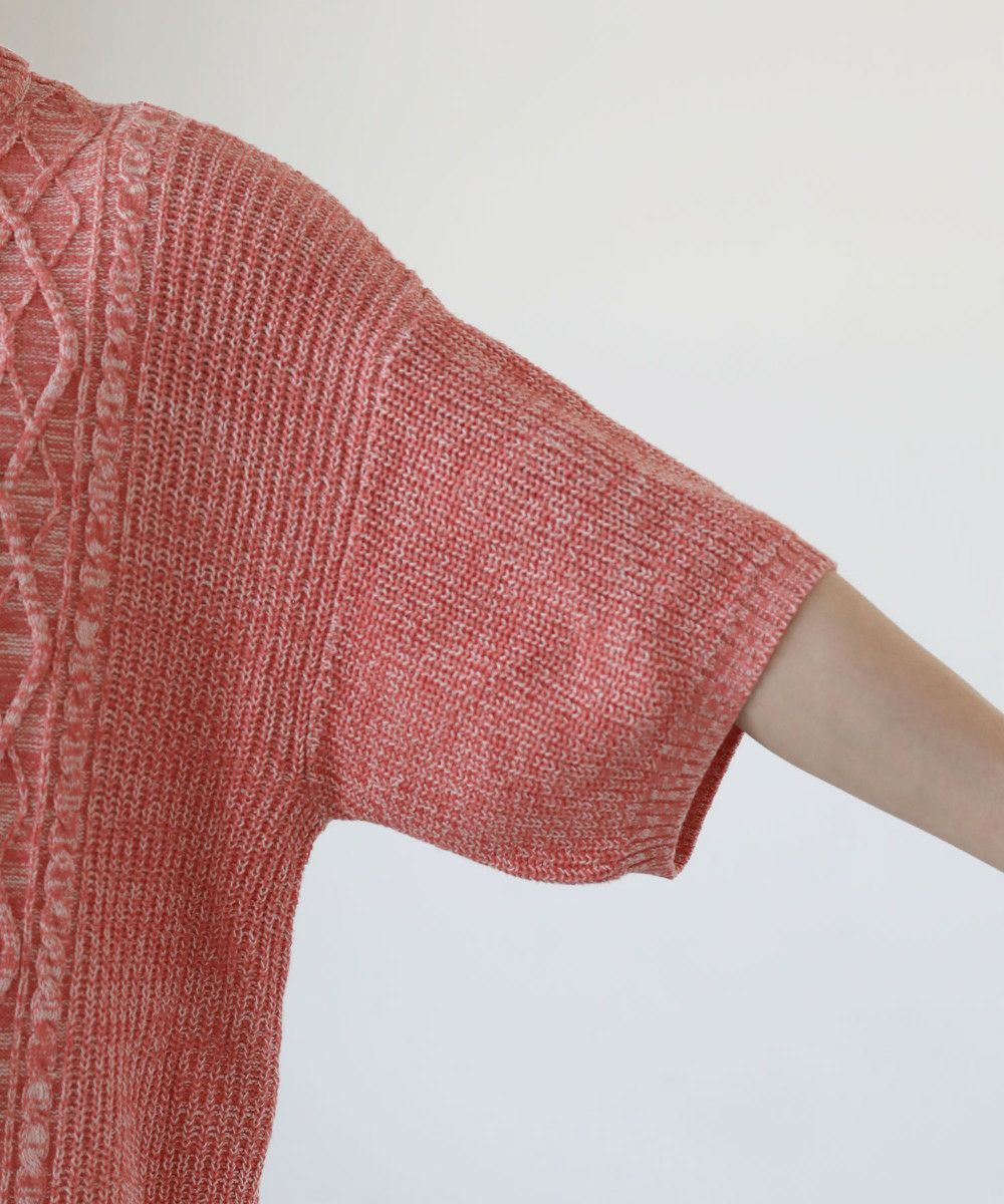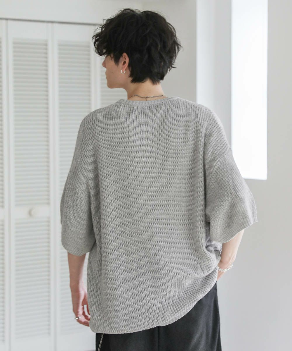 ビッグシルエットでゆったりとカジュアルに着こなせる畦編みサマーニット。ケーブル柄の切り替えがアクセントになり、1枚で存在感のあるアイテムです。肩幅、身幅に余裕を持たせたオーバーサイズで、合わせるだけでトレンド感のあるコーデに。