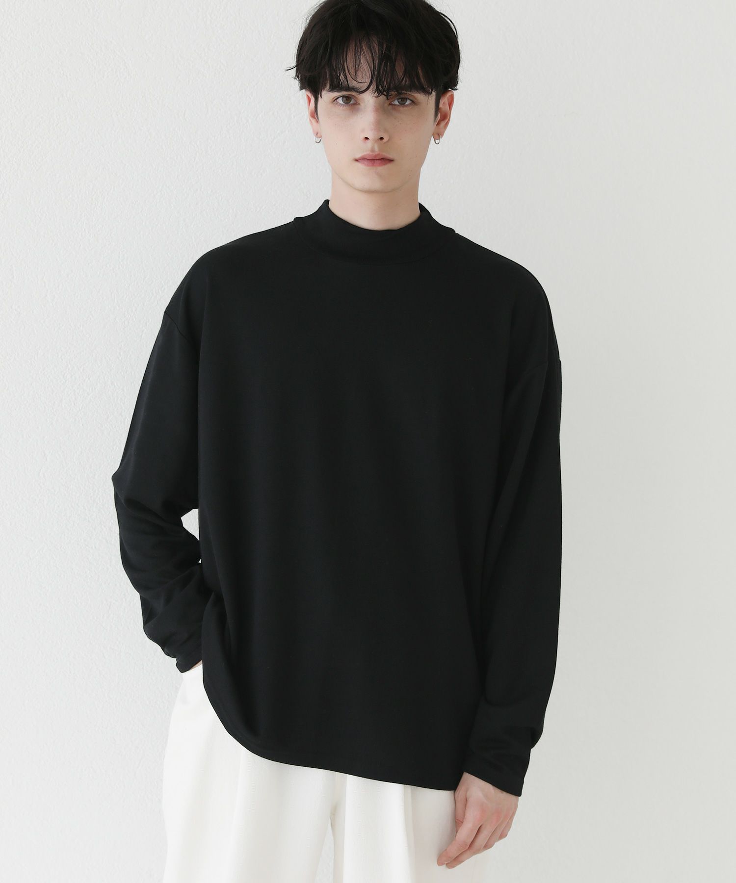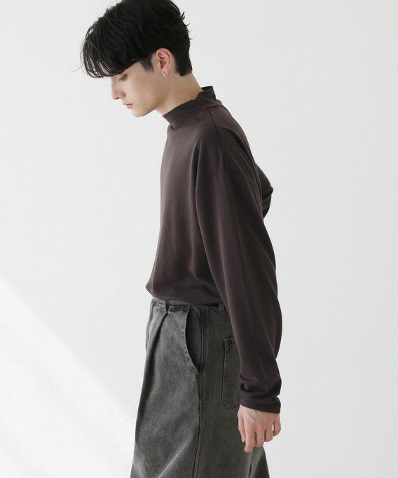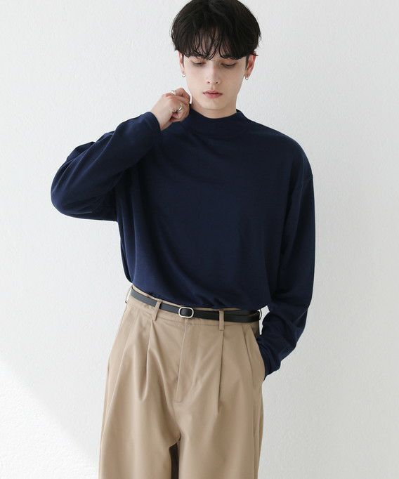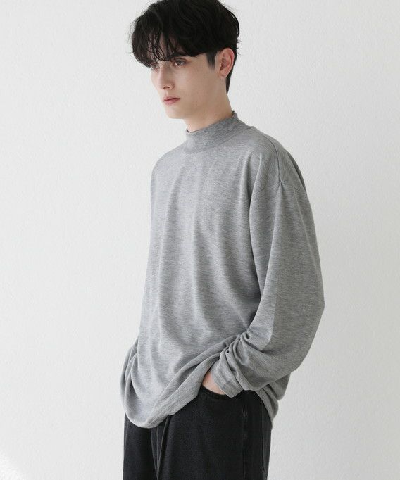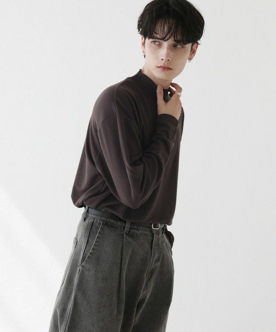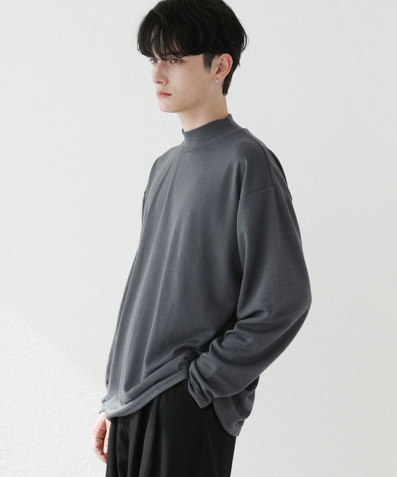 程よいゆとりを持たせたサイズ感で、着こなしの幅を広げるモックネックプルオーバー。首元は折り返しがないモックネック仕様。インナーにも使いやすく、アウターを重ねた際も首周りがごわつかずにバランスをとってくれます。厚すぎず薄すぎない生地感で、季節の変わり目の重ね着に重宝する一着です。