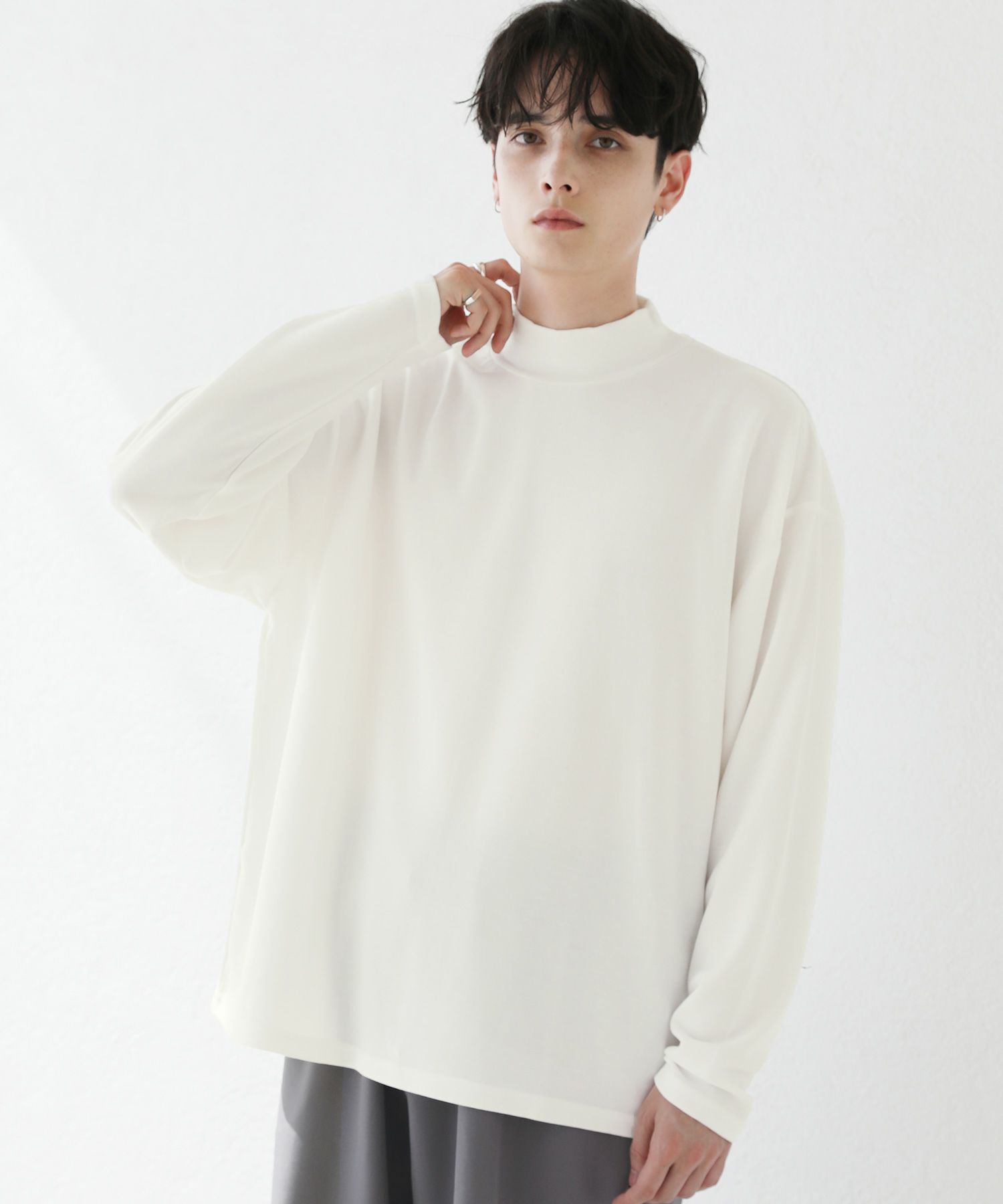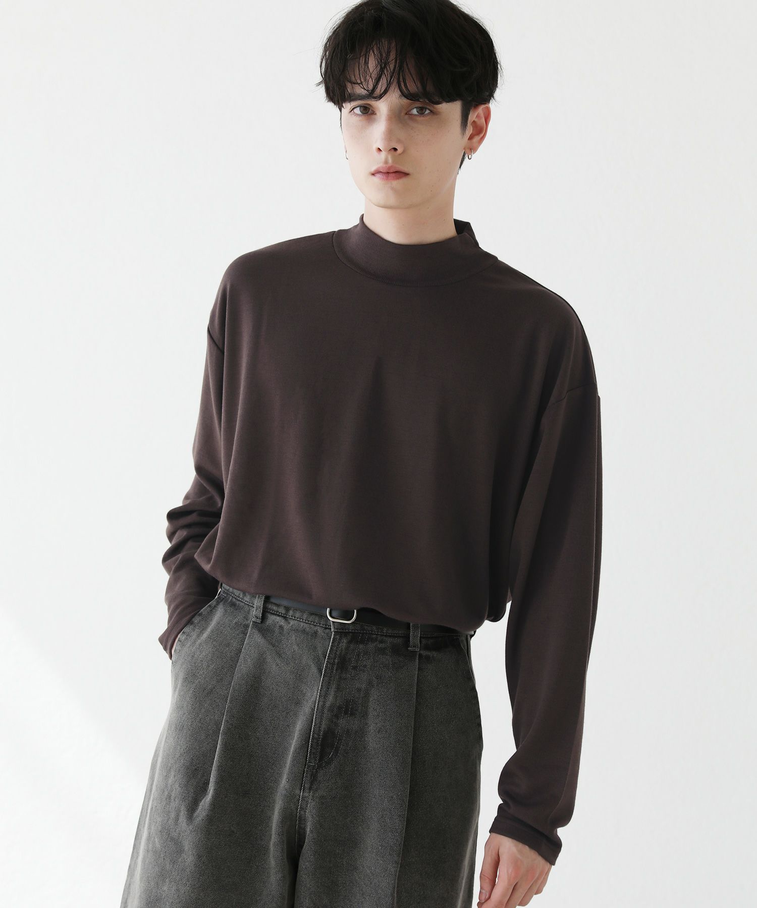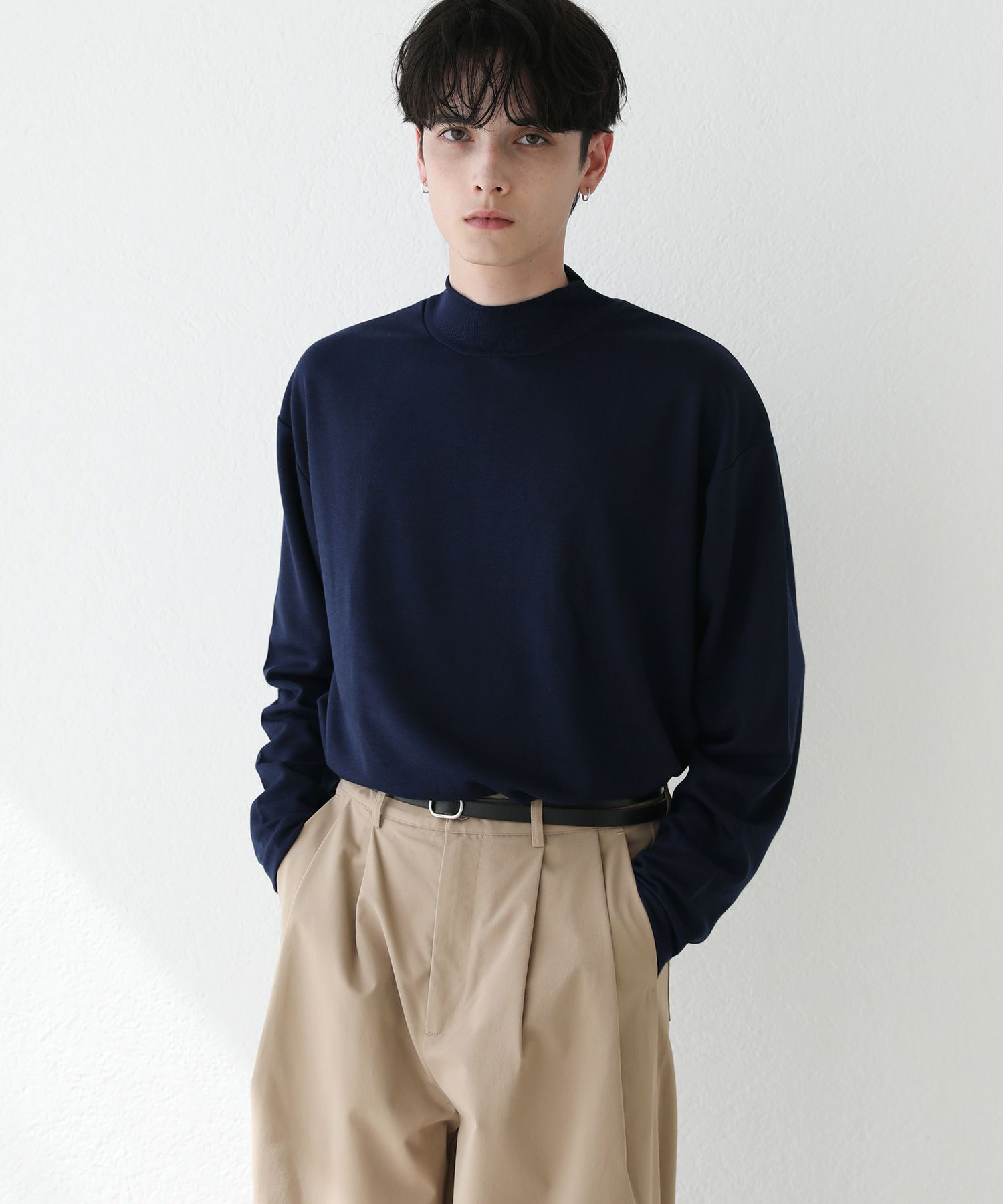 程よいゆとりを持たせたサイズ感で、着こなしの幅を広げるモックネックプルオーバー。首元は折り返しがないモックネック仕様。インナーにも使いやすく、アウターを重ねた際も首周りがごわつかずにバランスをとってくれます。厚すぎず薄すぎない生地感で、季節の変わり目の重ね着に重宝する一着です。