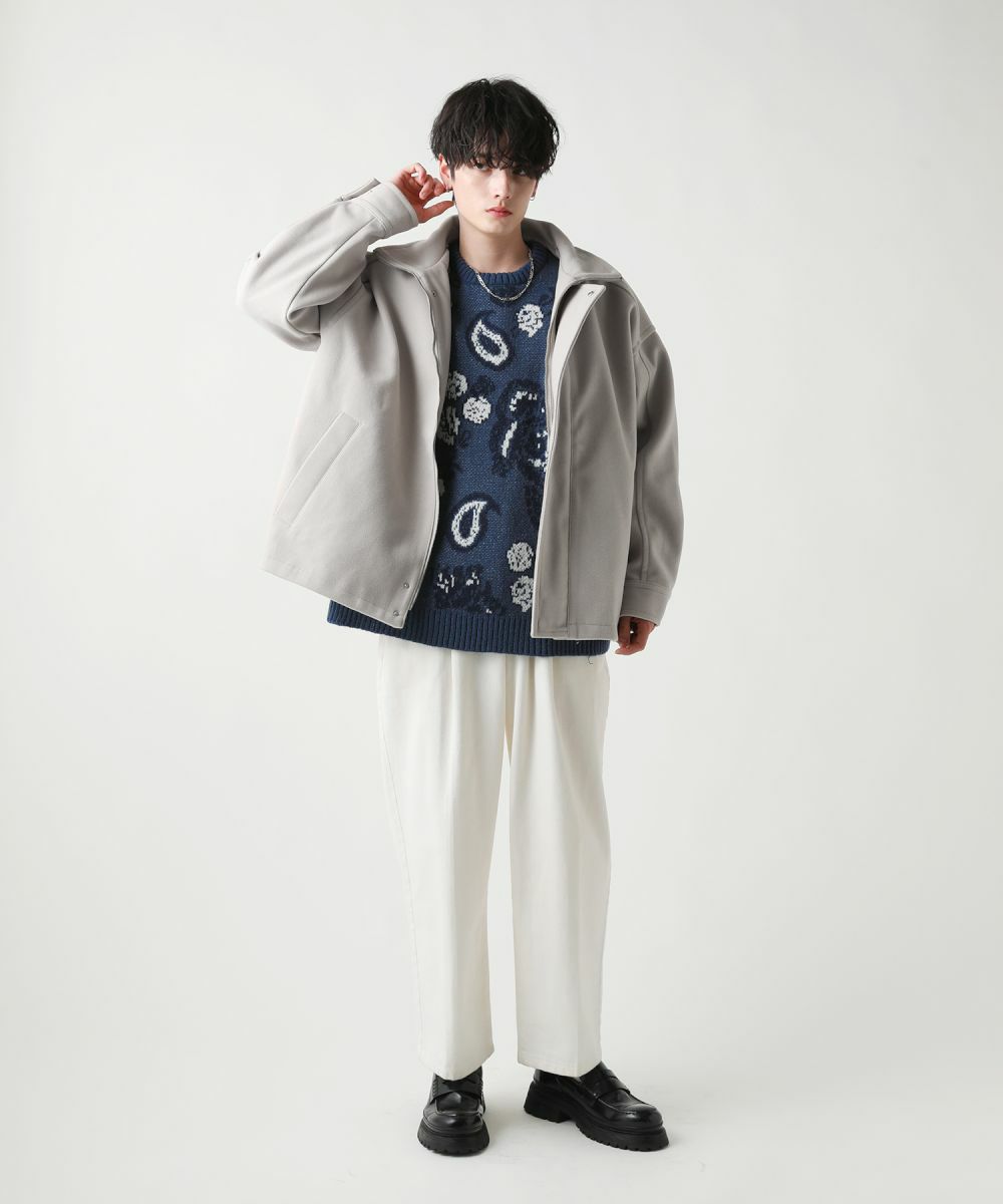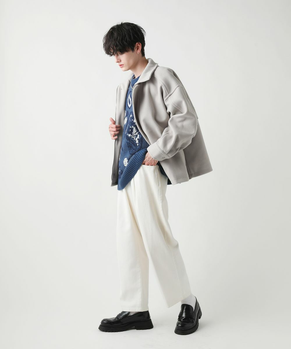 存在感のあるデザインのため、シンプルになりがちな秋冬のコーデにアクセントを与える一着。スラックスやワイドパンツなどシンプルなボトムと合わせるだけで着こなしが決まります。