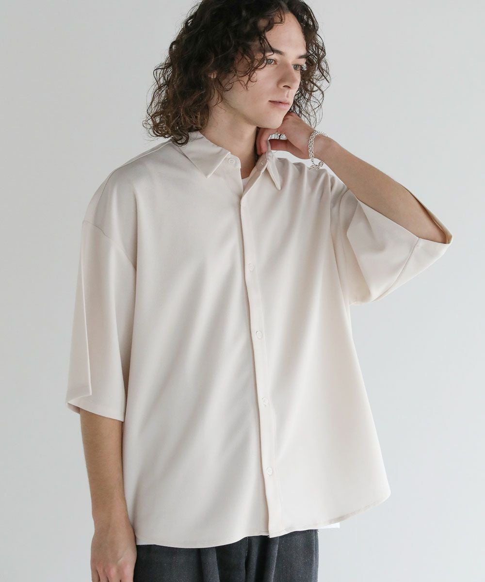Buyer's select UVカット梨地オーバーサイズレギュラーカラー5分袖シャツ