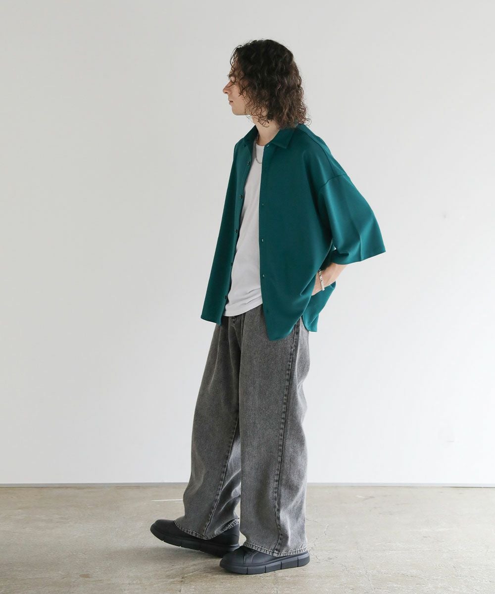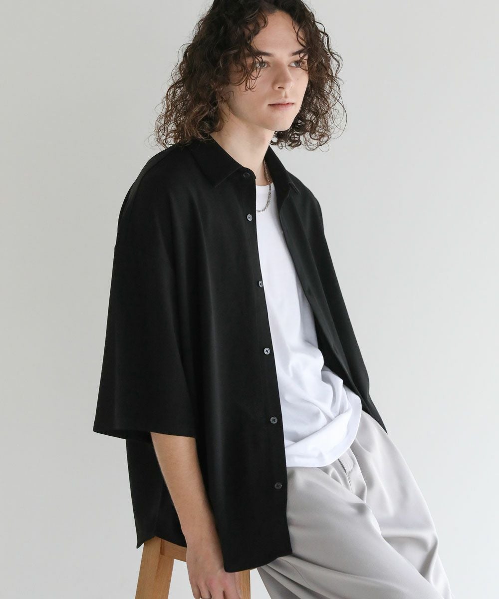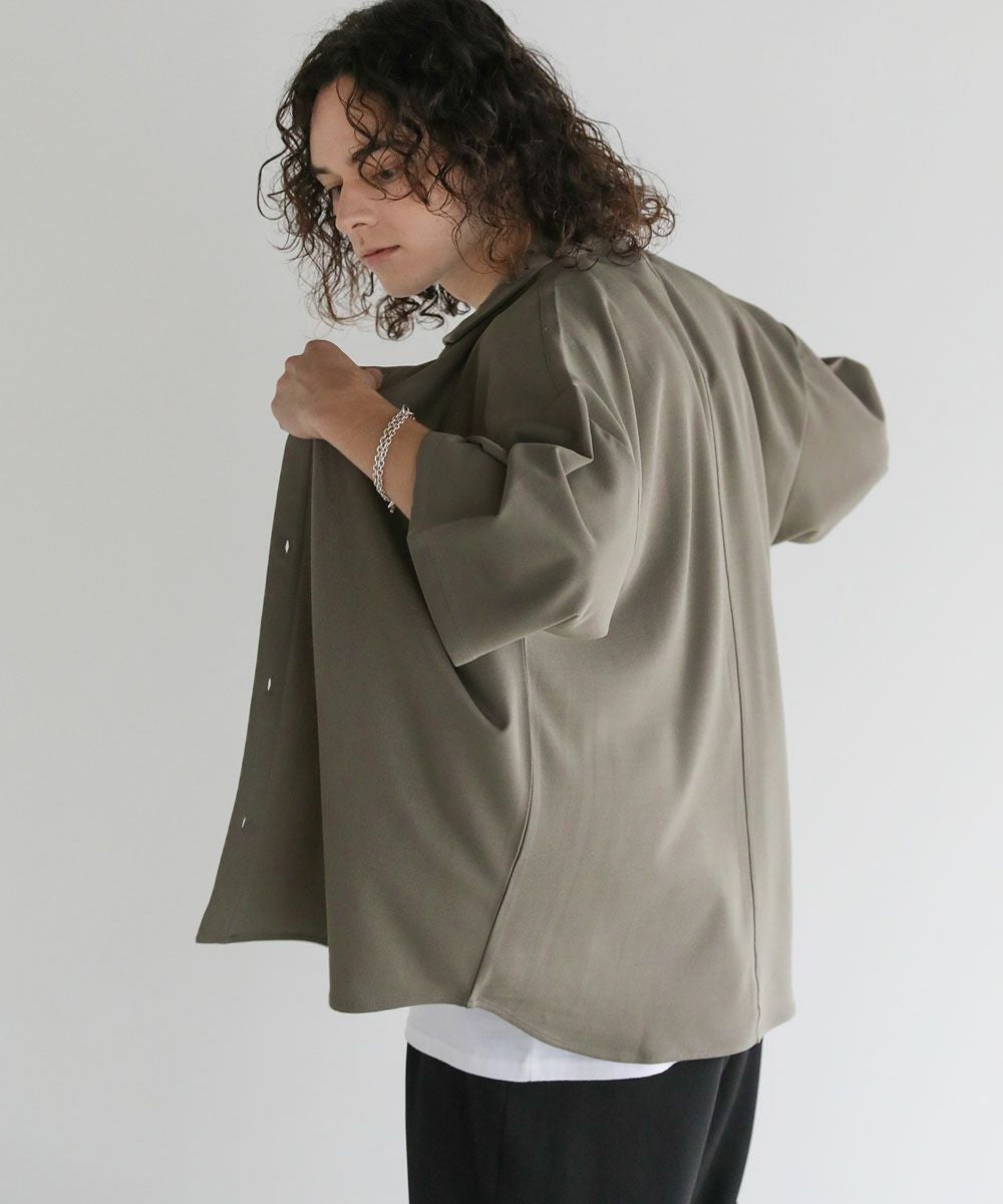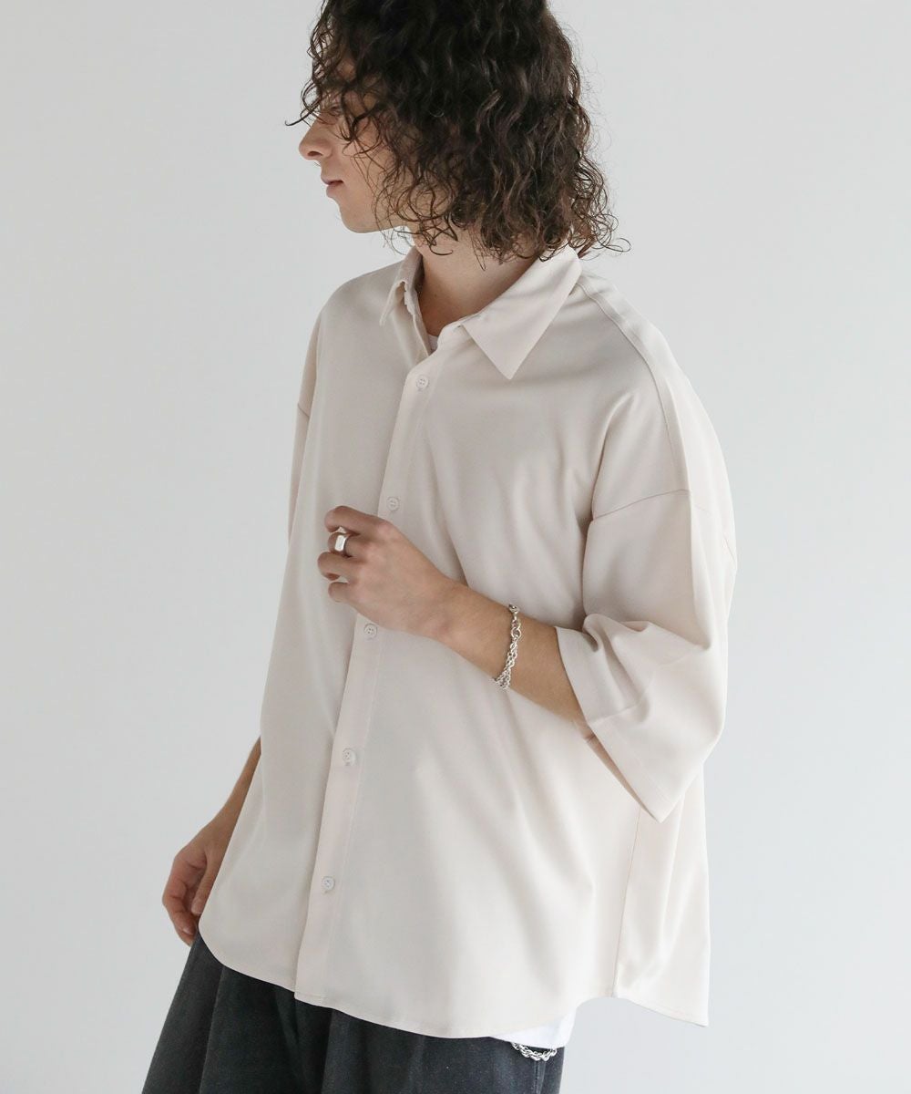 3. UVカット梨地オーバーサイズレギュラーカラー5分袖シャツ