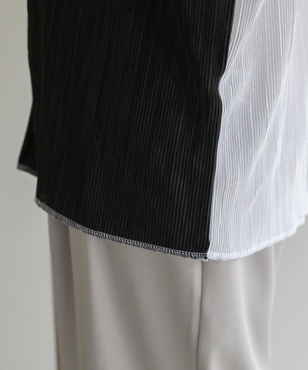 コーディネートのしやすいシンプルなアイテムながら、プリーツの立体感がアクセントを加えてくれます。デニムパンツやスラックス、ワイドパンツなど合わせるボトムを選ばず、さまざまなスタイルをお楽しみいただけます。