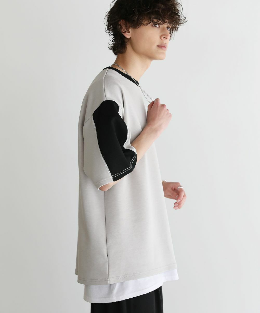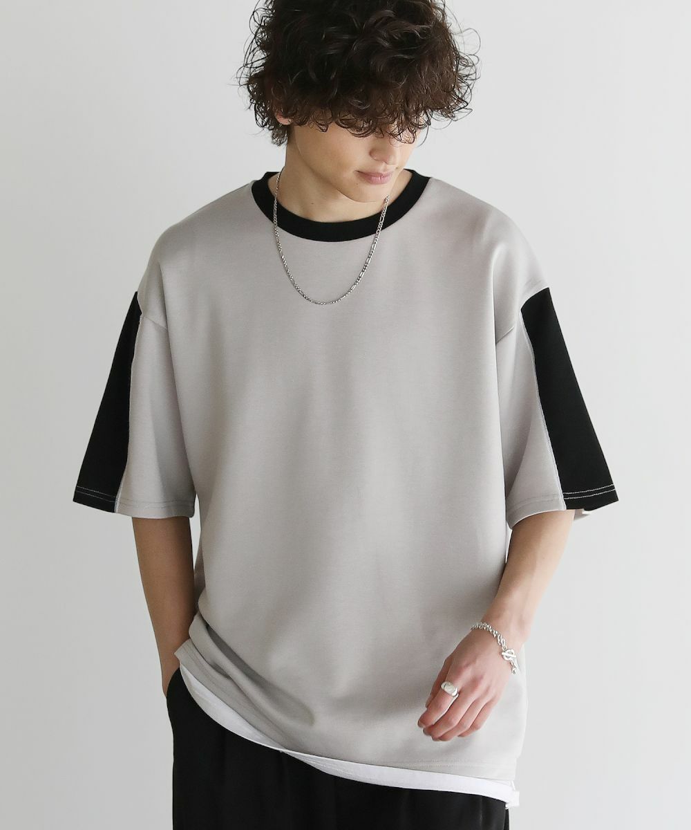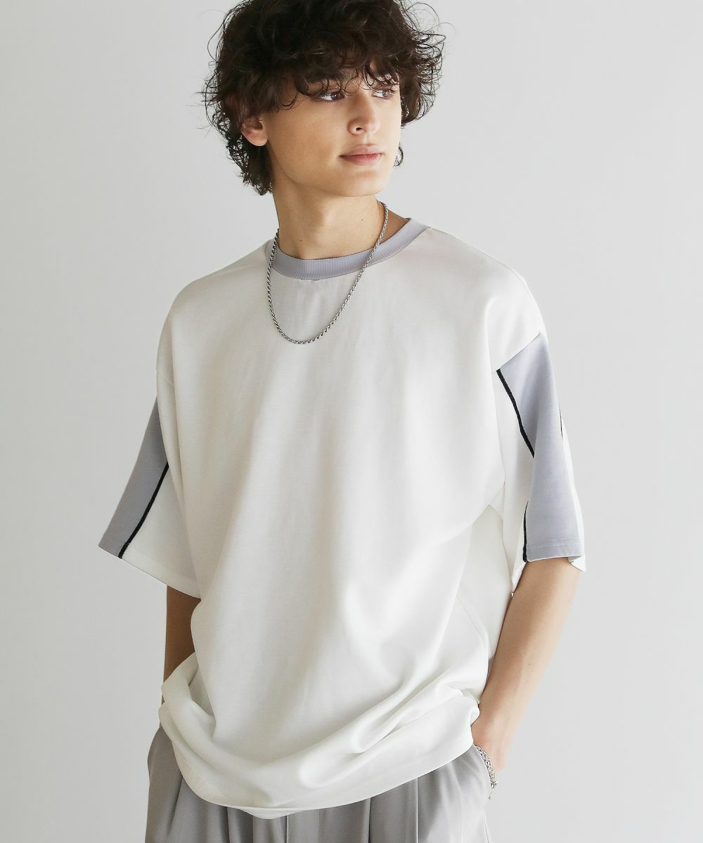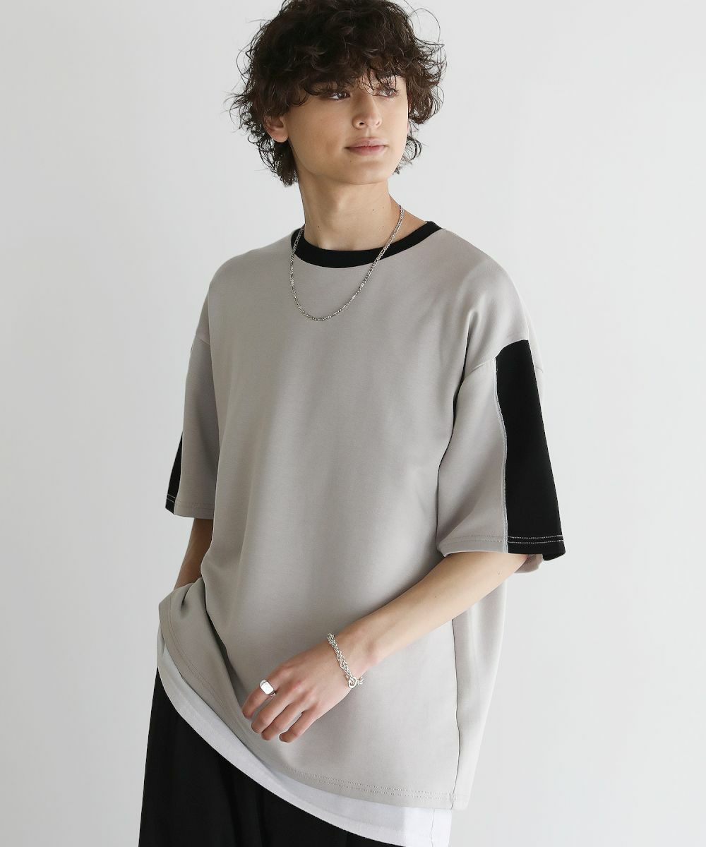 大胆に色を切り替えた袖が目を引く半袖Tシャツ。とろみのある生地が動くたびに揺れ動き、リラックスしたシルエットを生み出します。ストレッチ性がありラクに着られるポンチ素材に、接触冷感加工を施しました。ひんやりと感じる生地が心地良く、汗を吸い取り素早く発散するため夏場もベタつくことなくさらりとした着心地をキープ。暑い日に着たいマストアイテムです。