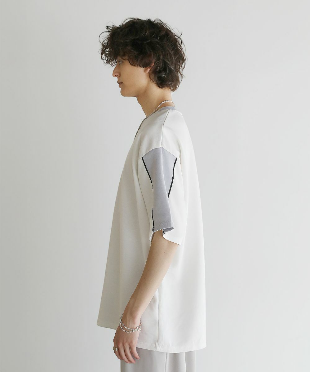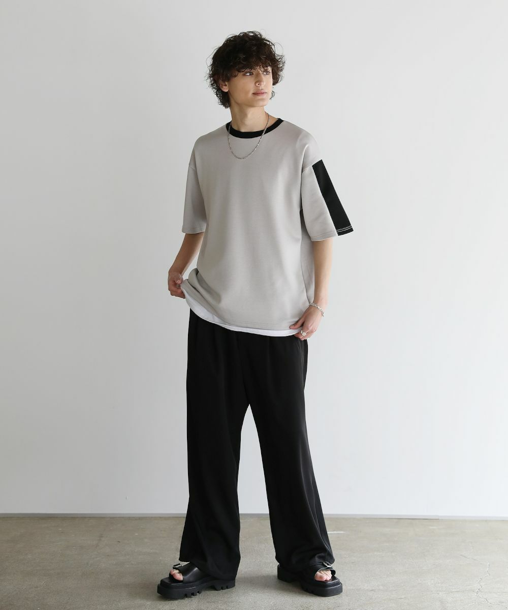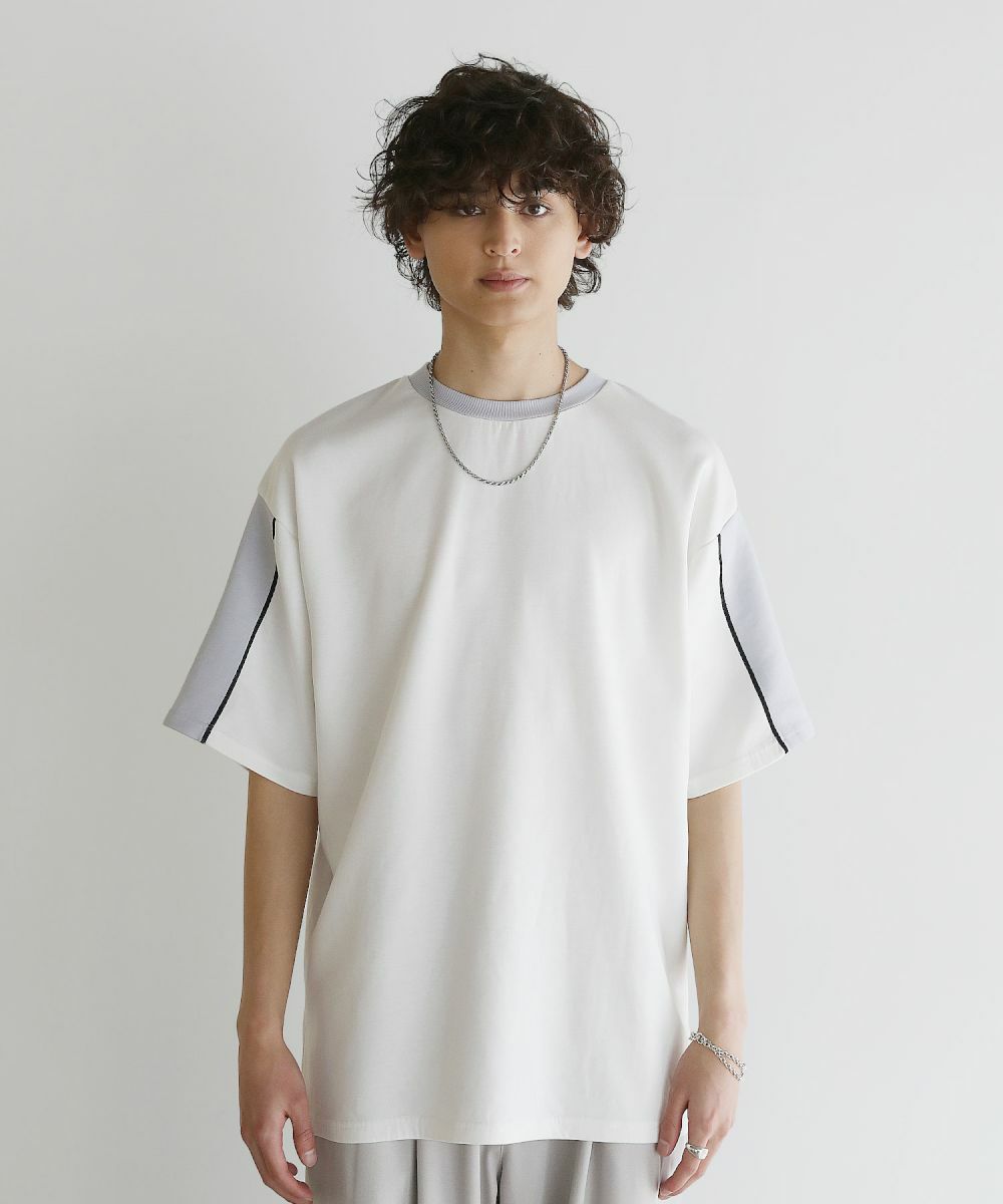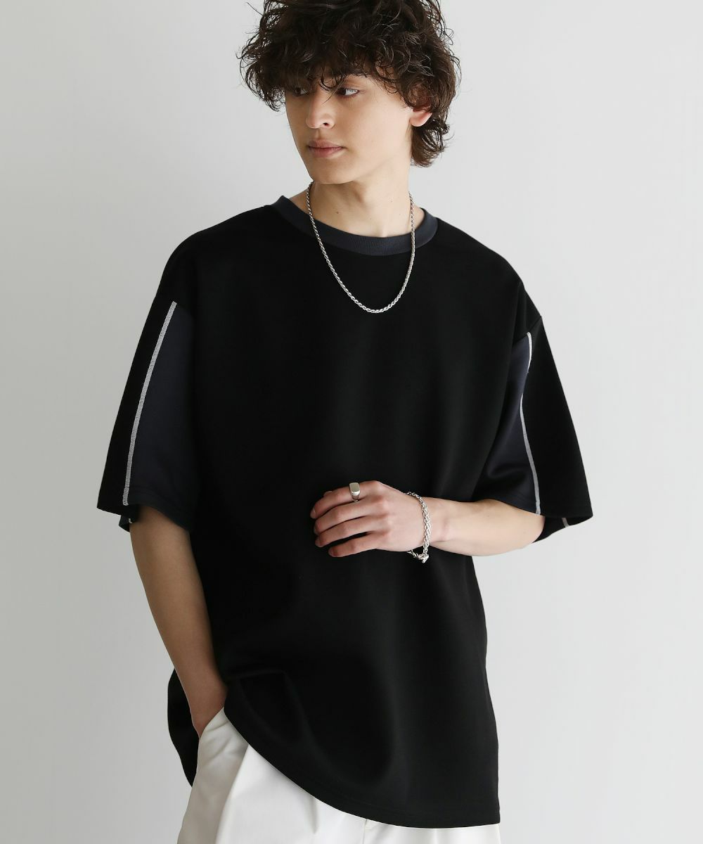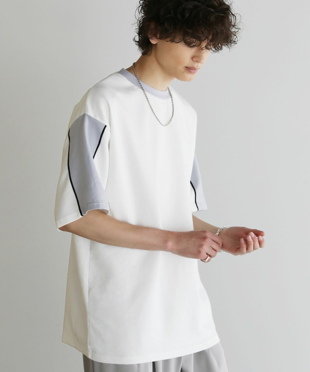 大胆に色を切り替えた袖が目を引く半袖Tシャツ。とろみのある生地が動くたびに揺れ動き、リラックスしたシルエットを生み出します。ストレッチ性がありラクに着られるポンチ素材に、接触冷感加工を施しました。ひんやりと感じる生地が心地良く、汗を吸い取り素早く発散するため夏場もベタつくことなくさらりとした着心地をキープ。暑い日に着たいマストアイテムです。