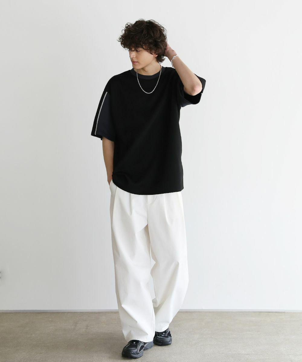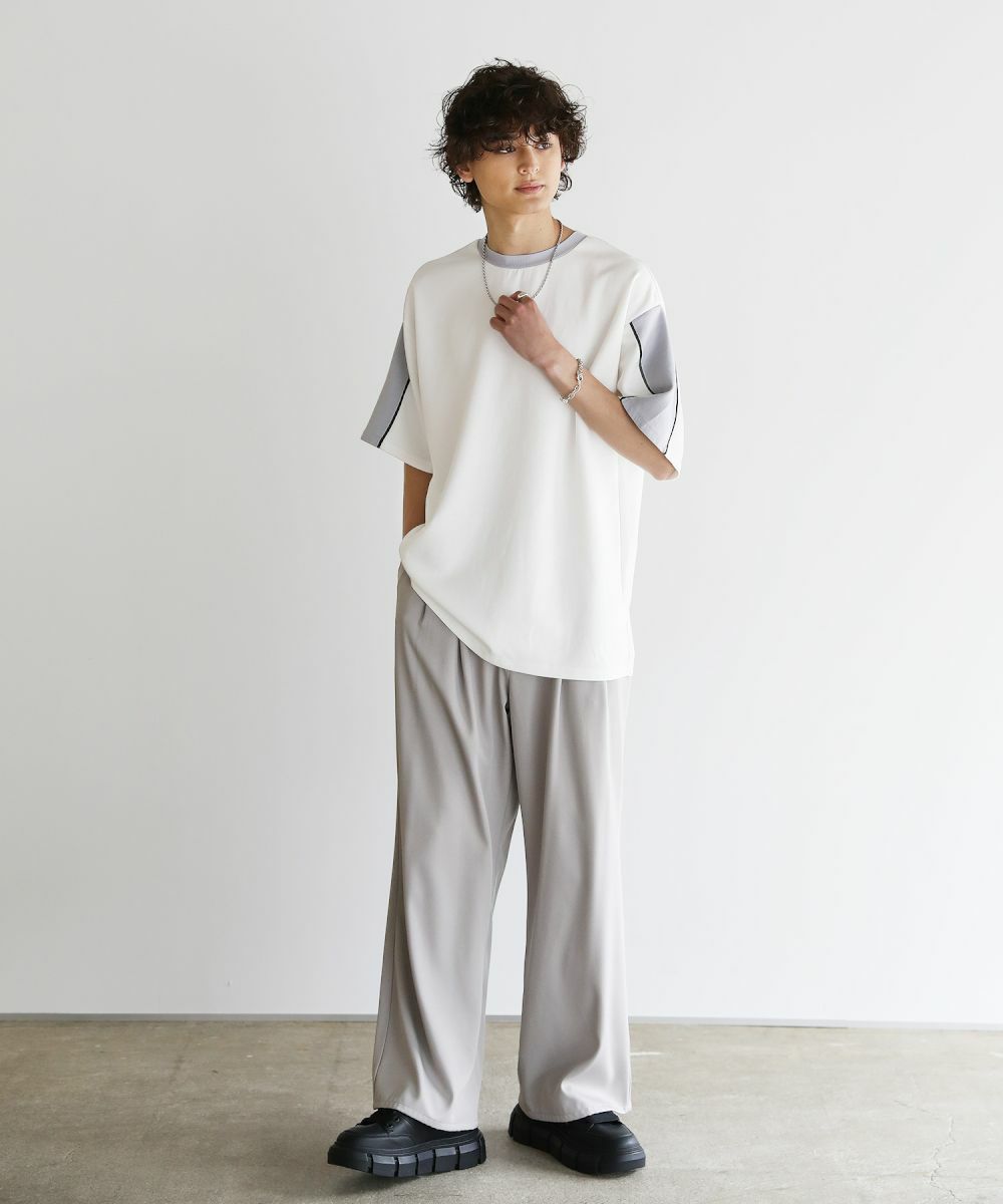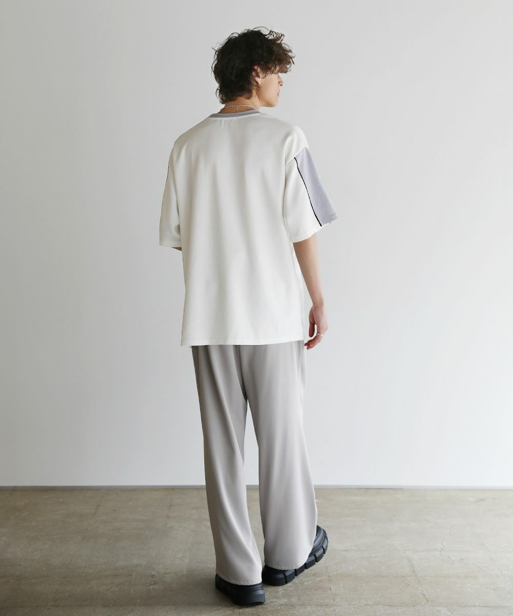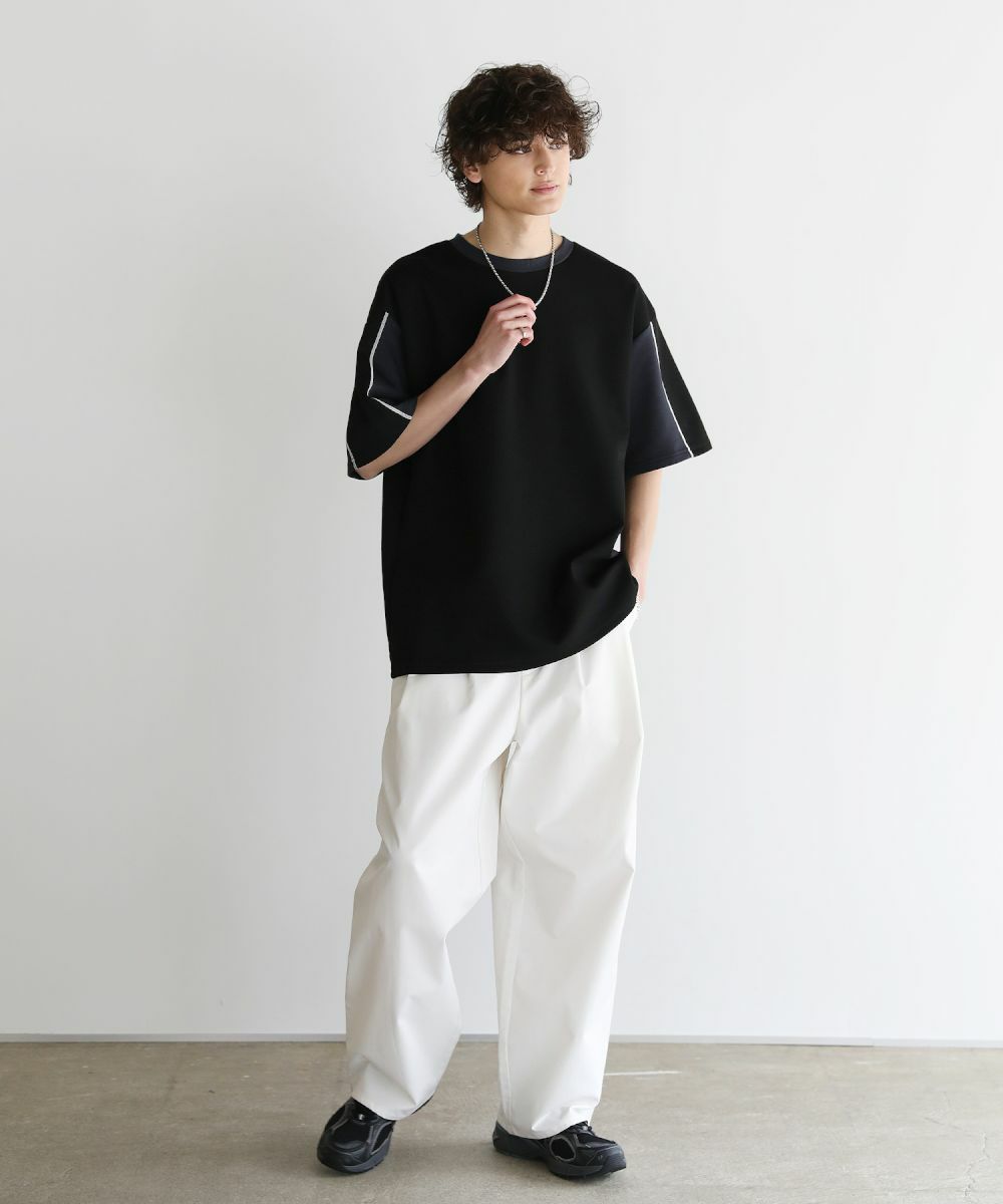 大胆に色を切り替えた袖が目を引く半袖Tシャツ。とろみのある生地が動くたびに揺れ動き、リラックスしたシルエットを生み出します。ストレッチ性がありラクに着られるポンチ素材に、接触冷感加工を施しました。ひんやりと感じる生地が心地良く、汗を吸い取り素早く発散するため夏場もベタつくことなくさらりとした着心地をキープ。暑い日に着たいマストアイテムです。