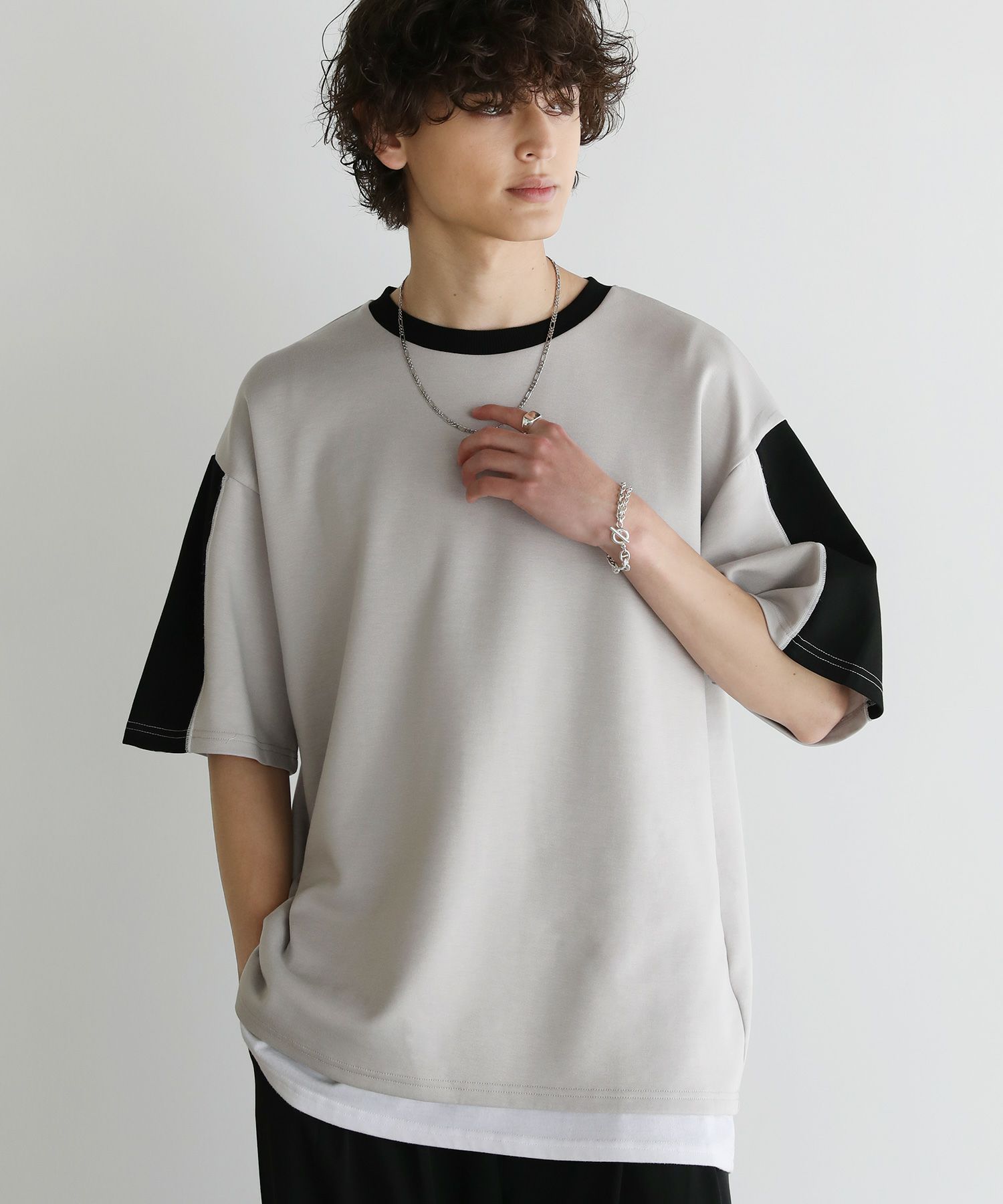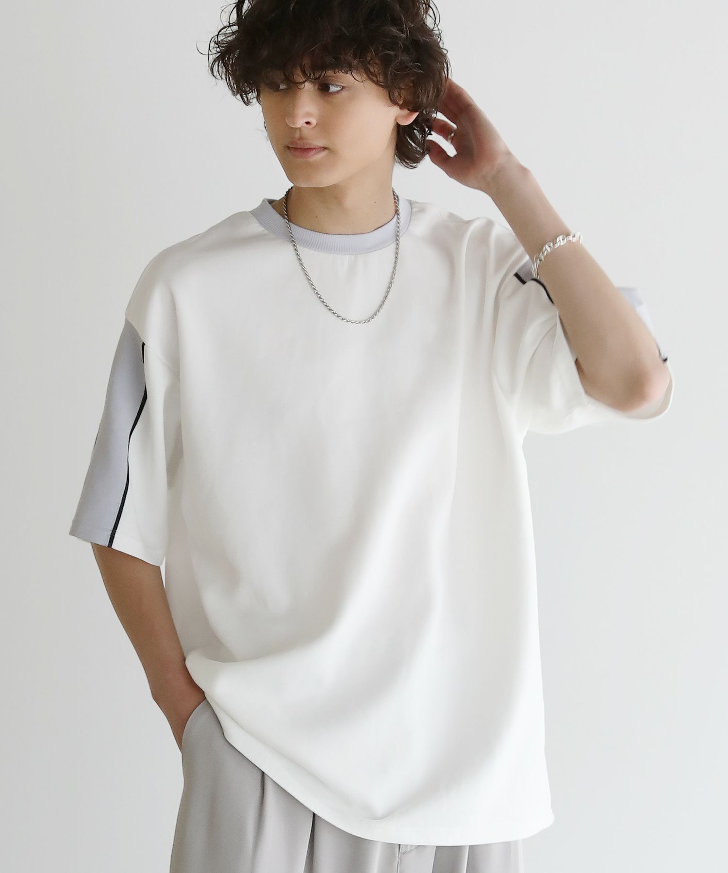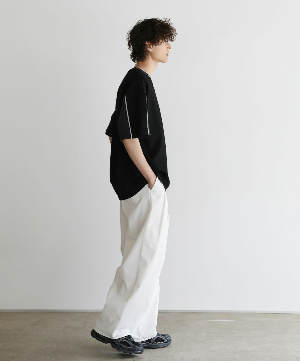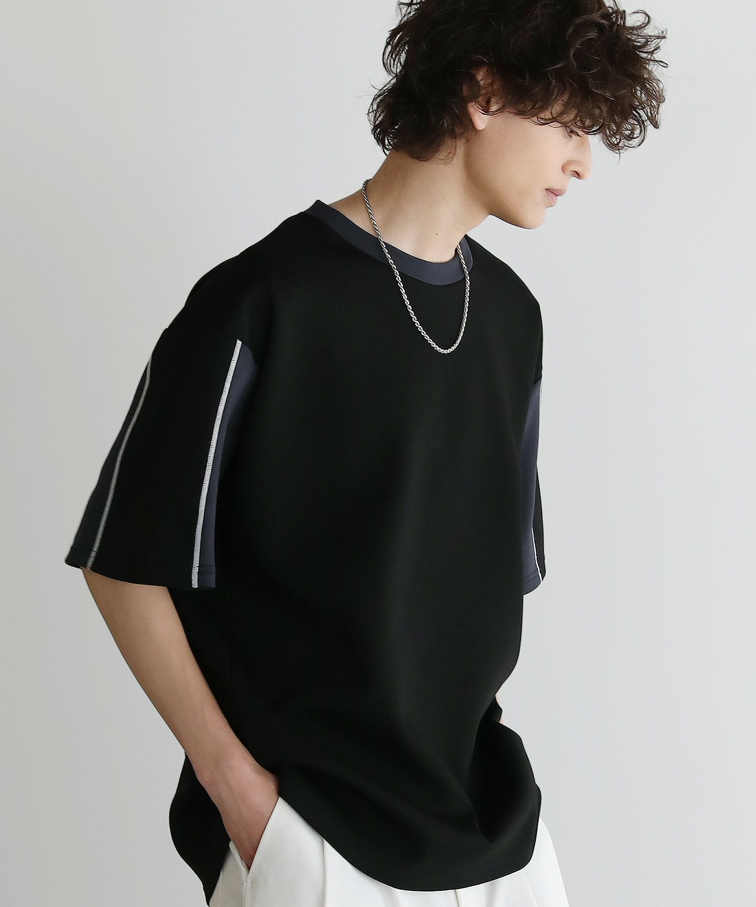 大胆に色を切り替えた袖が目を引く半袖Tシャツ。とろみのある生地が動くたびに揺れ動き、リラックスしたシルエットを生み出します。ストレッチ性がありラクに着られるポンチ素材に、接触冷感加工を施しました。ひんやりと感じる生地が心地良く、汗を吸い取り素早く発散するため夏場もベタつくことなくさらりとした着心地をキープ。暑い日に着たいマストアイテムです。