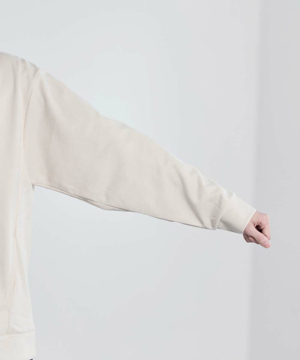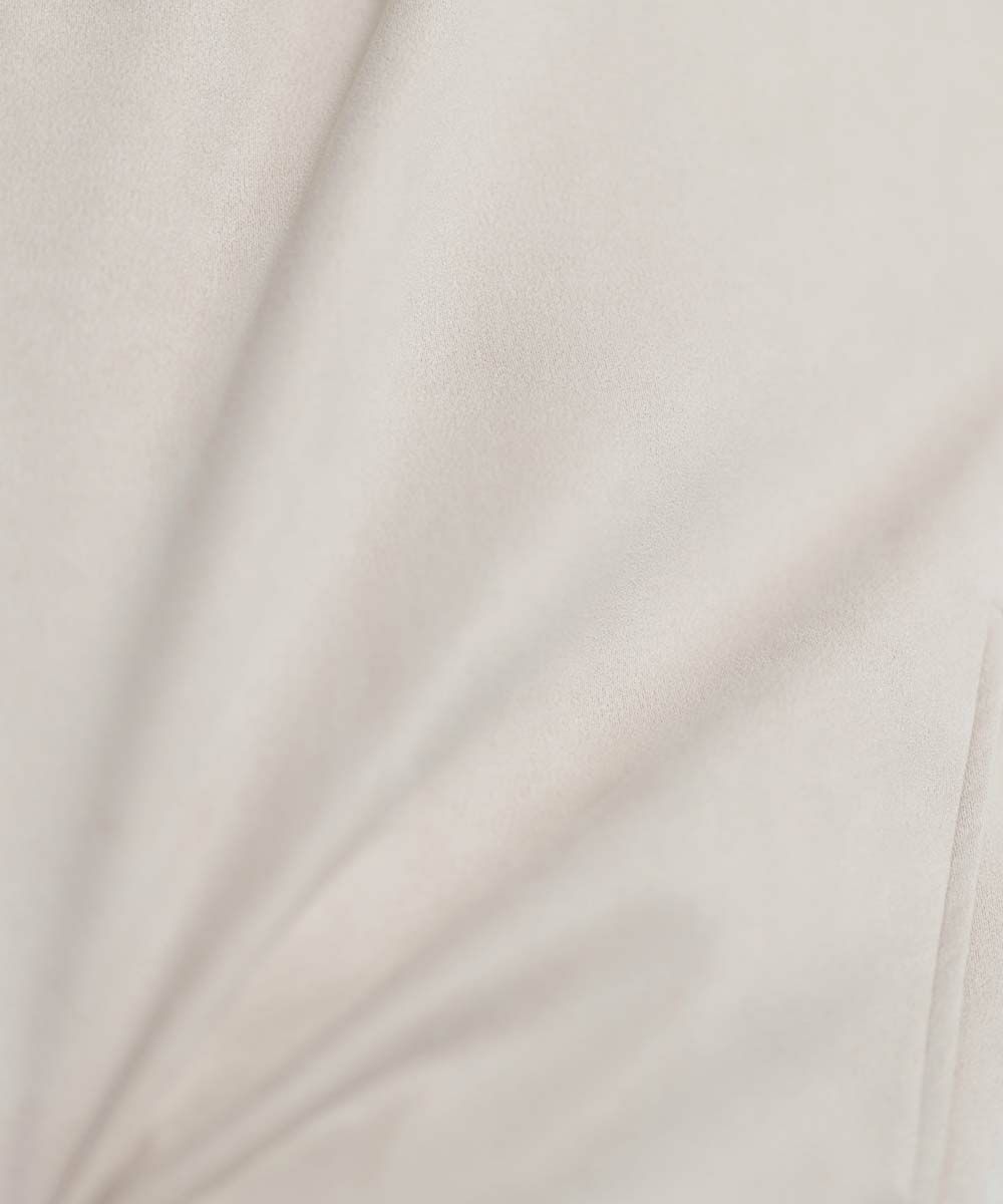 ポリスウェード特有の上品な艶感が、デニムやスラックスなど様々なボトムスと好相性。 一枚で主役として着ても、アウターのインナーとしてさりげなく素材感を引き立てます。 シンプルなコーディネートに取り入れるだけで、洗練された印象を与える万能アイテムです。