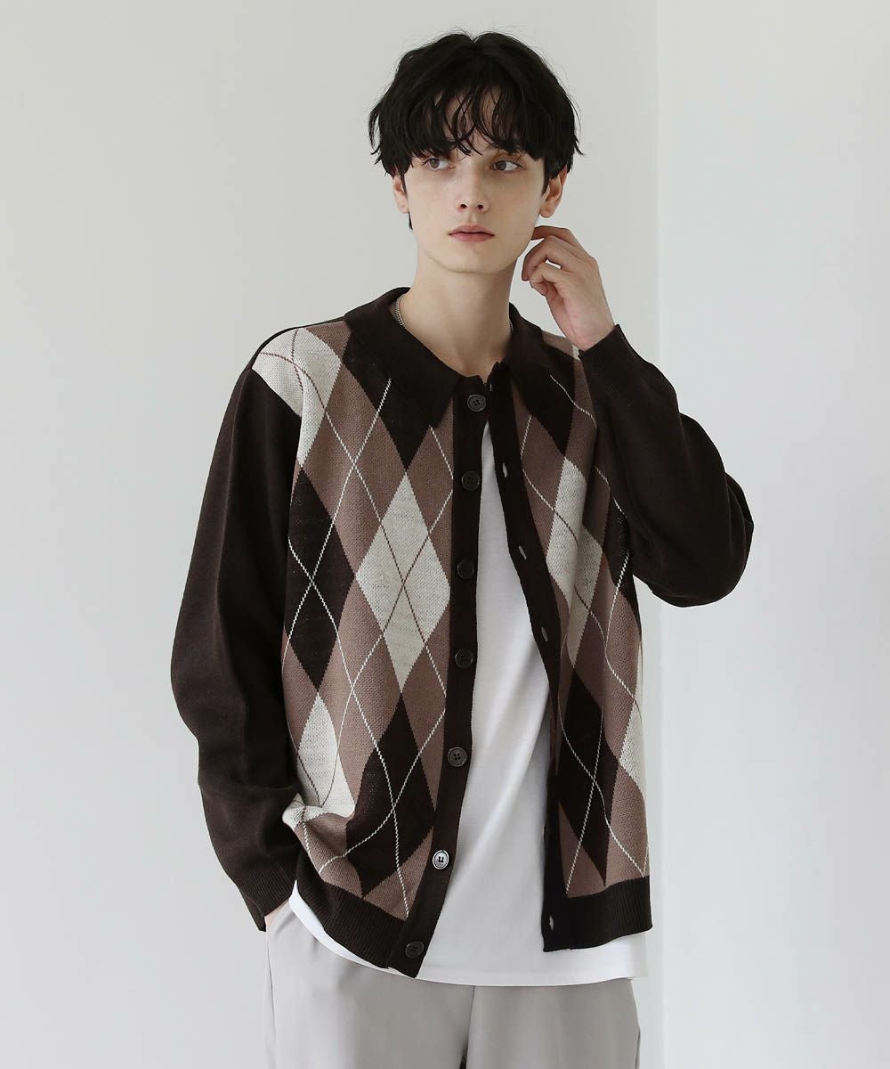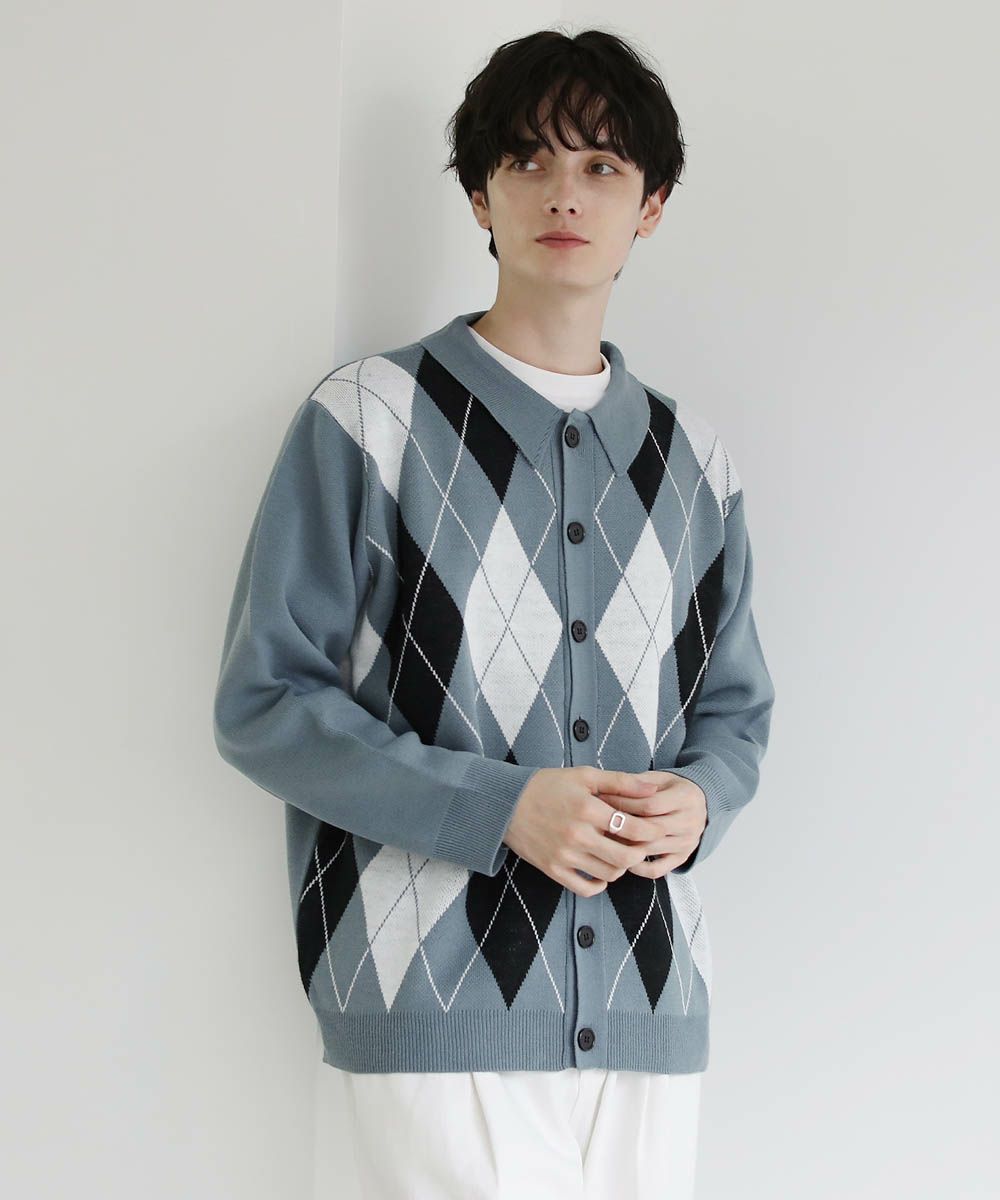 コーディネートの主役になる柄ニットポロカーディガン。程よいゆとりのあるセミルーズシルエットでトレンド感がありつつも上品にすっきりと着こなせます。襟付きでボタンを閉めて一枚での着用や、またボタンを閉めてトップスとしても活躍するアイテム。目の詰まった柔らかなアクリルニット素材を使用し秋口から春先までロングシーズン着用できます。花柄・アーガイル・ストライプの3柄展開。目を惹く柄アイテムはコートやジャケットの下に着ても存在感を発揮します。