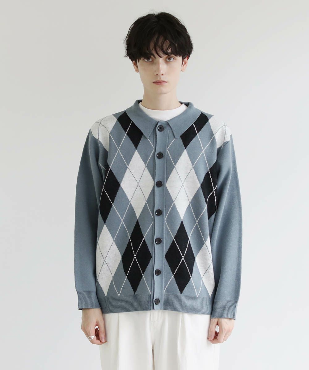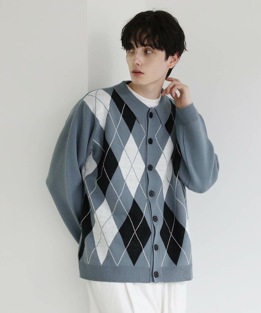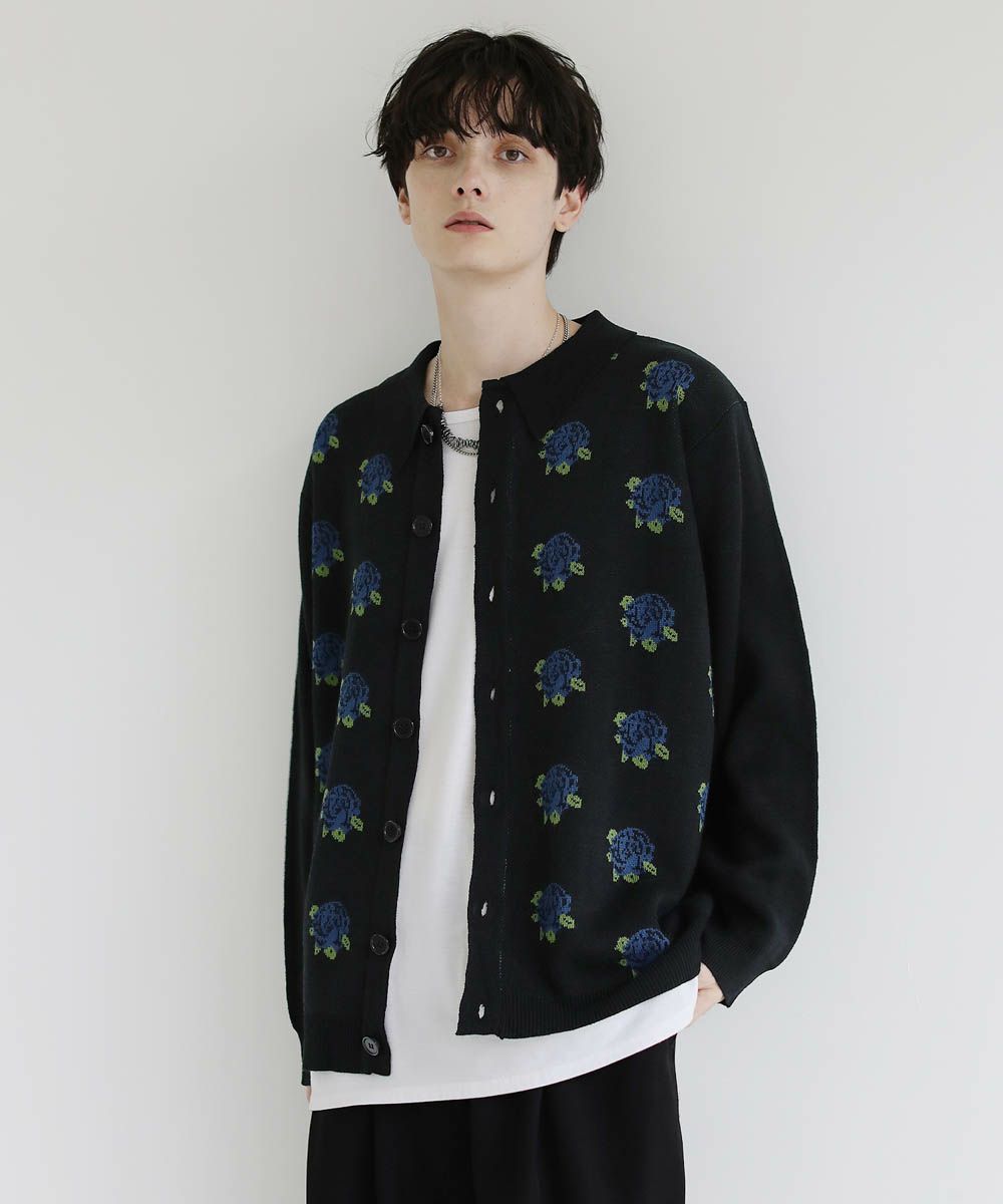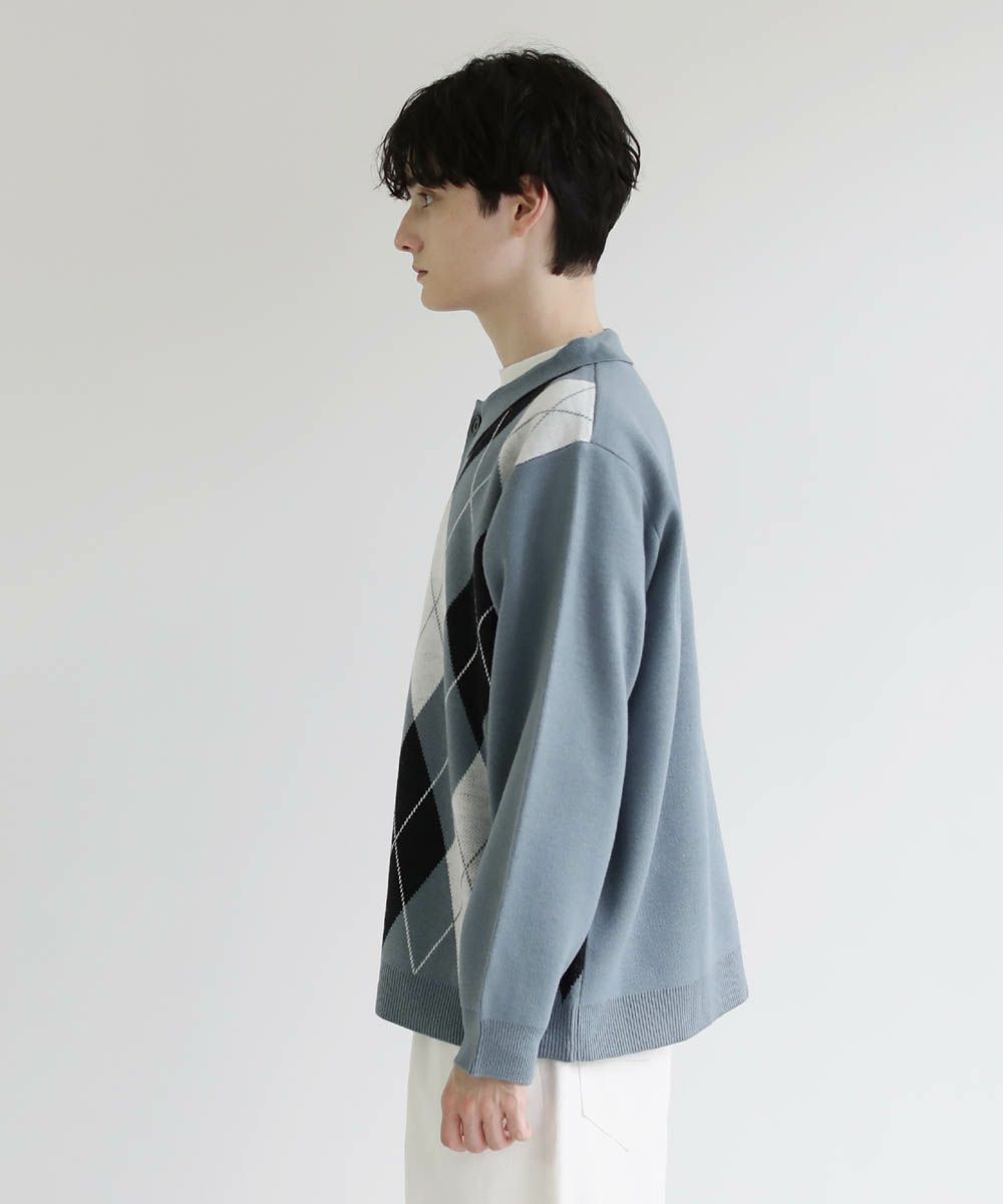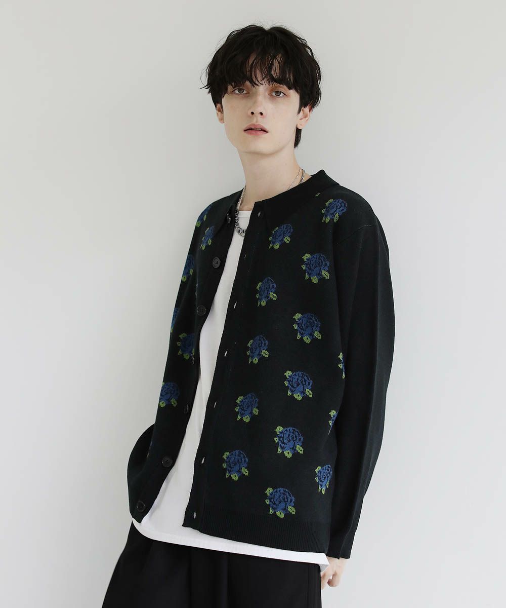 セミルーズシルエット ジャガード ニットポロカーディガン 花柄 アーガイル ストライプ