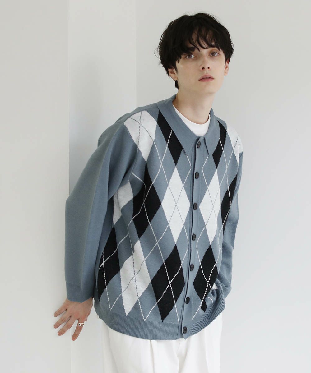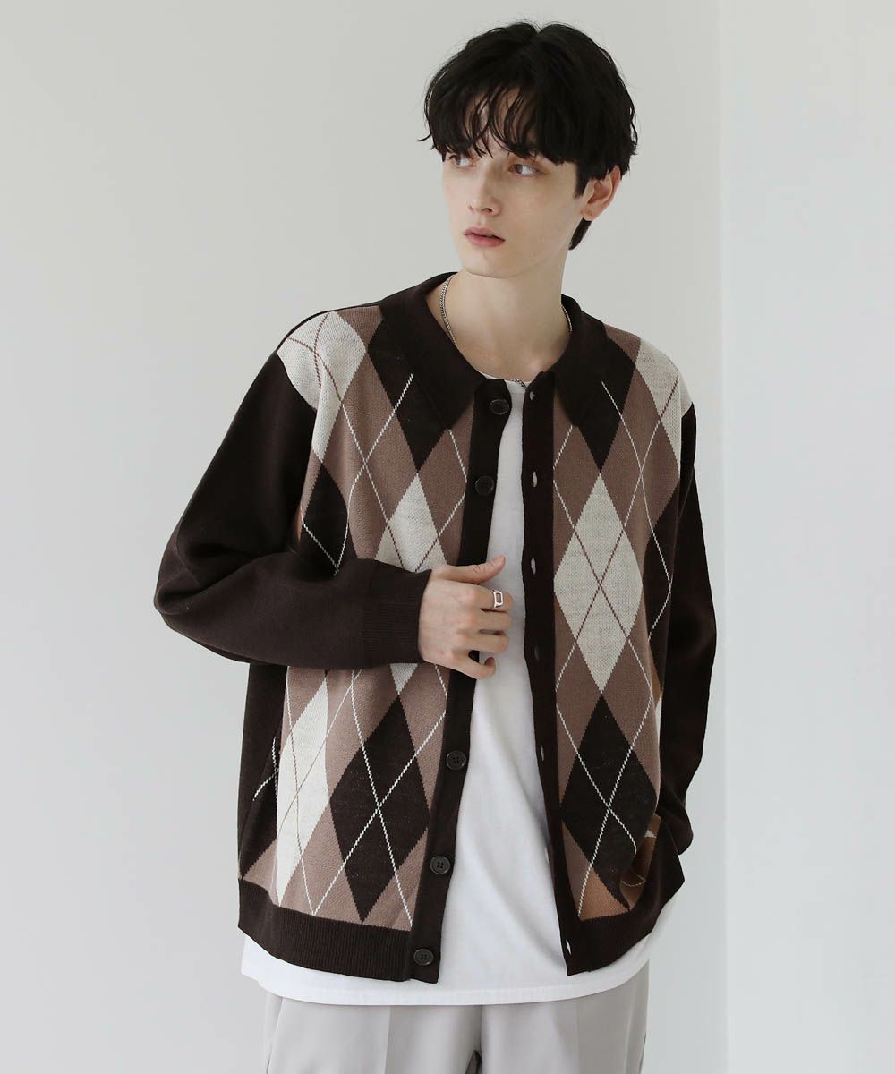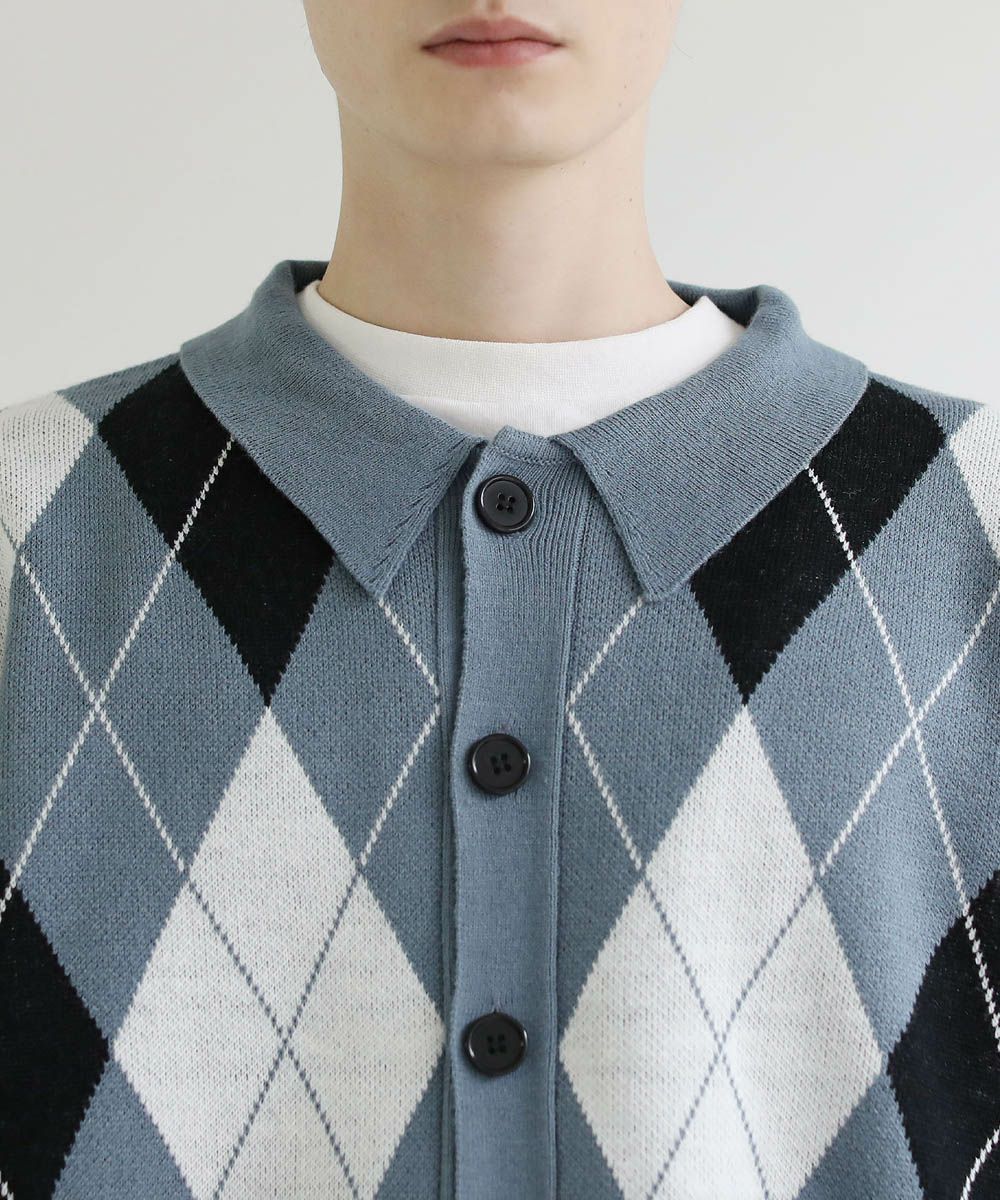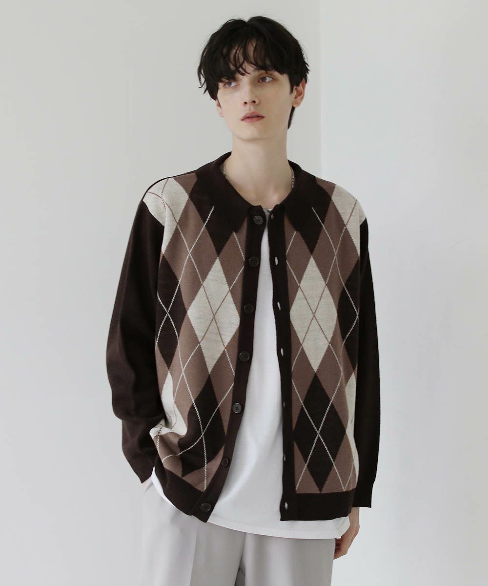 セミルーズシルエット ジャガード ニットポロカーディガン 花柄 アーガイル ストライプ