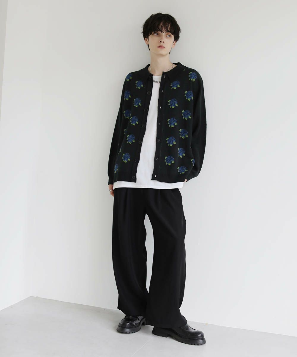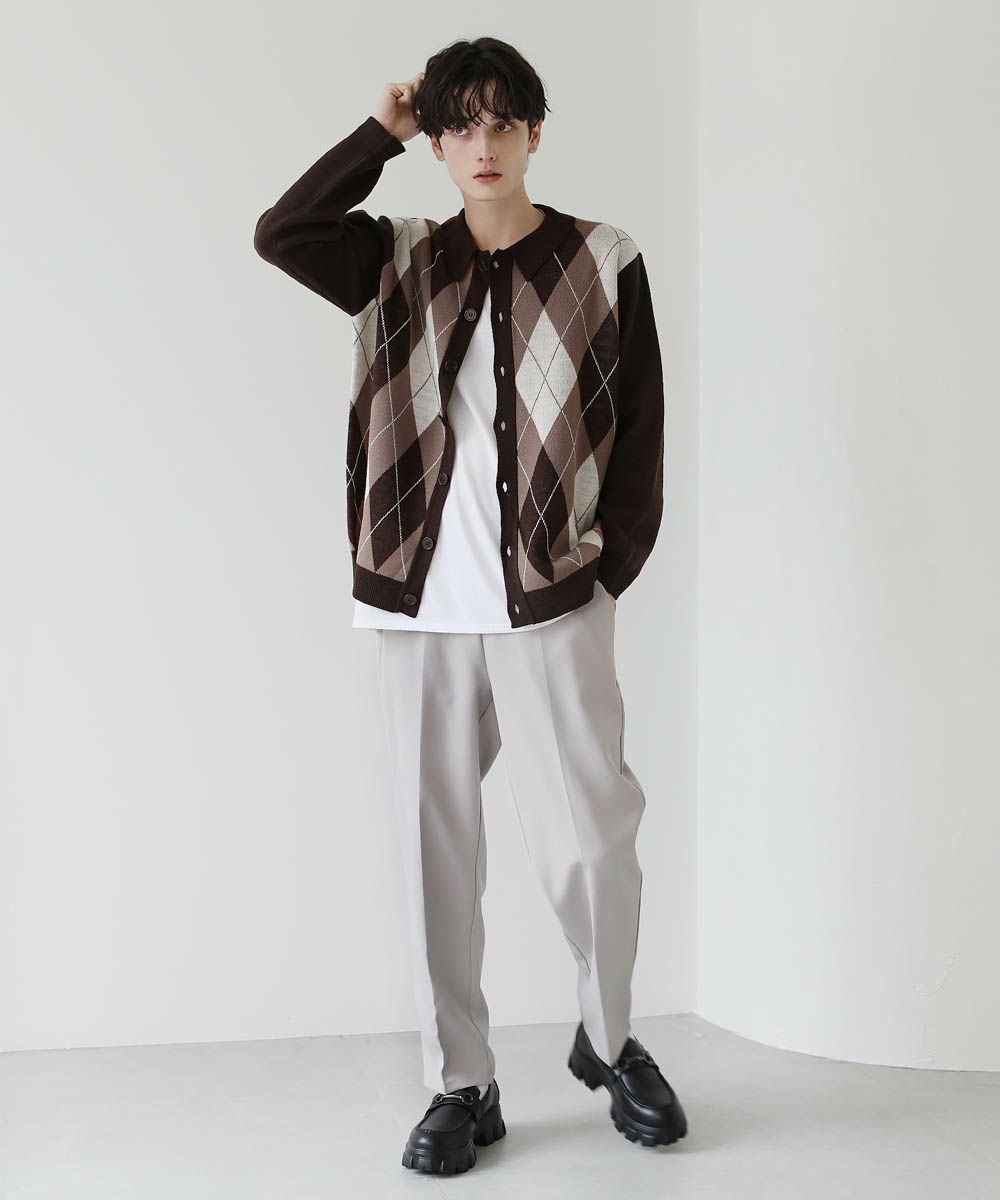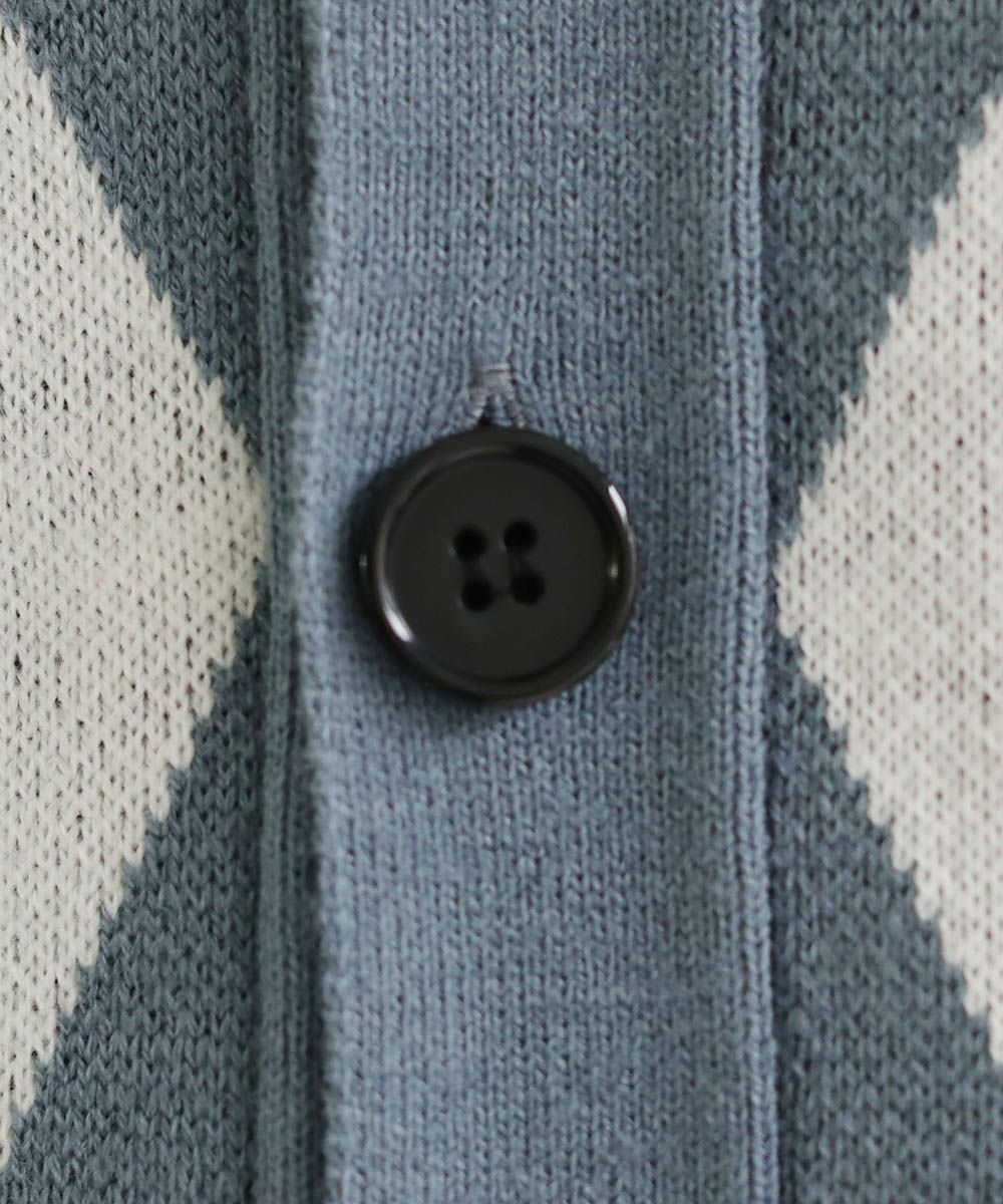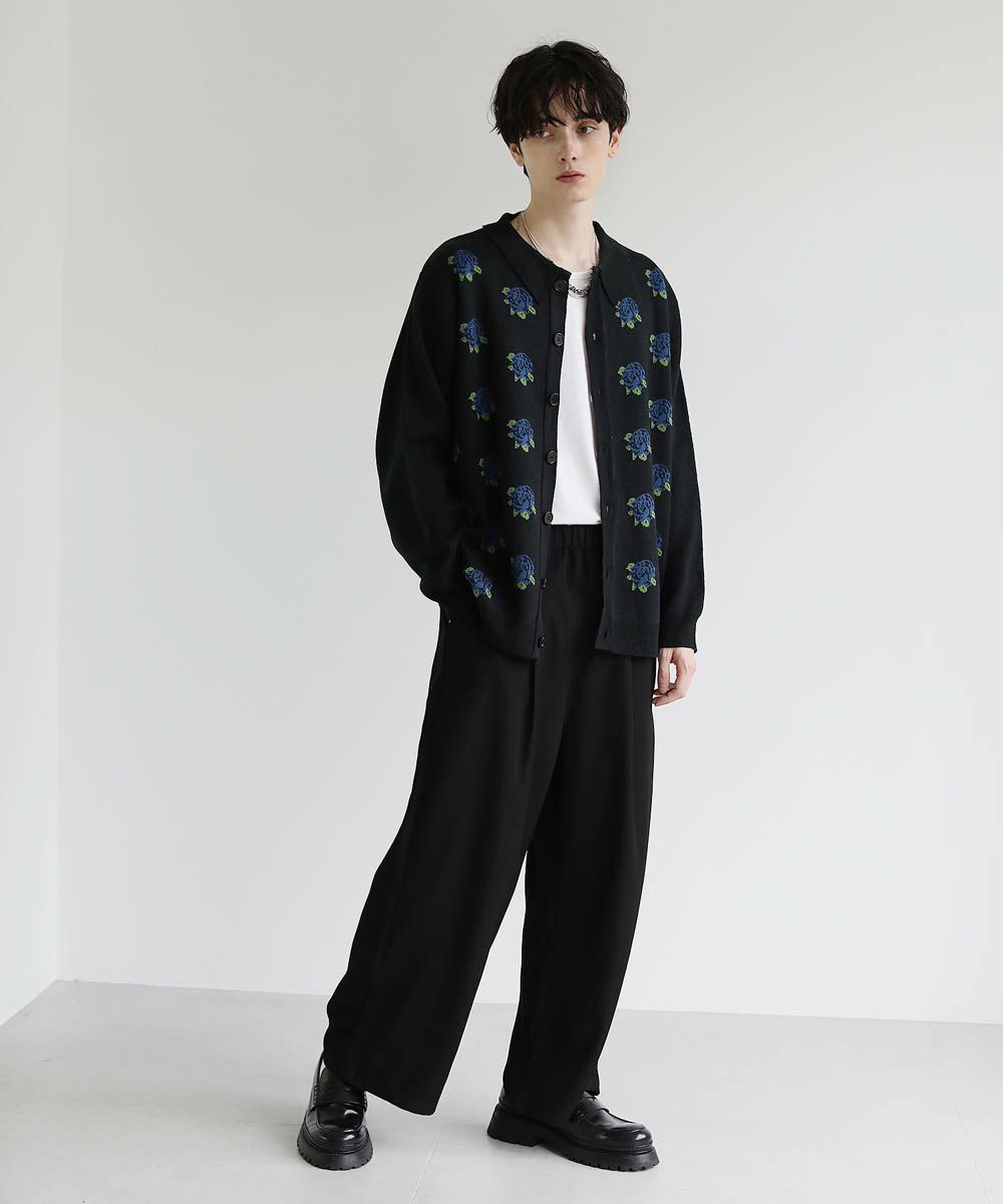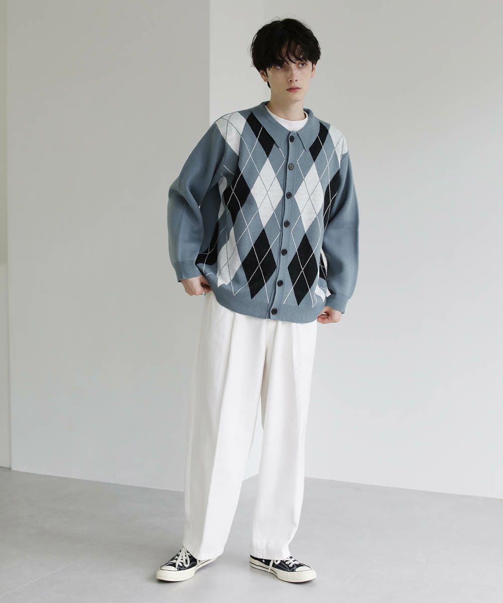 セミルーズシルエット ジャガード ニットポロカーディガン 花柄 アーガイル ストライプ