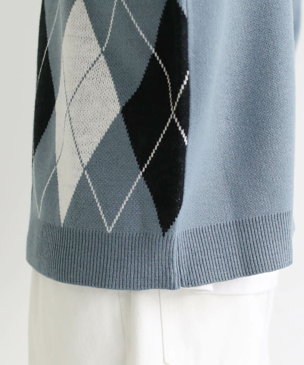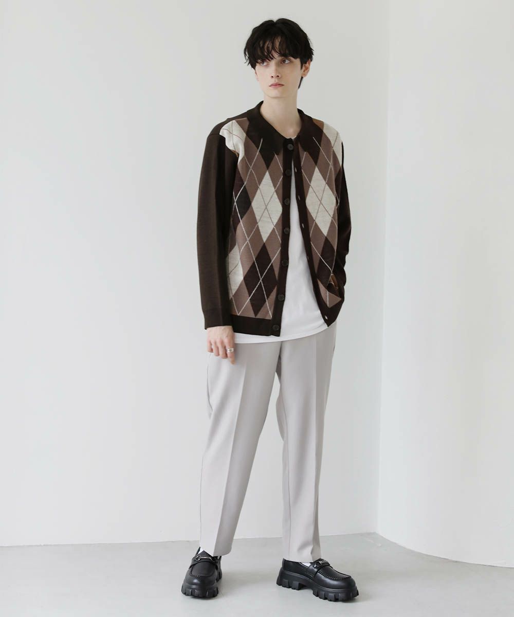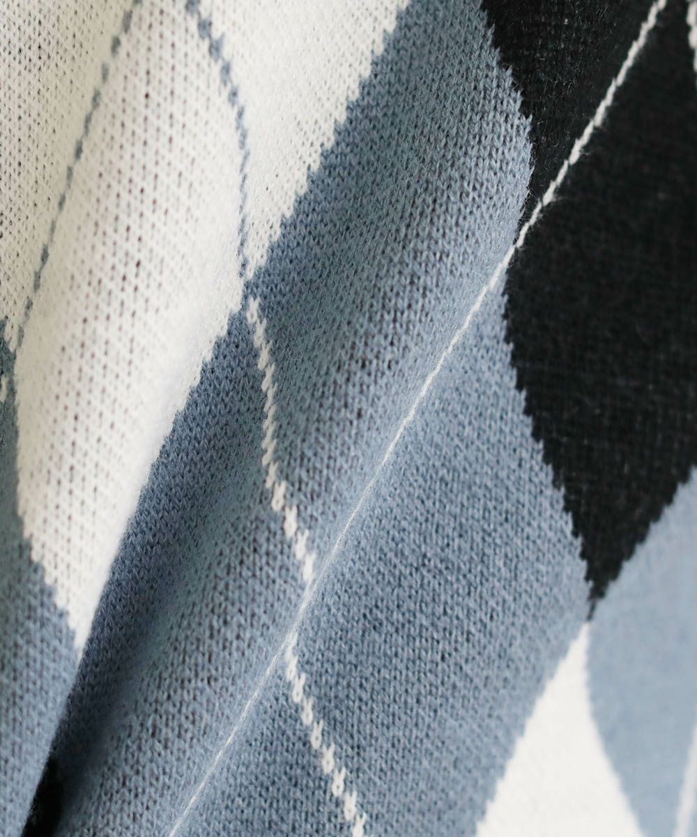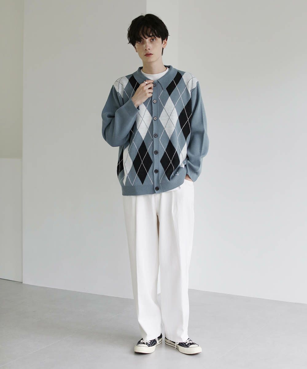セミルーズシルエット ジャガード ニットポロカーディガン 花柄 アーガイル ストライプ