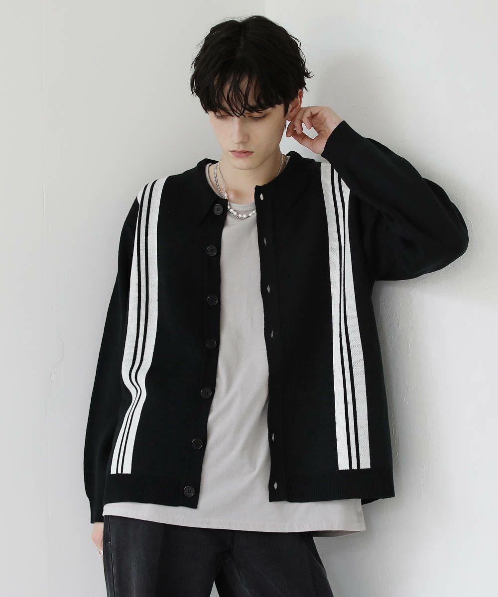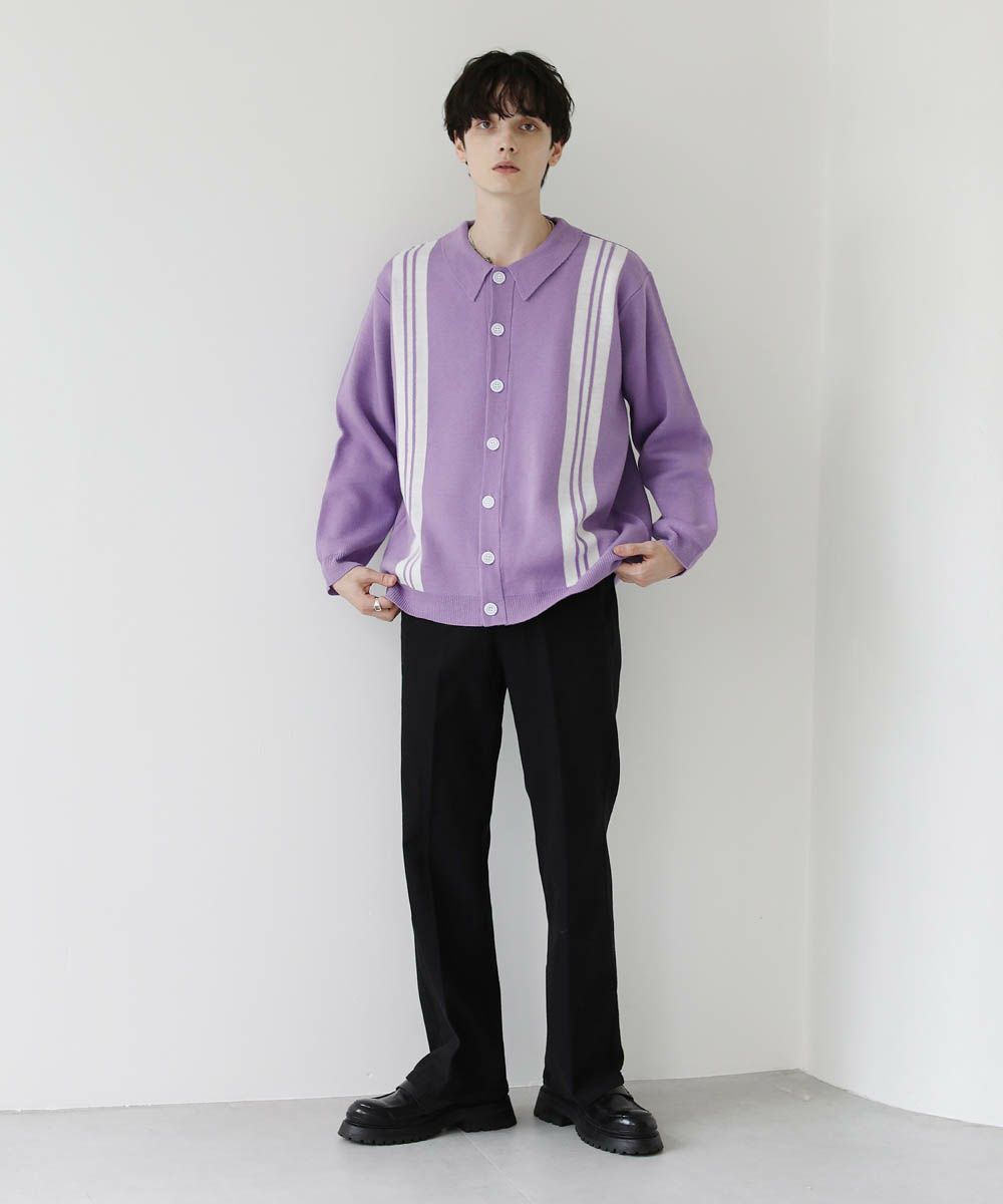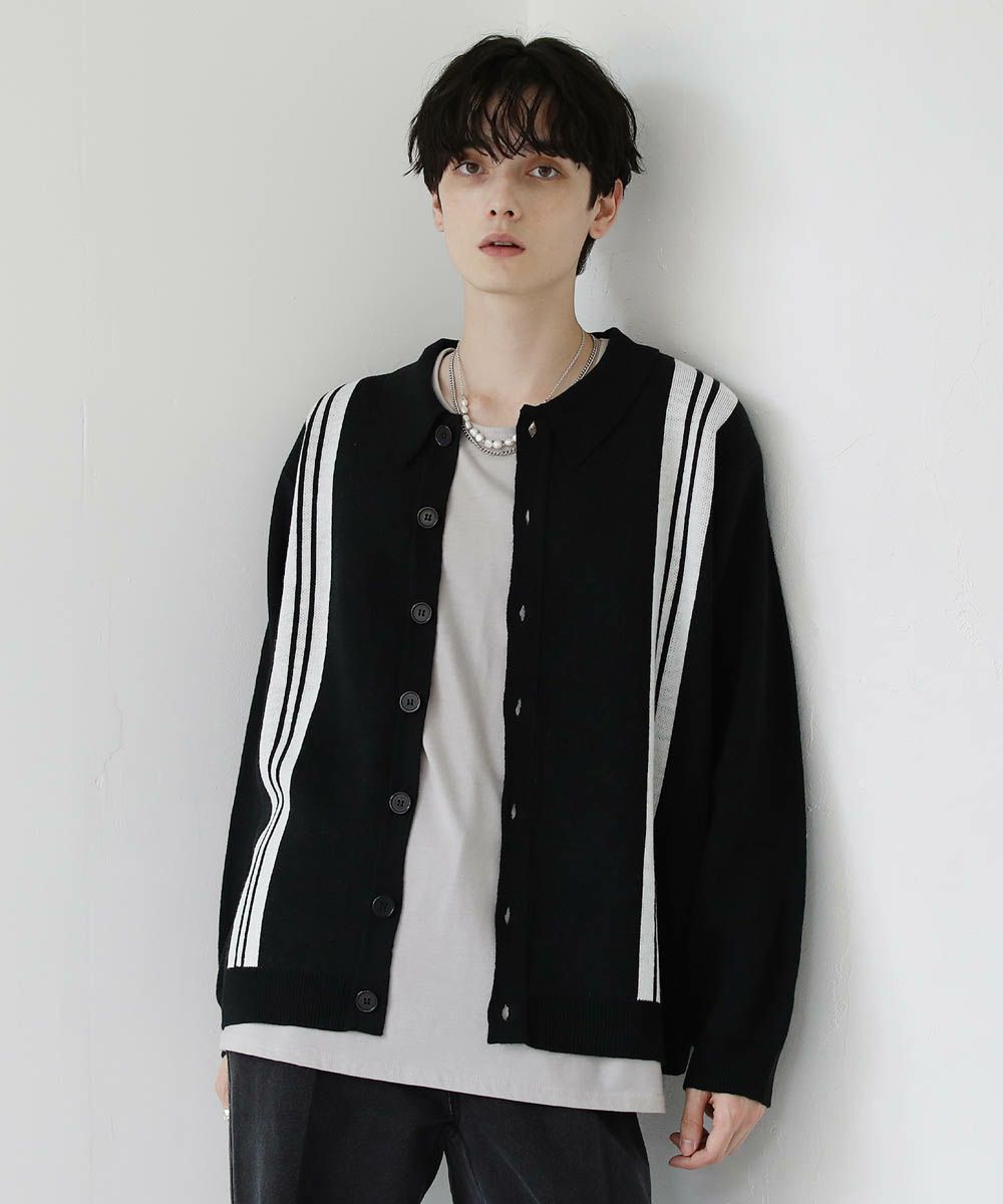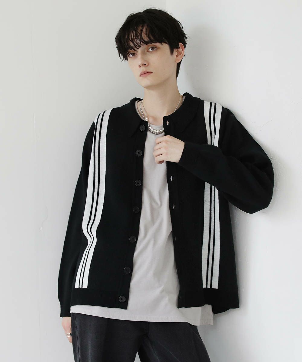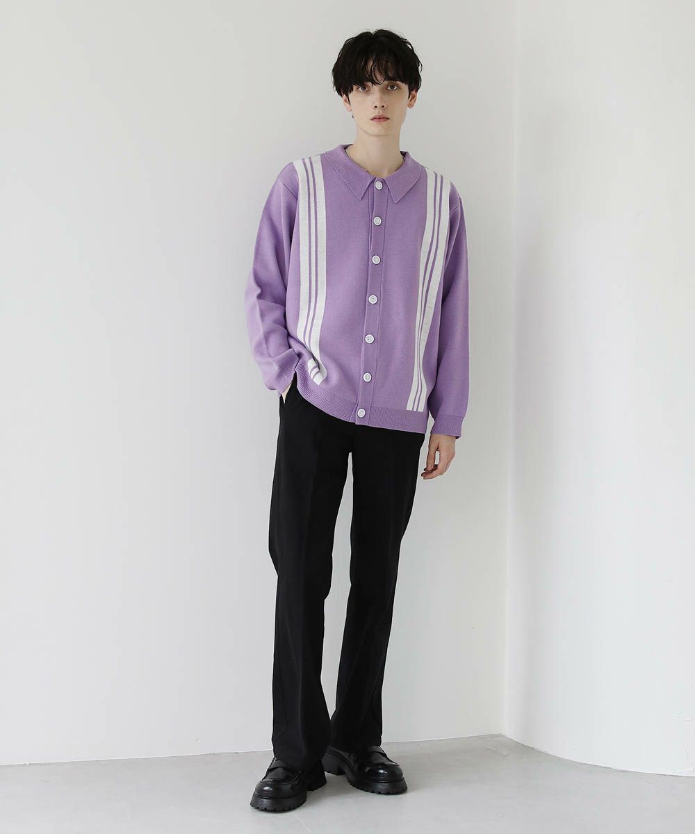 セミルーズシルエット ジャガード ニットポロカーディガン 花柄 アーガイル ストライプ